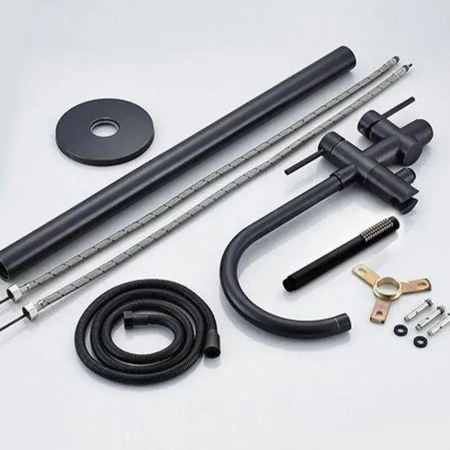 Baterie de Podea cu Cadru Rotund, Alama Sanitara, Negru, CF2033
