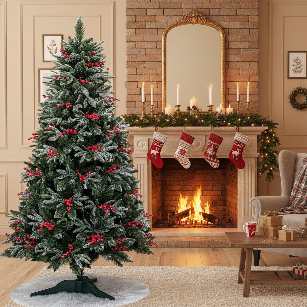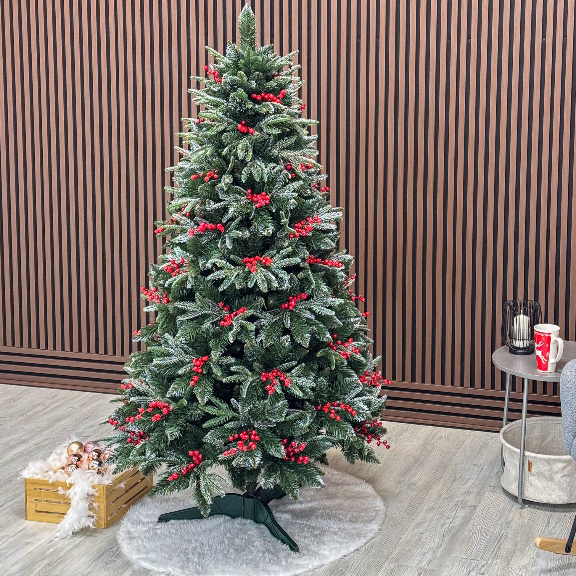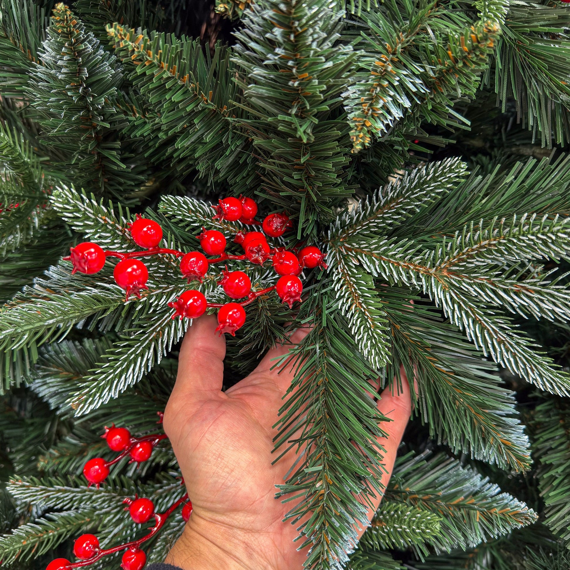 Brad artificial , Miahelene Elite, verde nins cu merisoare, mix 2D+3D, 180 cm