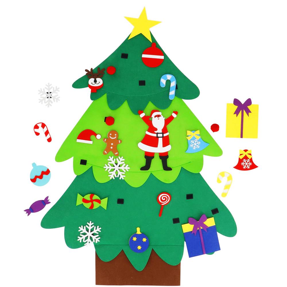 Brad de Craciun din pasla pentru copii, 115x80 cm, cu 26 decoratiuni