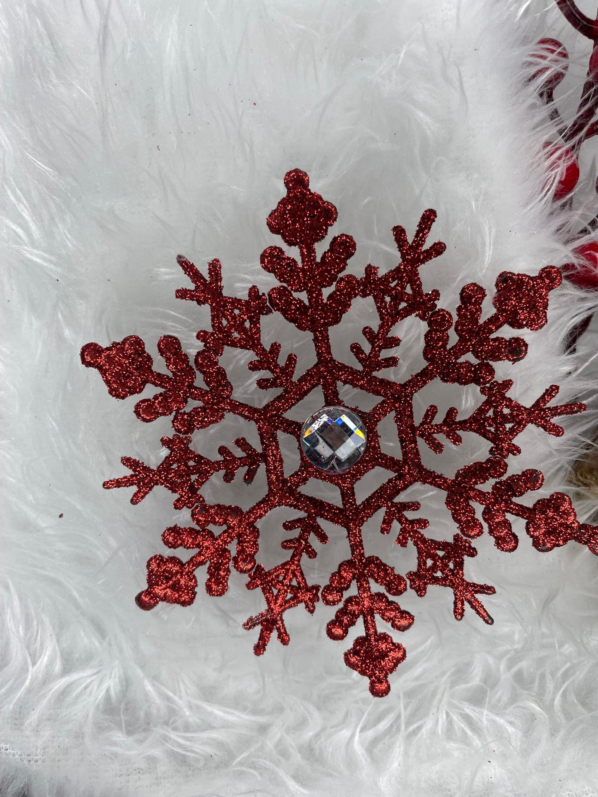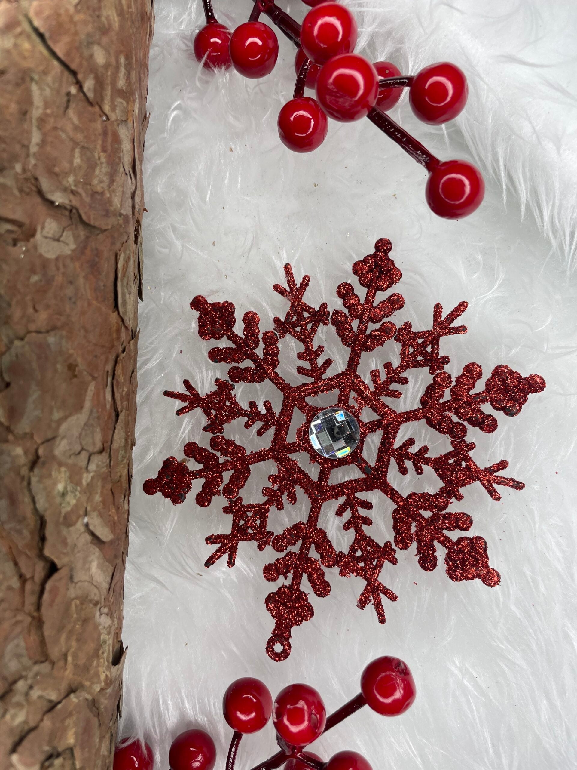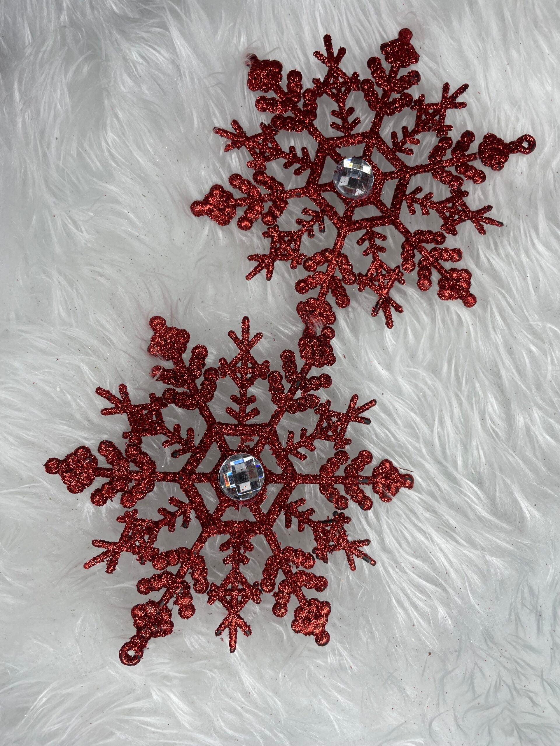 Decoratiune brad fulg de zapada cu cristal, set 2 bucati, 12cm, rosu