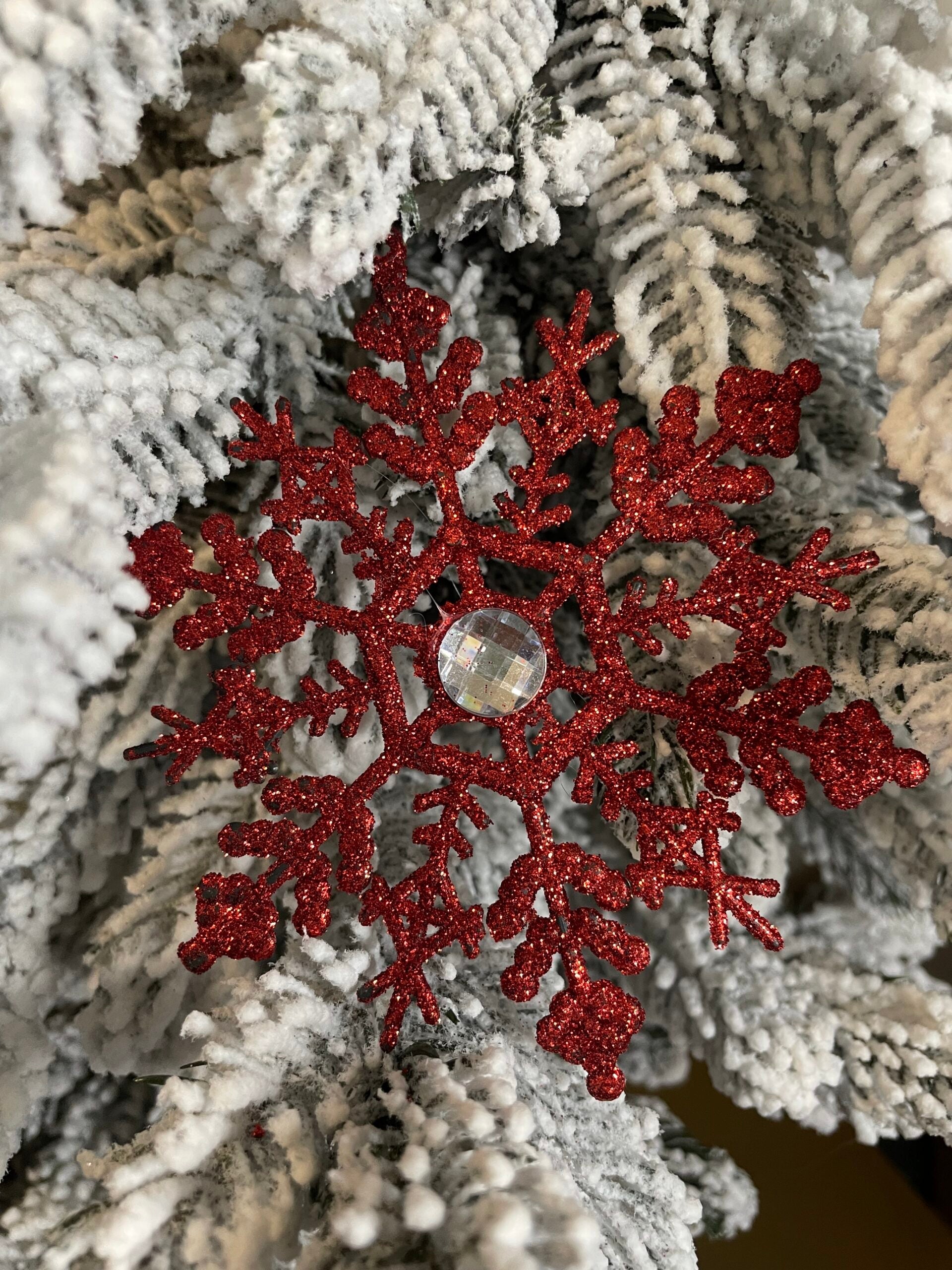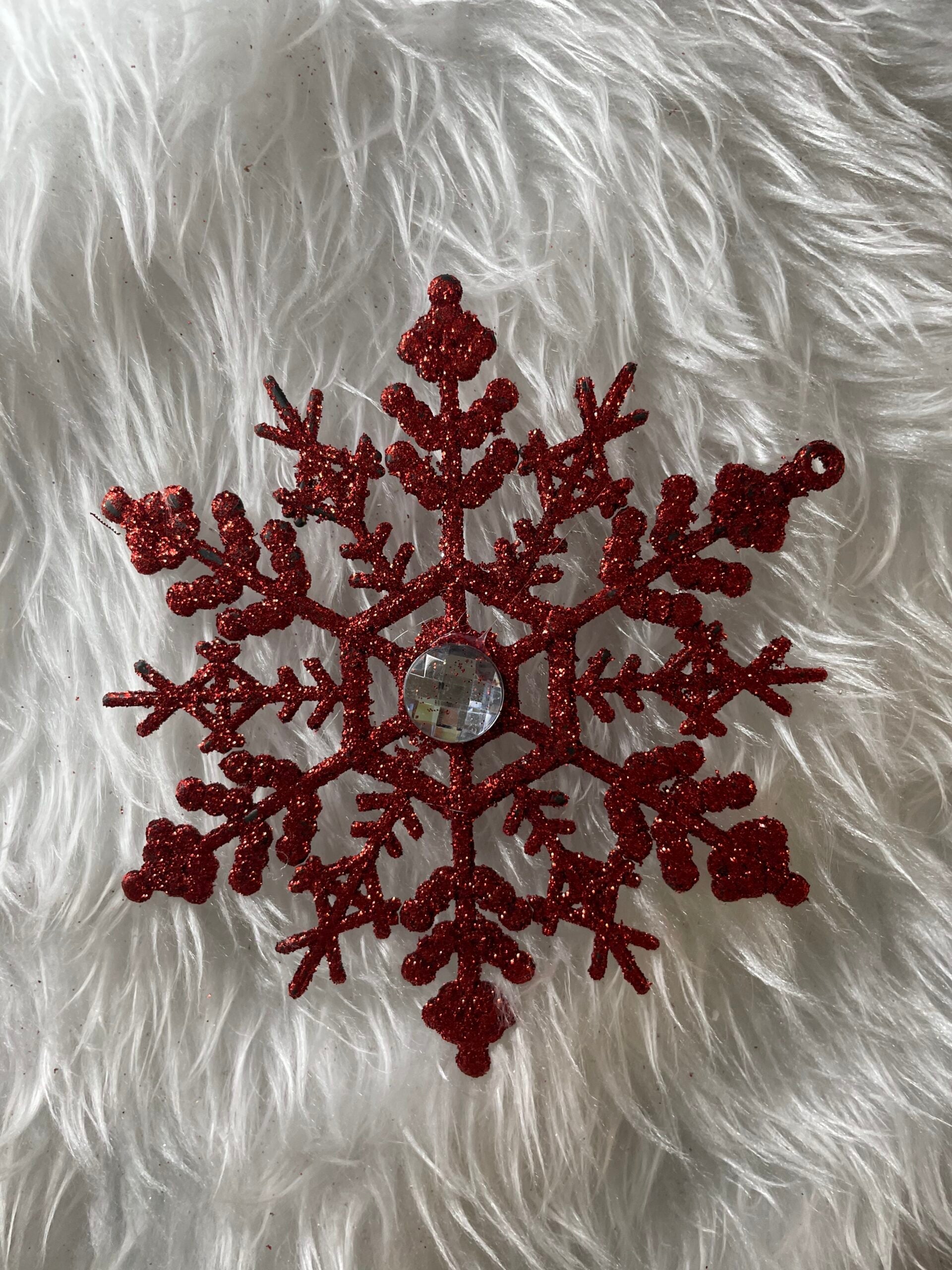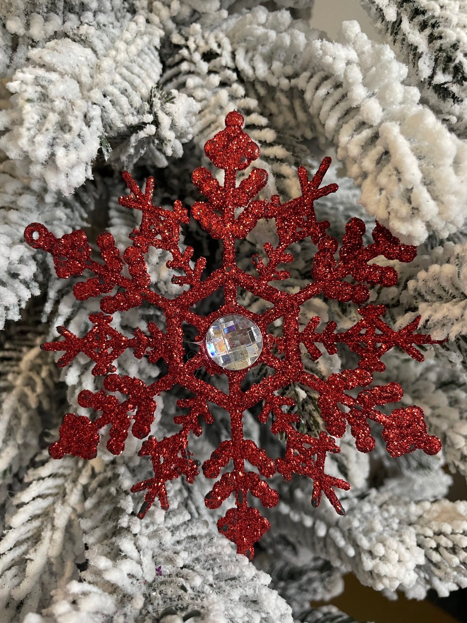 Decoratiune brad fulg de zapada cu cristal, set 2 bucati, 12cm, rosu