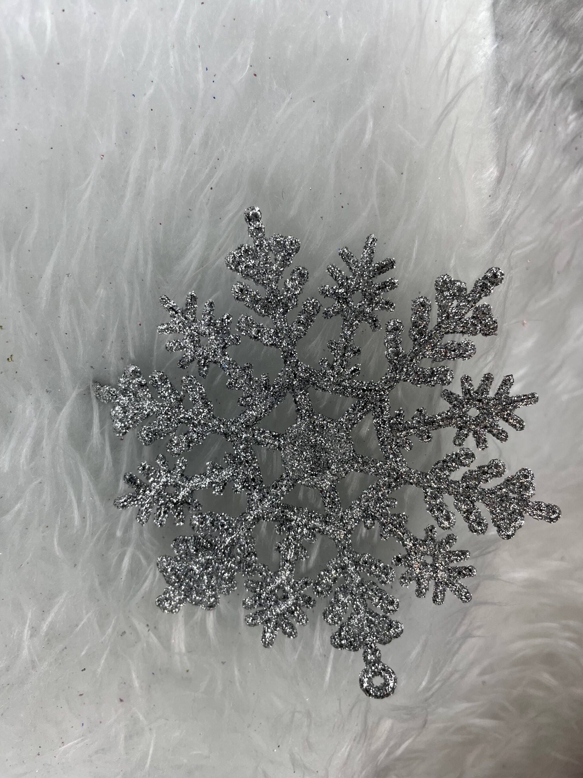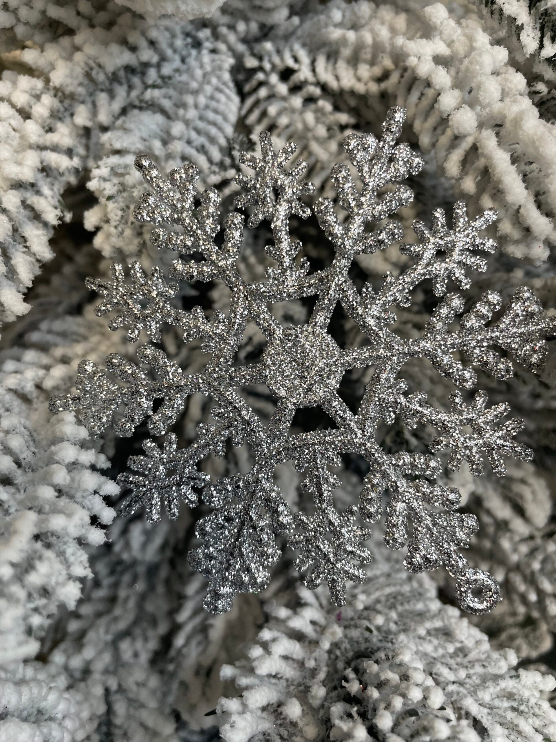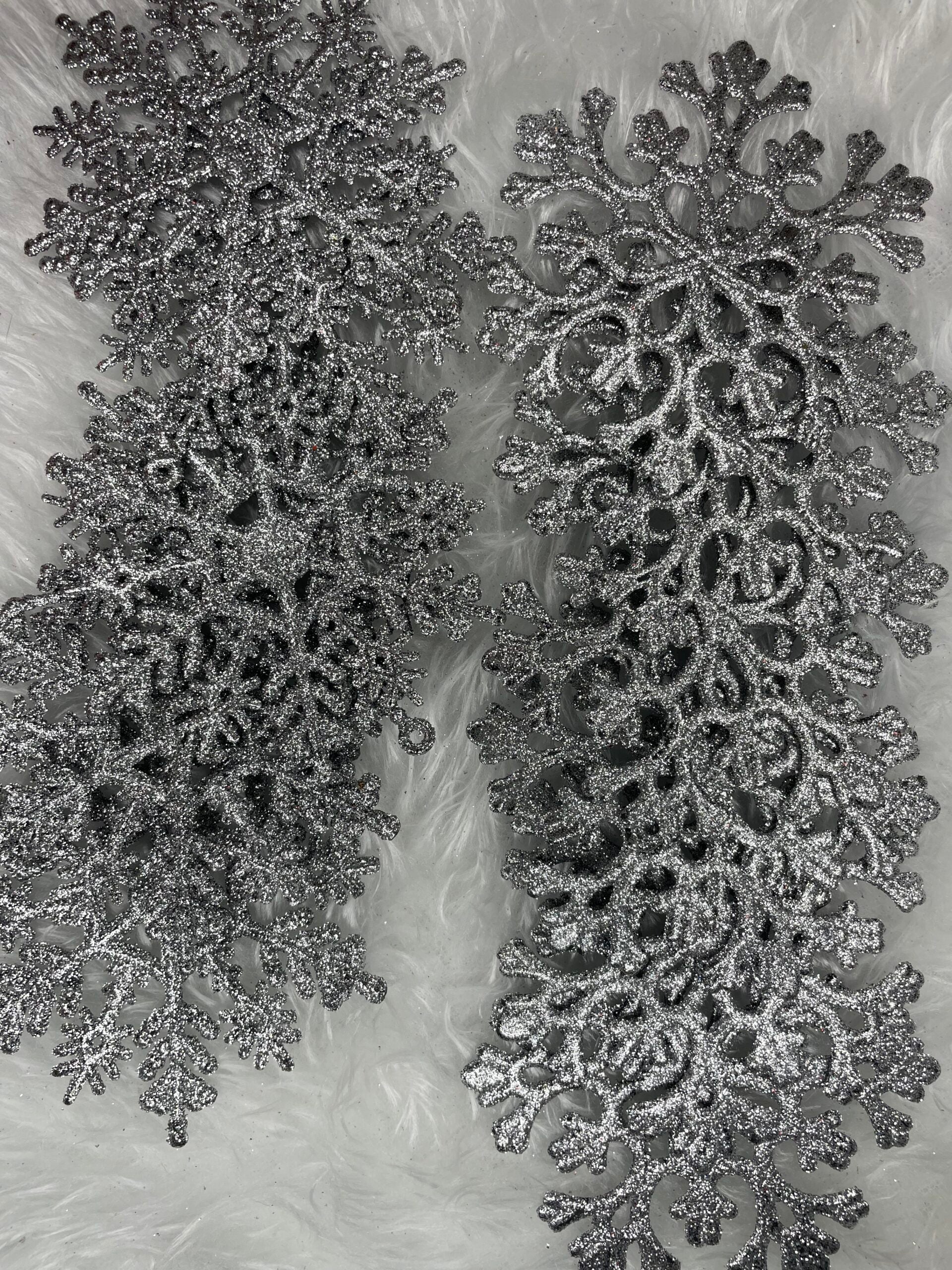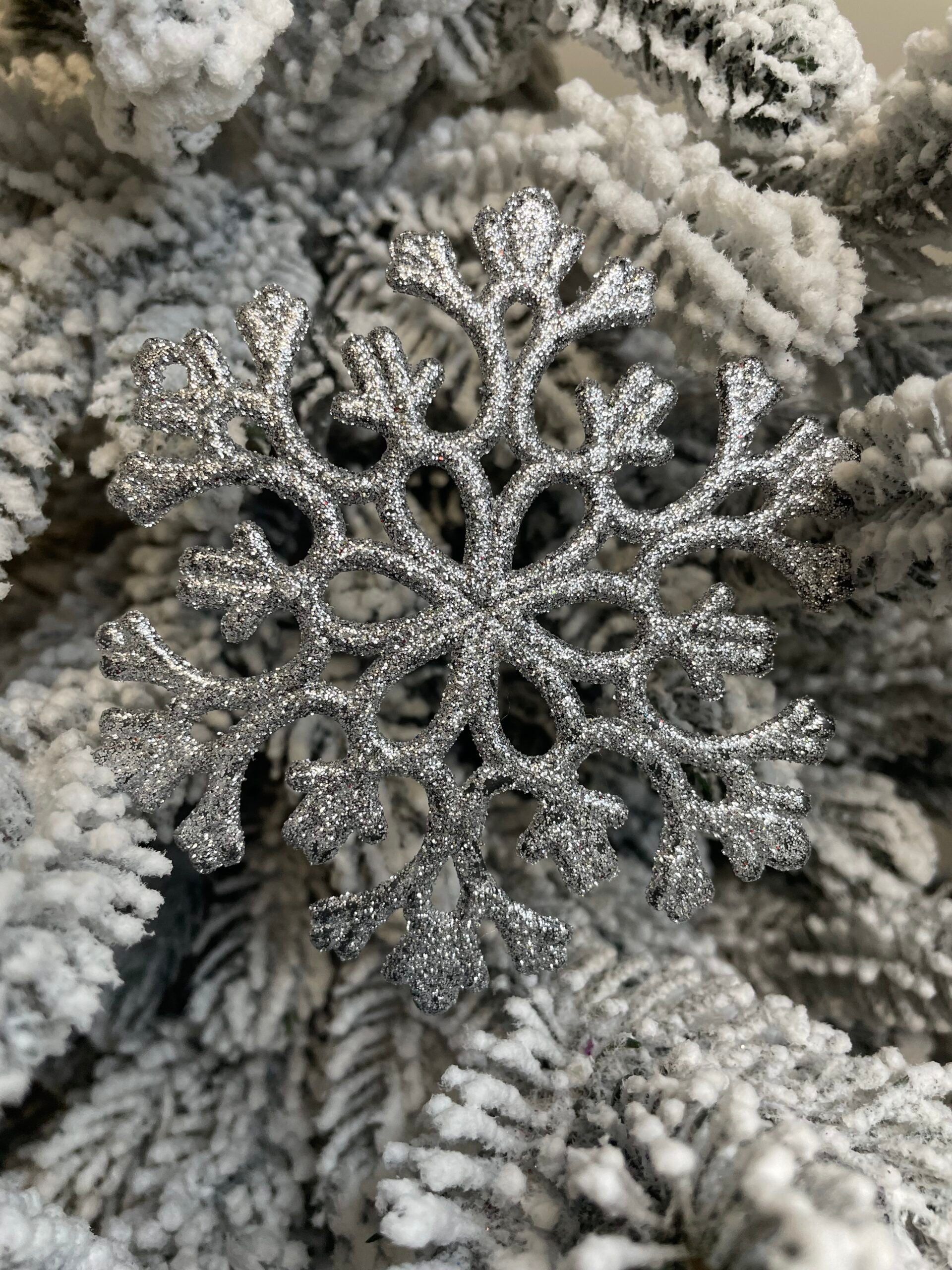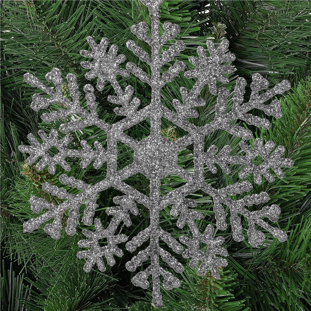 Decoratiune brad fulg de zapada, set 12 bucati, 10cm, argintiu