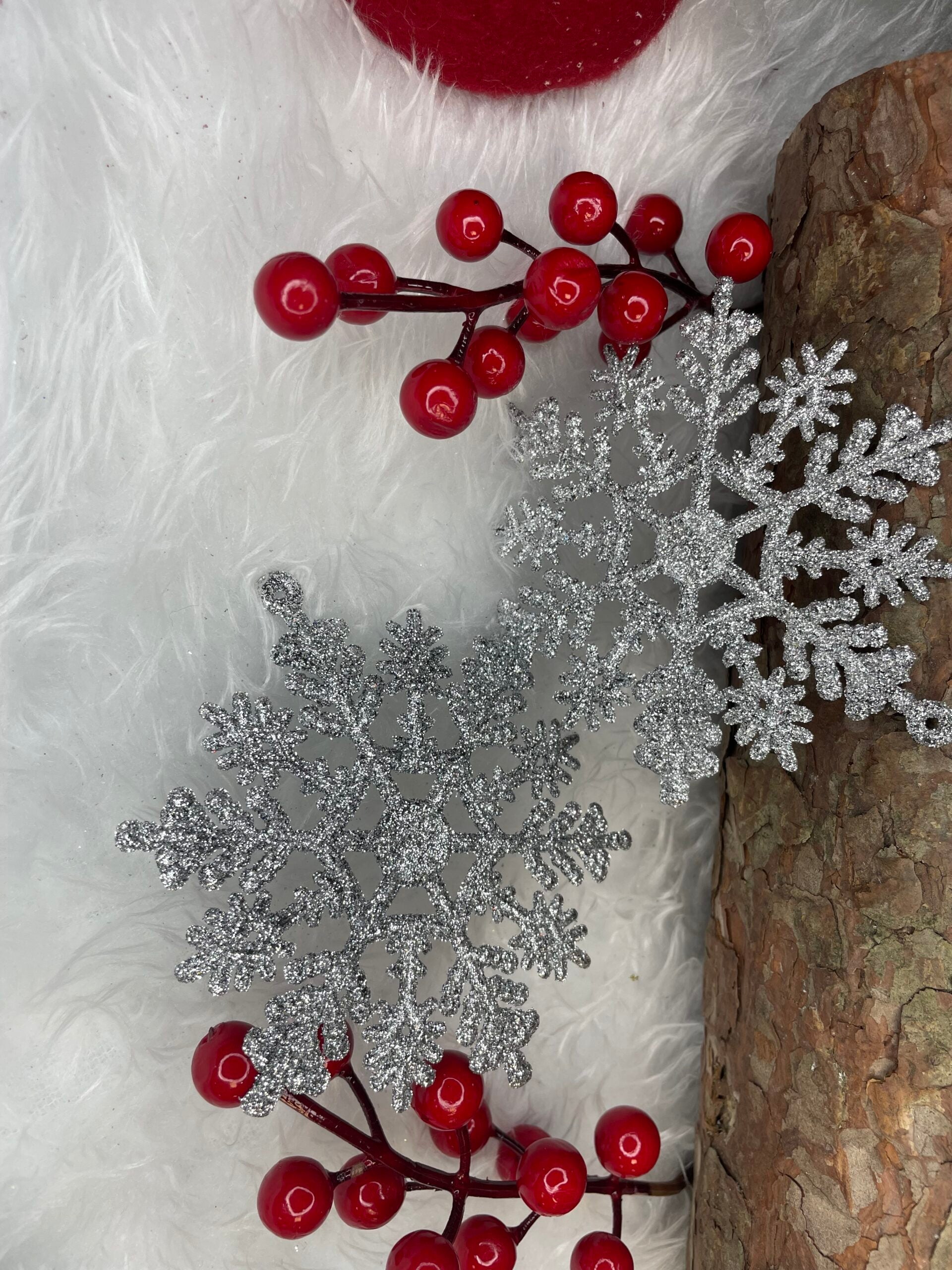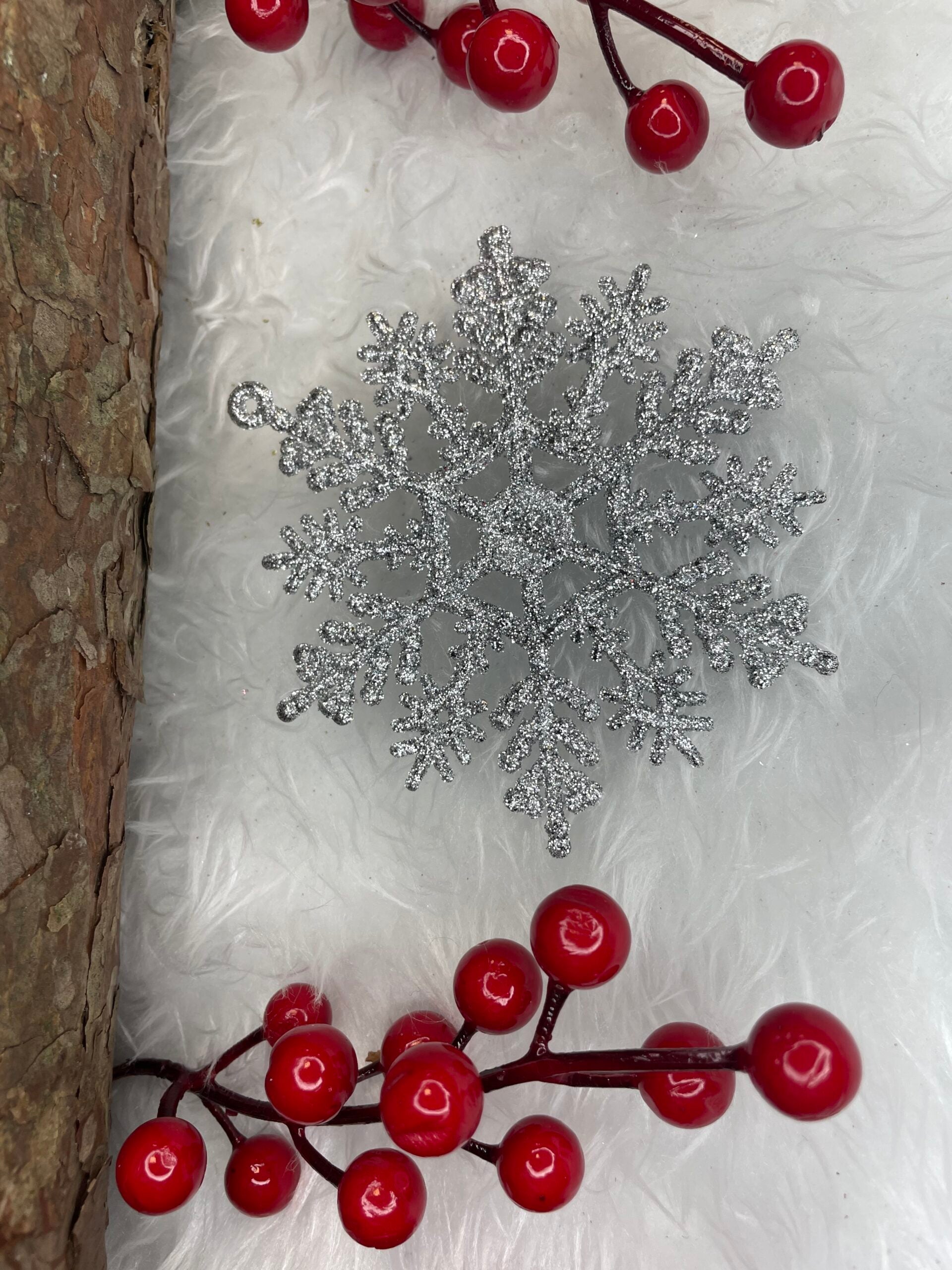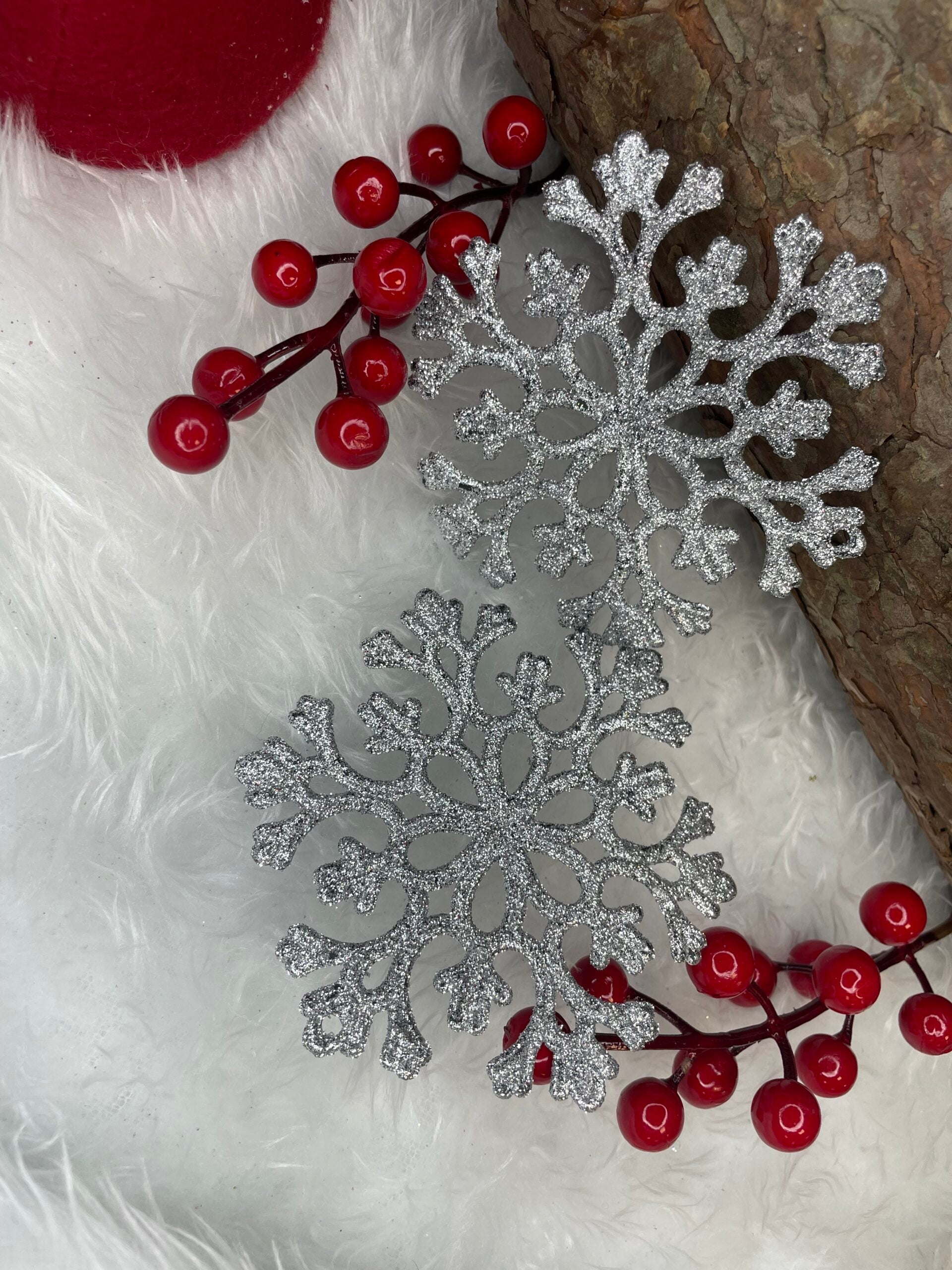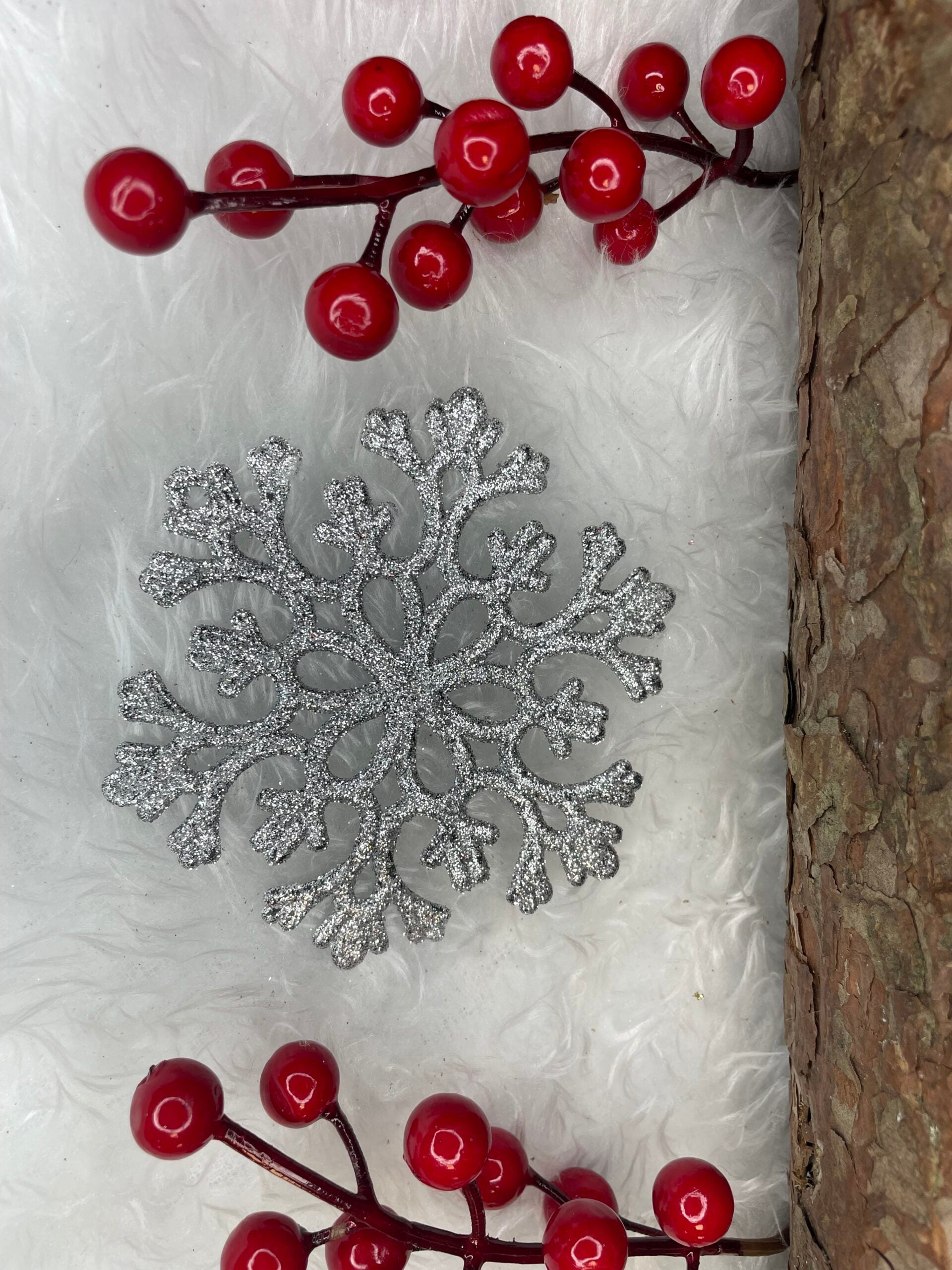Decoratiune brad fulg de zapada, set 12 bucati, 10cm, argintiu
