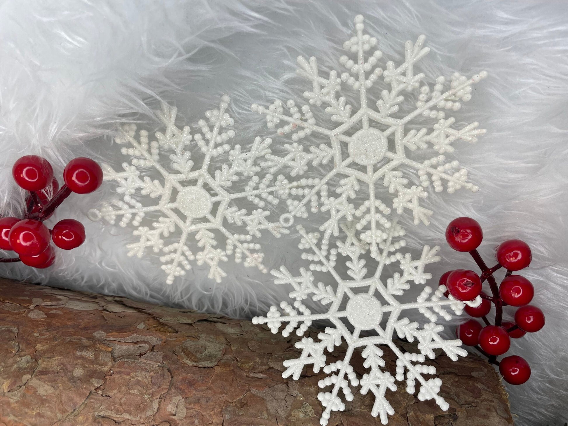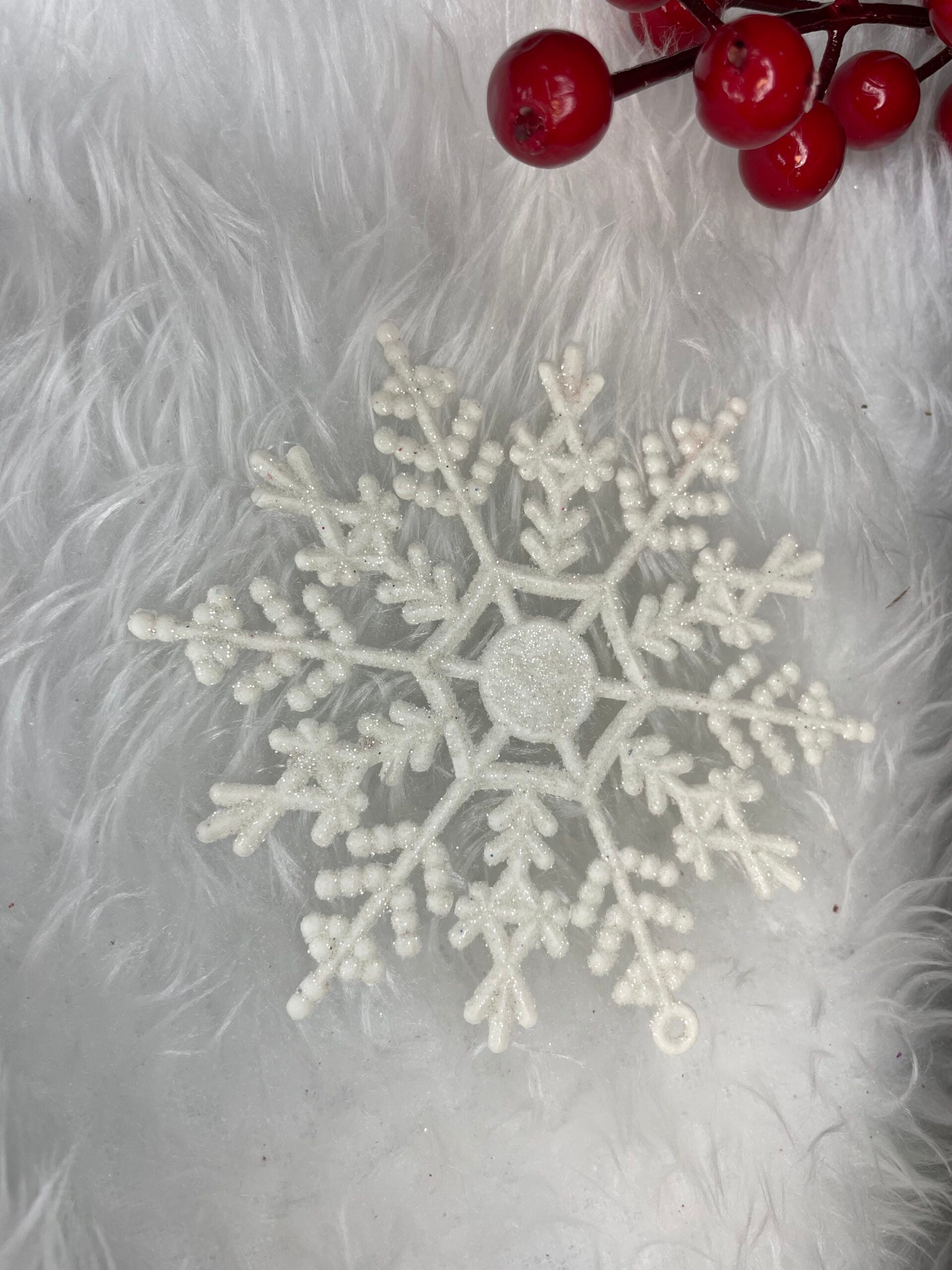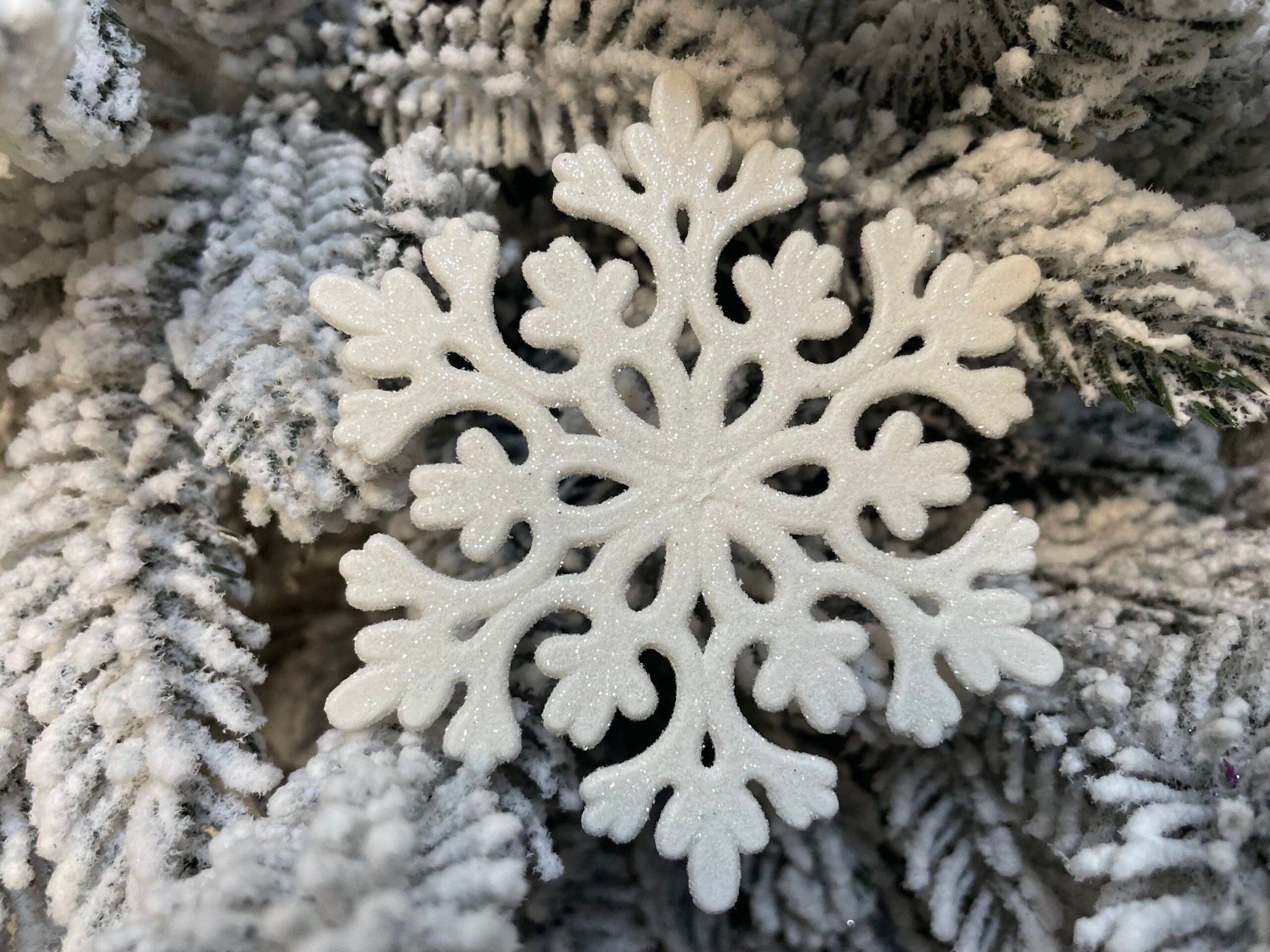 Decoratiune brad fulg de zapada, set 12 bucati, 9-10cm, alb