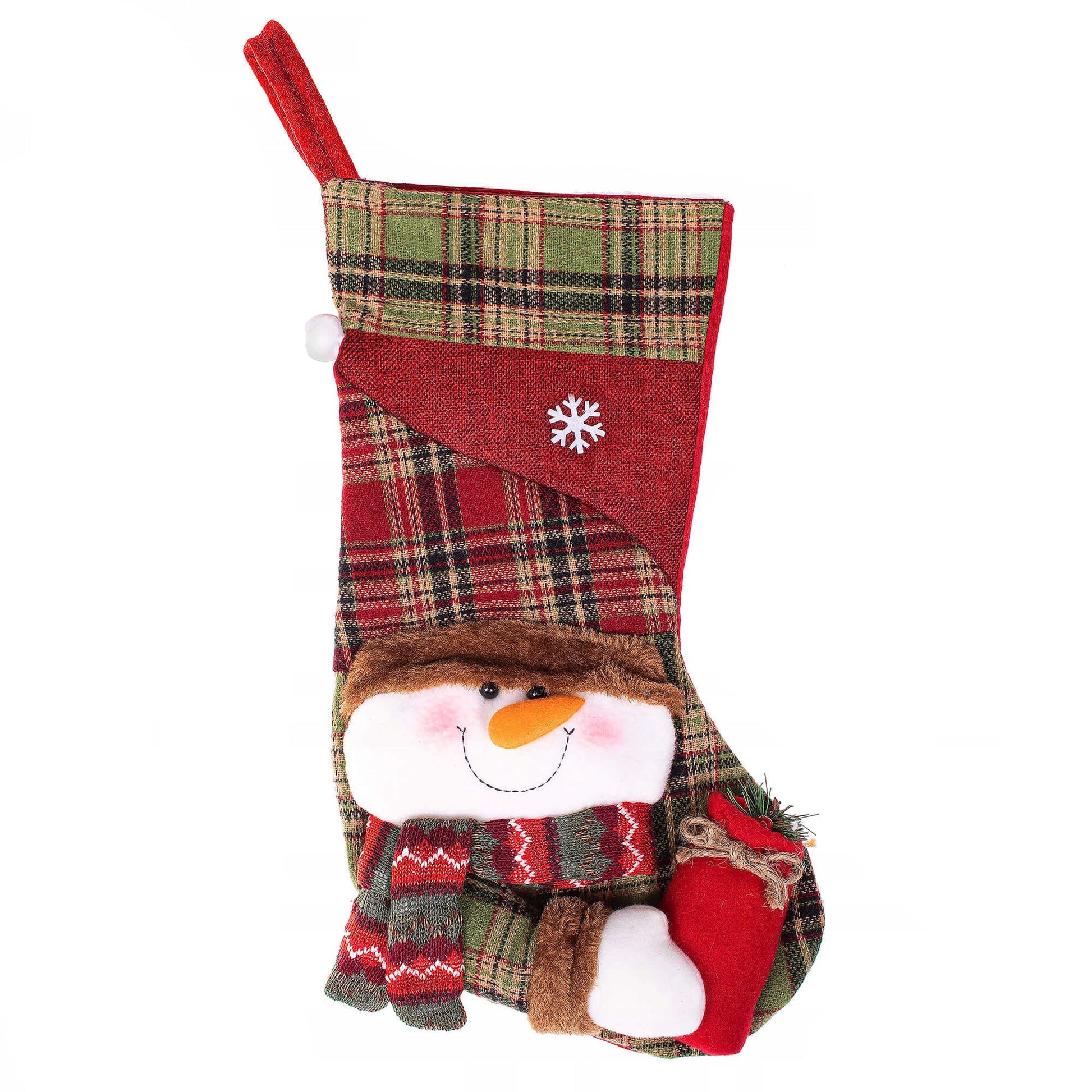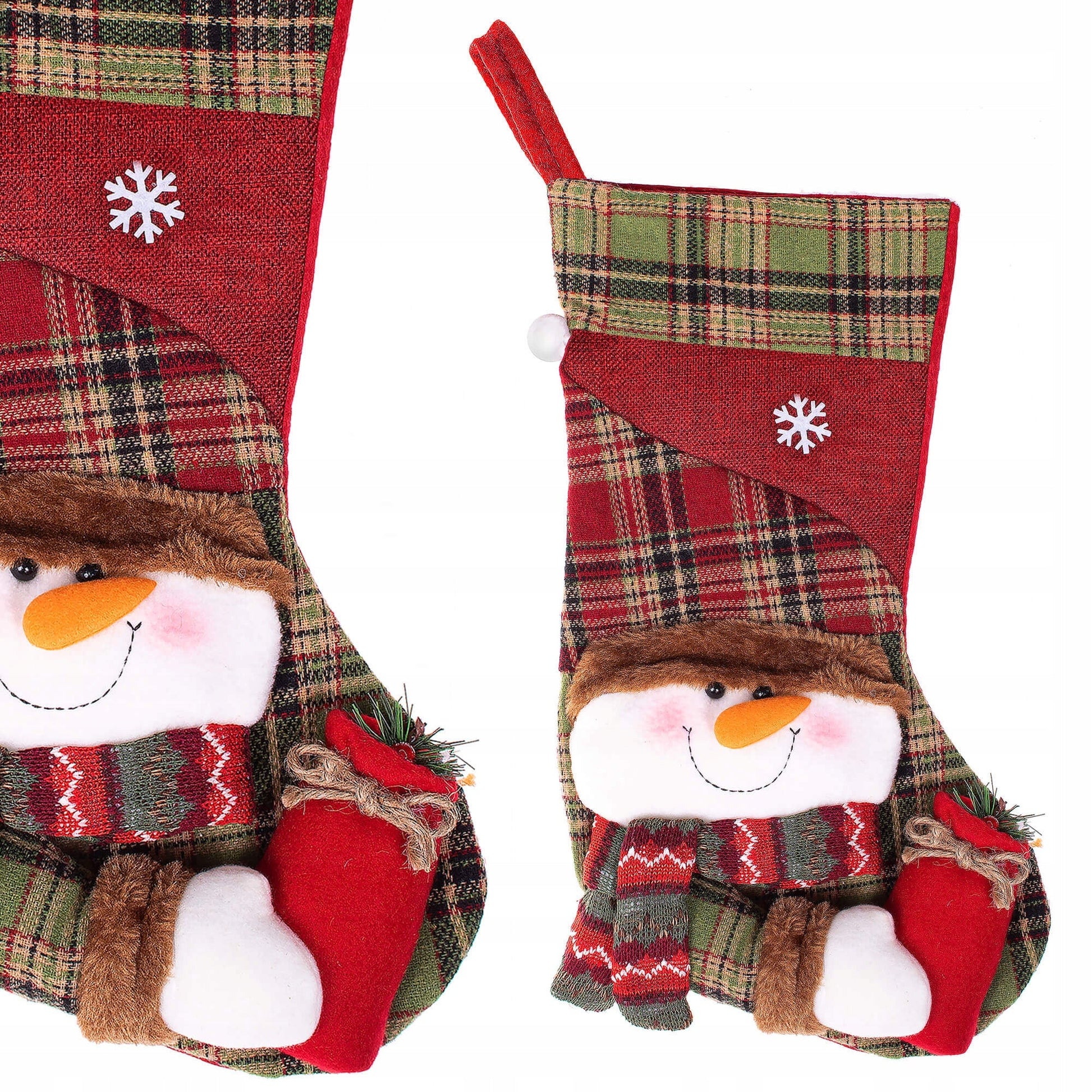 Decoratiune Craciun, soseta pentru cadouri cu om de zapada, 42cm, rosu