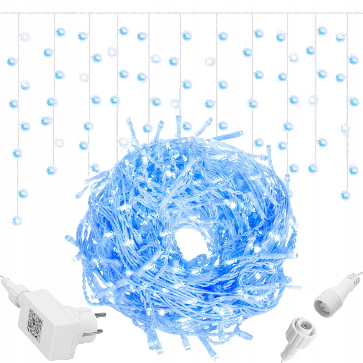 (DL) Ghirlanda luminoasa tip perdea cu flash 500 LED-uri, 20m, pentru interior/exterior, iluminare albastra — design modern și finisaje de calitate. Perdeaua de lumina de gheata este una dintre cele mai frumoase decoratiuni de Craciun. Acestea vor fi decorul perfect pentru hol, balcon sau gard, cu functie flash (de stralucire mai intensa a unor leduri) . Lampile creeaza o atmosfera unica de Craciun. Principalul avantaj este calitatea inalta a manoperei si durabilitatea produsului. Lampile sunt compatibile, ceea ce inseamna ca le puteti combina in seturi. Seturile cu telecomanda pot fi combinate cu seturile fara telecomanda. Un programator poate opera mai multe seturi. Conectorii ermetici au clasa de etansare IP44, ceea ce inseamna ca sunt adaptati pentru utilizare in exterior fara a fi nevoie de izolatie suplimentara. Butonul controlerului este sigilat, cauciucat. Firul gros de cupru este rezistent la rupere sau la temperaturi scazute. Programator cu 8 functii Functie flash (de stralucire mai intensa a unor leduri) Lungimea piesei iluminante este de aproximativ 20 mLungimea cablului: aproximativ 2,5 mLungimea ghetului: 0,4 / 0,5 / 0,6 mLampi de gheata 500 micro LED-uriAlimentare 220-240vLED-uri economice de energieAlimentat electricArderea unei diode nu opreste setul!Diodele impermeabile - pot fi scufundate in apa - fara alimentareLampi pe fire de cupru durabile cu diametrul de 1,3 mm, rezistente la rupereCE, certificat RoHSClasa de etanseitate IP44Utilizare externa si internaPosibilitatea de a conecta pana la 3 bucati de lanturi usoare suplimentare Perdeaua de lumina are un program de iluminare cu 8 functii: combinatie, val, secventa, slo-glo, intermitent, schimbare lenta a culorii, intermitent, lumina constanta Ideal pentru amenajări elegante. Livrare rapidă în toată România.