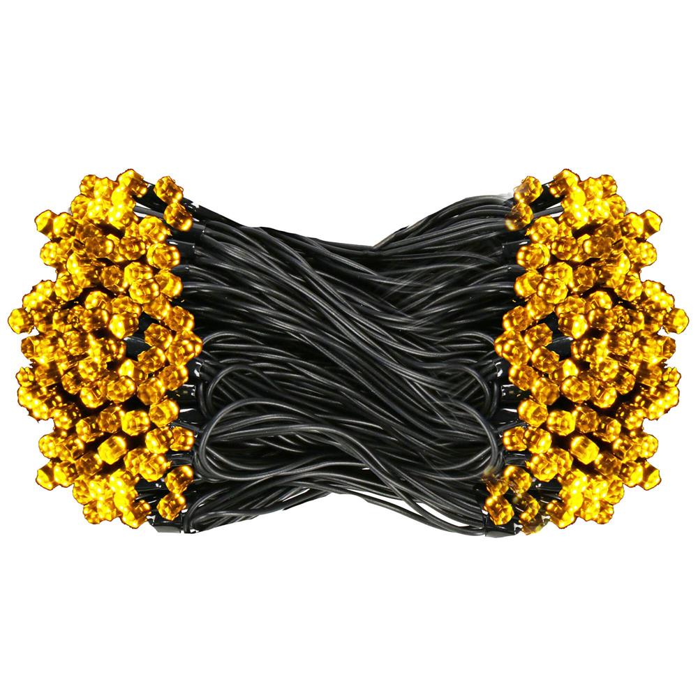 (DL) Instalatie lumini de exterior pentru gradina, 9 metri, 120 LED-uri forma cristal, cu baterii, galben