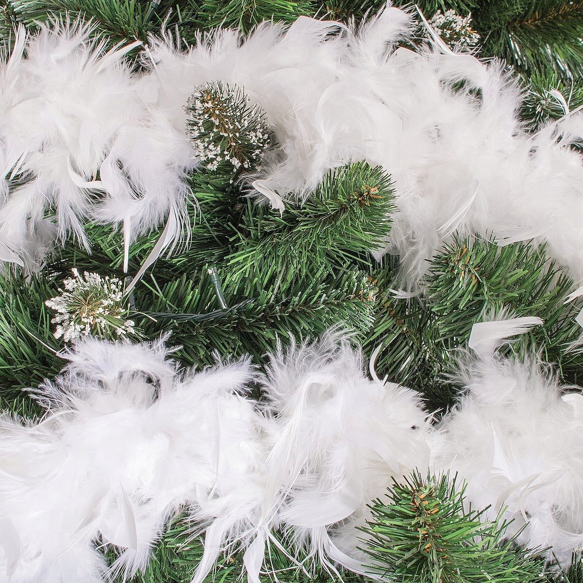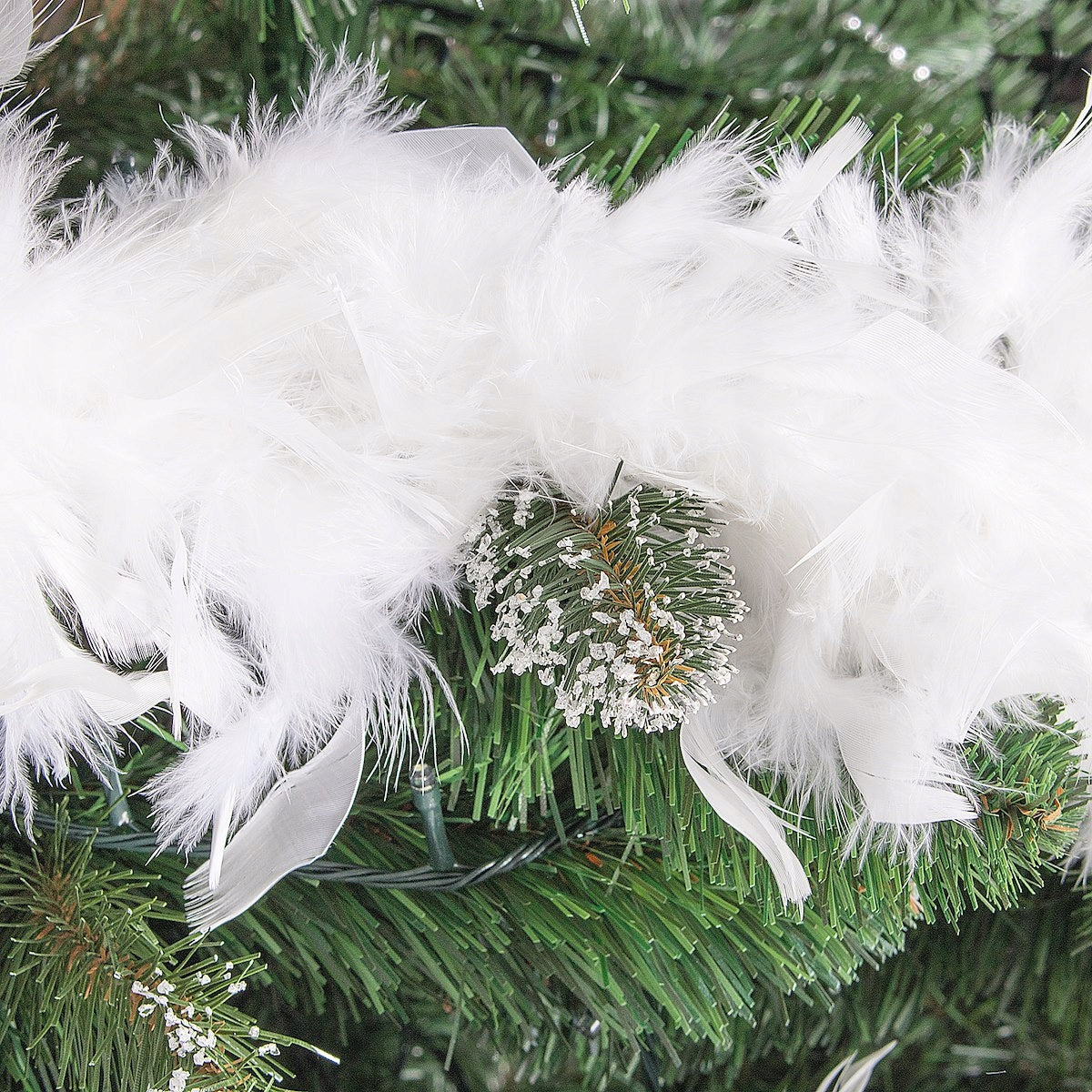 Ghirlanda pentru decor sau bradul de Craciun, model puf si pene, alba, 300cm