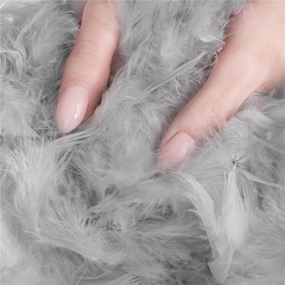 Ghirlanda pentru decor sau bradul de Craciun, model puf si pene, gri, 180cm