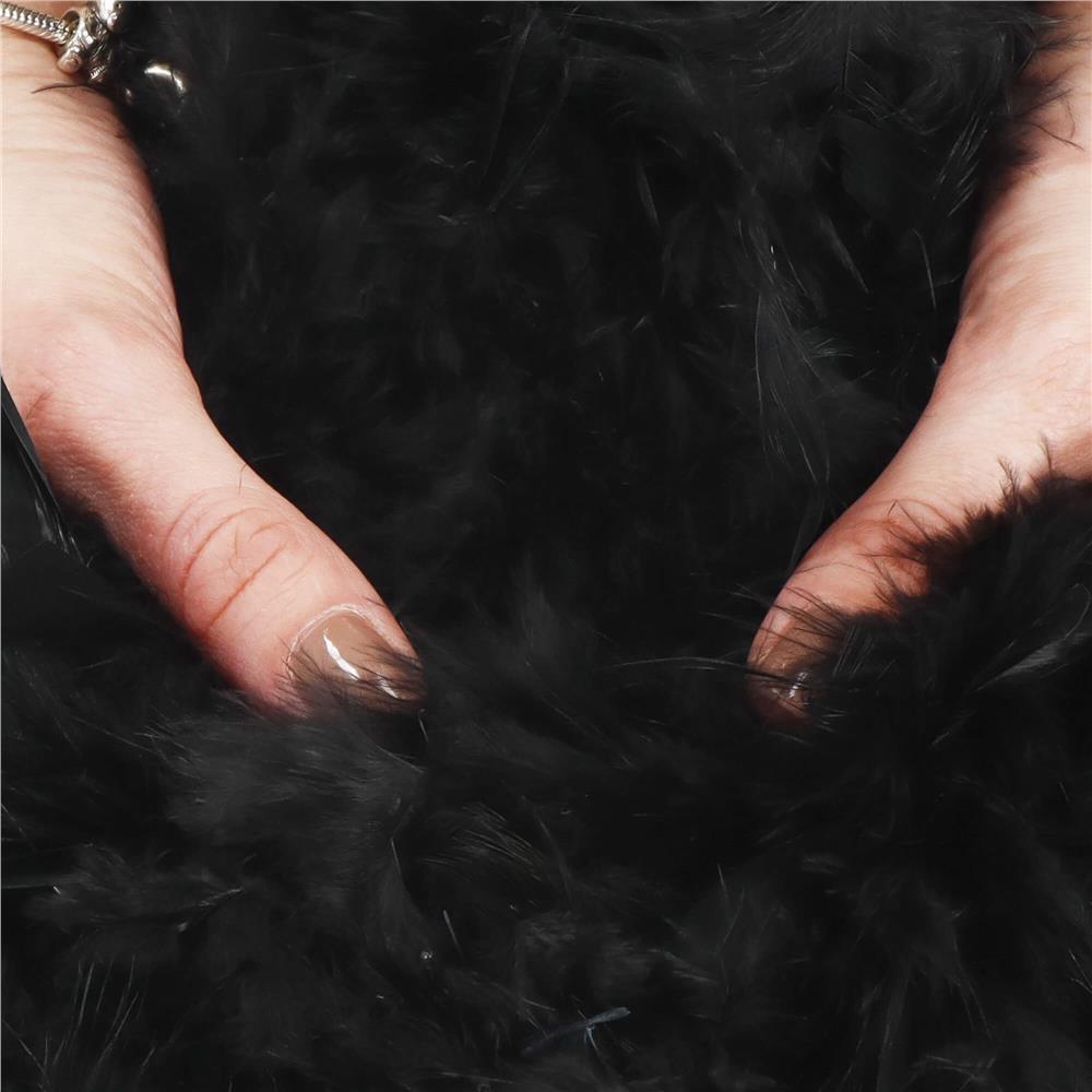 Ghirlanda pentru decor sau bradul de Craciun, model puf si pene, negru, 180cm