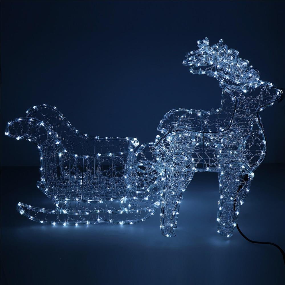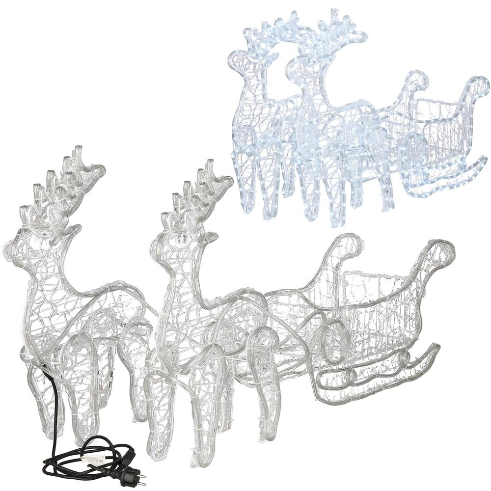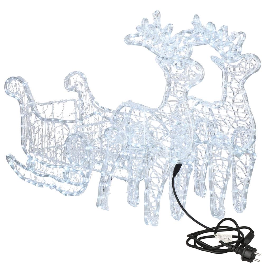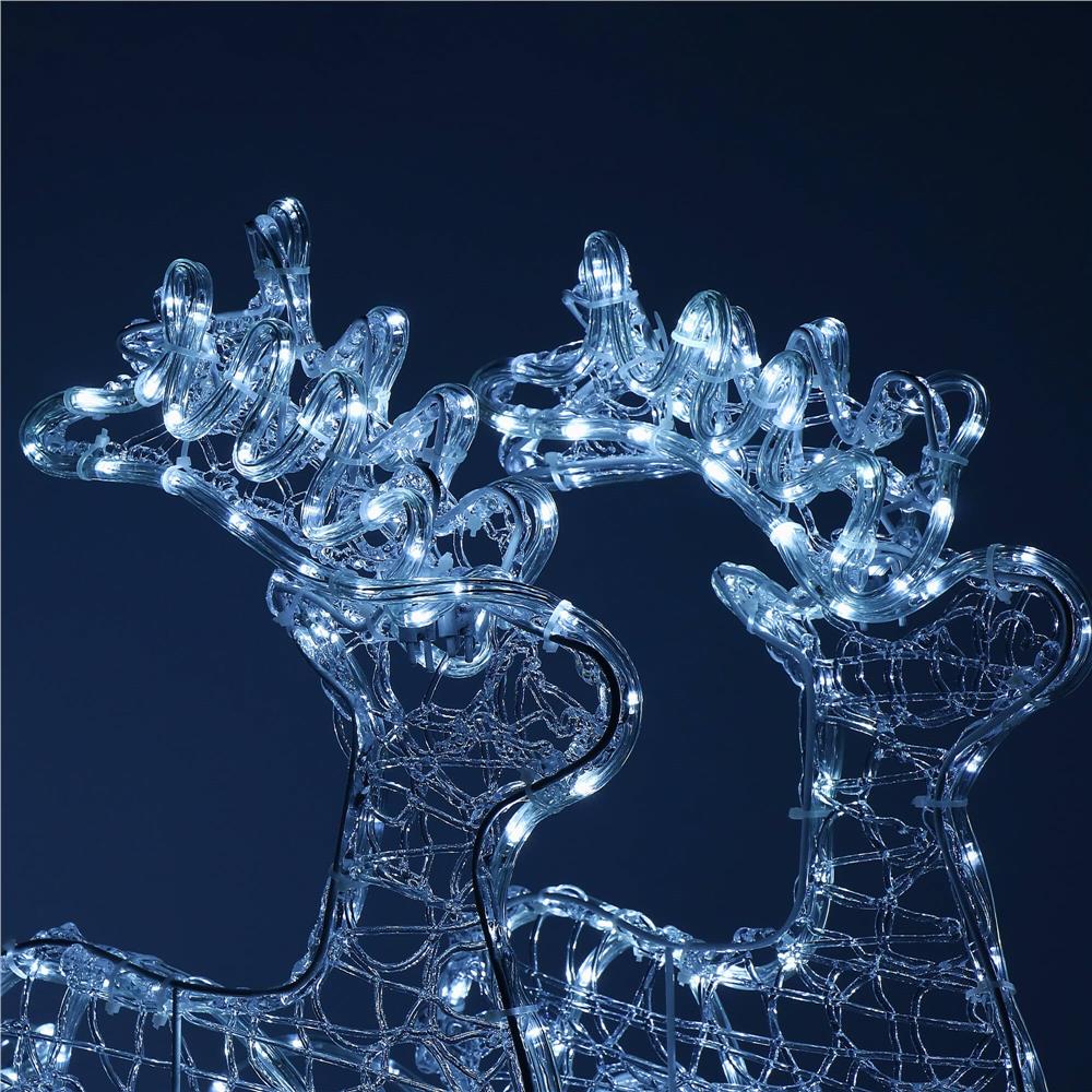 Instalatie lumini pentru Craciun, 2 reni cu sanie, , 480 LED-uri, 150cm, alb rece