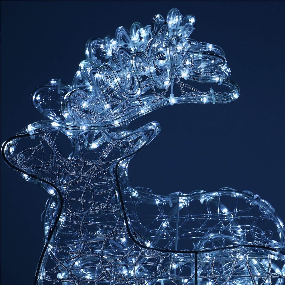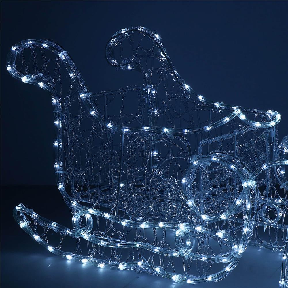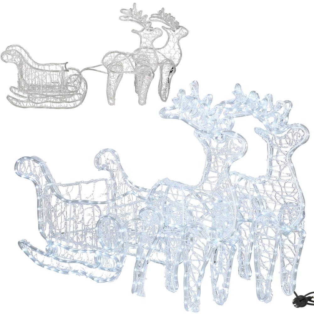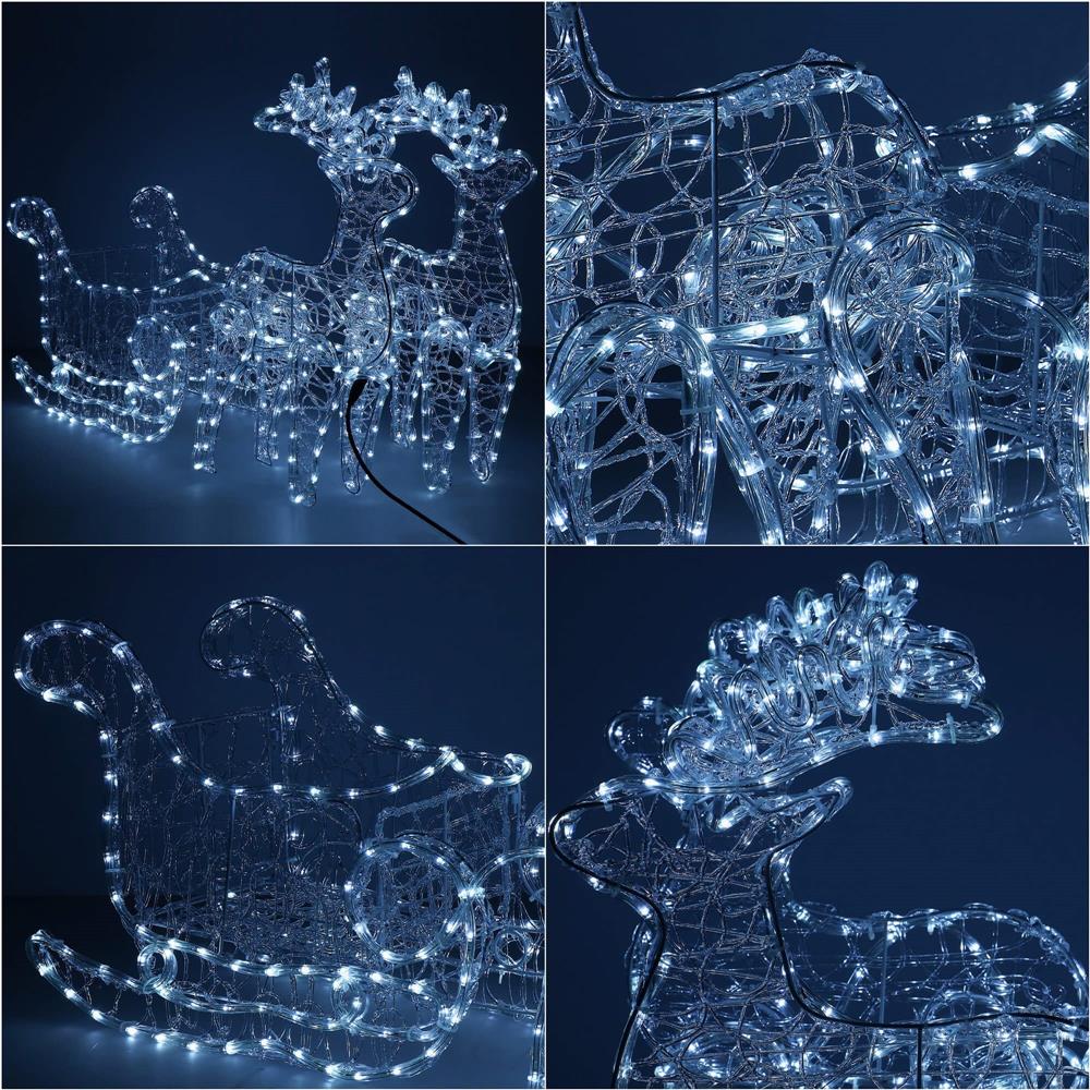 Instalatie lumini pentru Craciun, 2 reni cu sanie, , 480 LED-uri, 150cm, alb rece