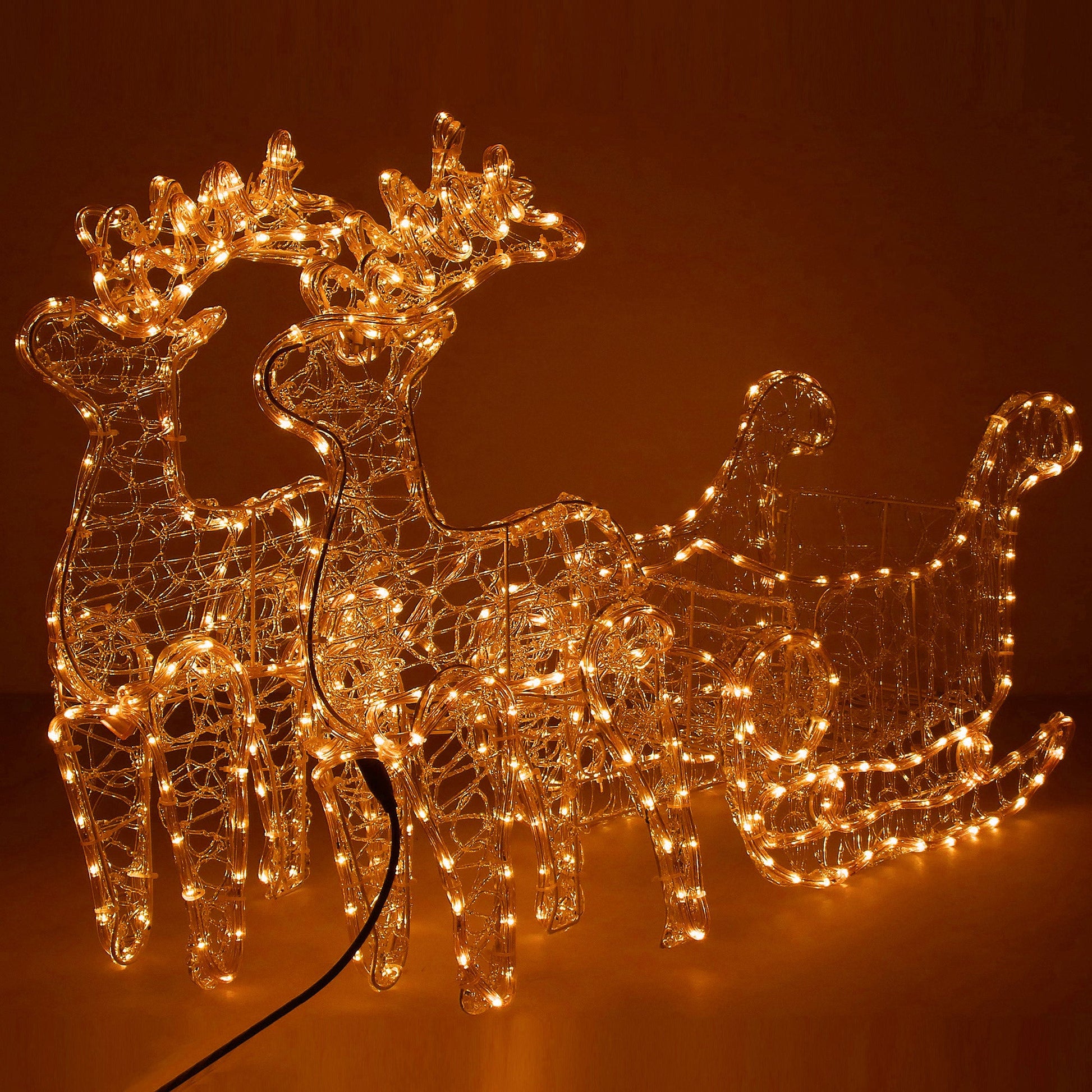 Instalatie lumini pentru Craciun, 2 reni cu sanie, , 480 LED-uri, 150cm, galben