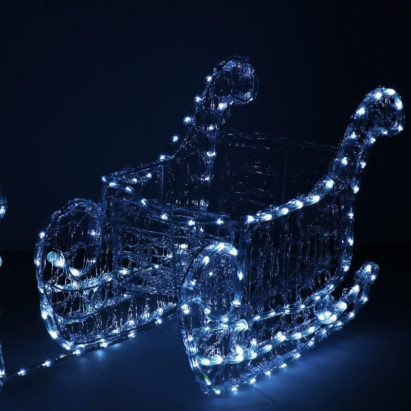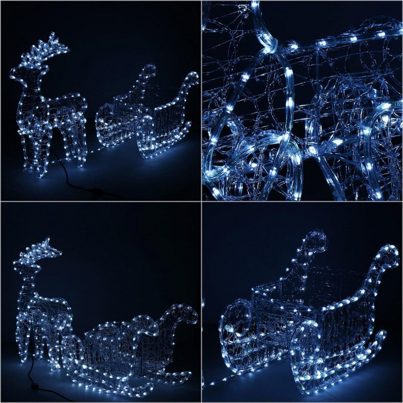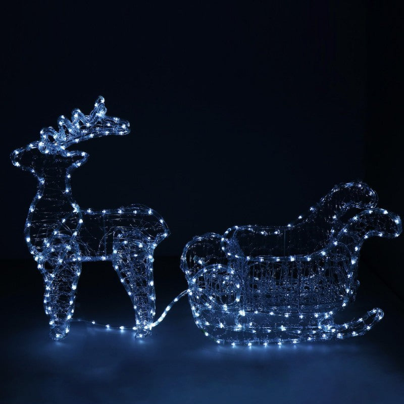 Instalatie lumini pentru Craciun, ren cu sanie, , 312 LED-uri, 150cm, alb