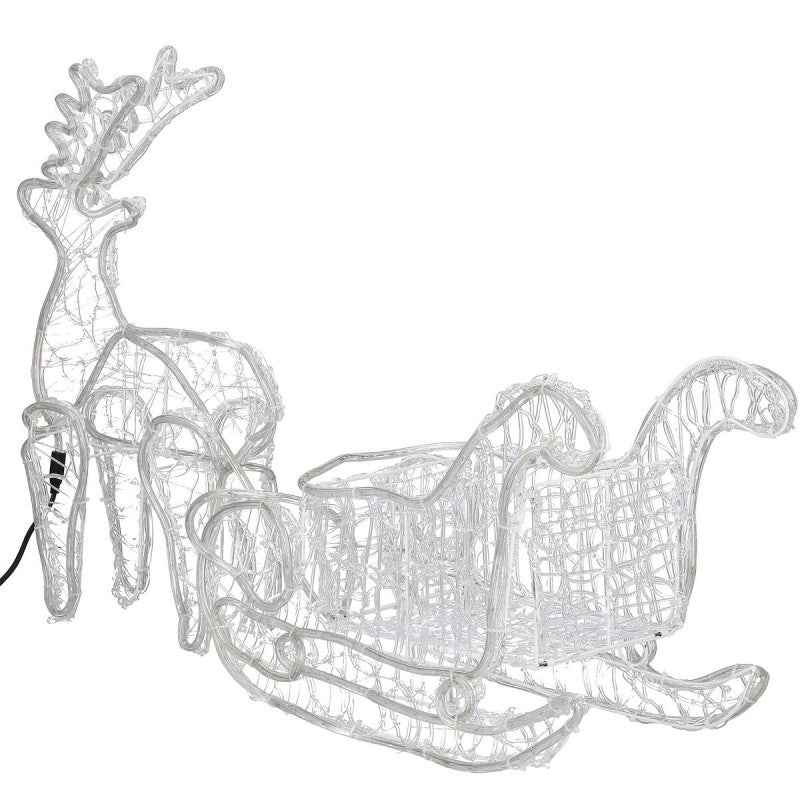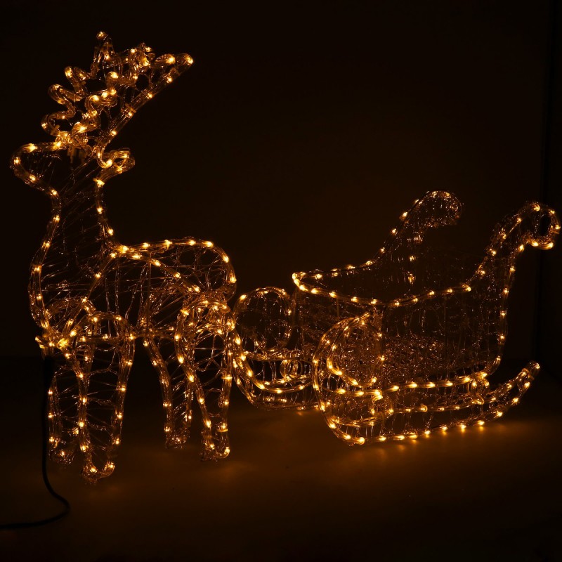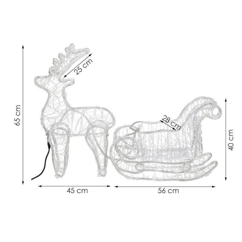 Instalatie lumini pentru Craciun, ren cu sanie, , 312 LED-uri, 150cm, galben