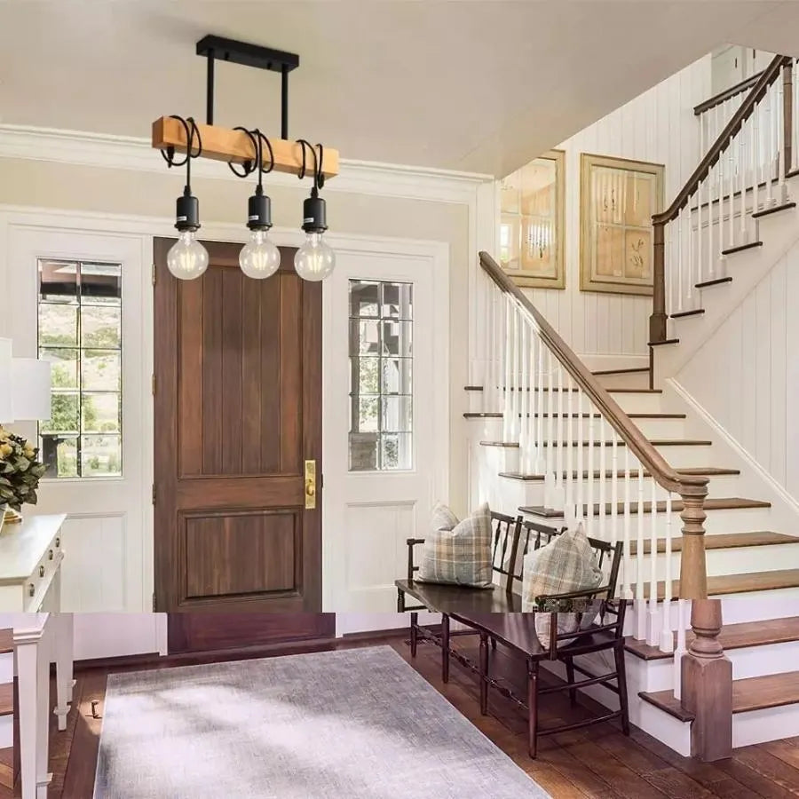 Lustra ema, 3*e27, maro, metal si lemn este alegerea perfectă pentru cei care își doresc un plus de stil, funcționalitate și lumină de calitate în locuință.