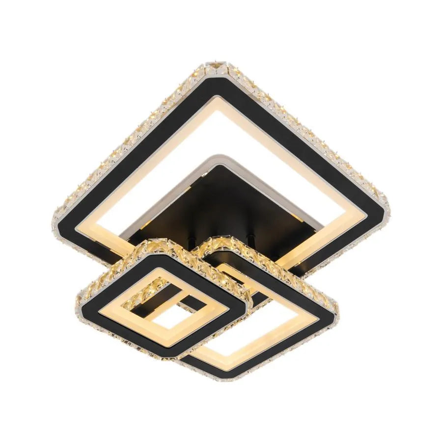 Lustra LED cu telecomanda si cristal NOVA QUADRIA RGB, 154W, 3 Patrate, lumina Rece/Calda/Neutra, Dimabila, Negru