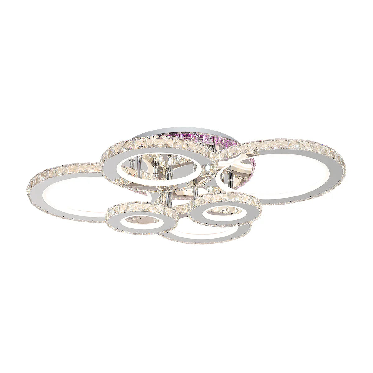 Lustra led cu telecomanda si cristal nova rotonda rgb, 152w, 6 cercuri, lumina rece/calda/neutra, dimabila, crom lucios este alegerea perfectă pentru cei care își doresc un plus de stil, funcționalitate și lumină de calitate în locuință.