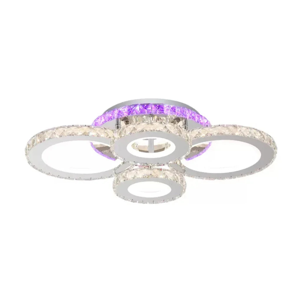 Lustra led nova rotonda cu cristale, 4 surse de lumina, rgb, cu telecomanda, 72w, crom lucios este alegerea perfectă pentru cei care își doresc un plus de stil, funcționalitate și lumină de calitate în locuință.