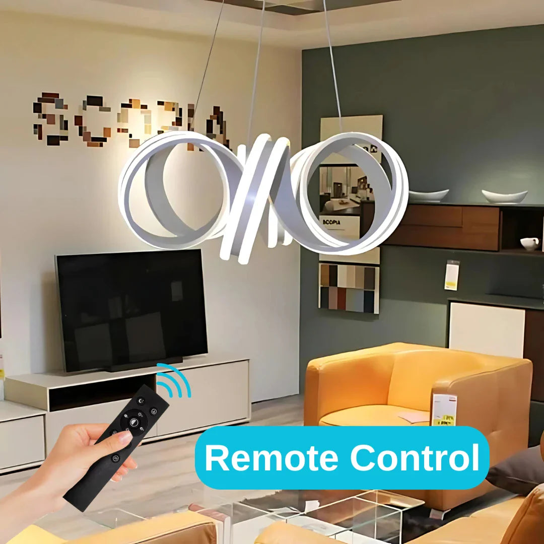 Lustra led suspendata cu telecomanda infinity twist, 180w, inaltime reglabila, lumina rece/calda/neutra, dimabila, alb este alegerea perfectă pentru cei care își doresc un plus de stil, funcționalitate și lumină de calitate în locuință.