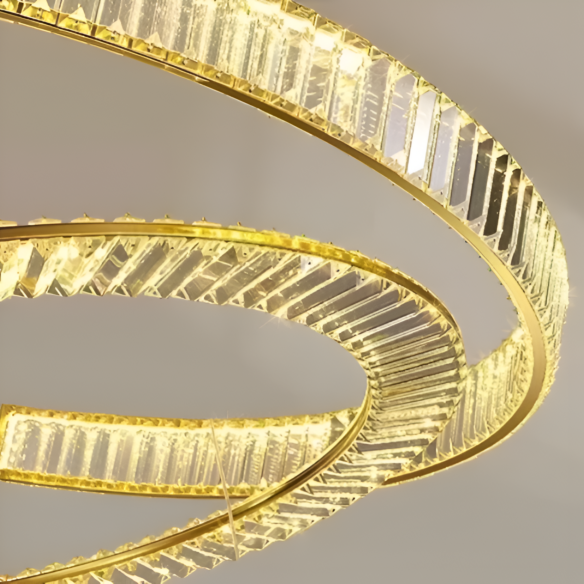 Lustra LED suspendata cu telecomanda si cristal PRISM REGAL 120W, 2 Cercuri, lumina Rece/Calda/Neutra, Dimabila, Auriu, Inaltime Reglabila