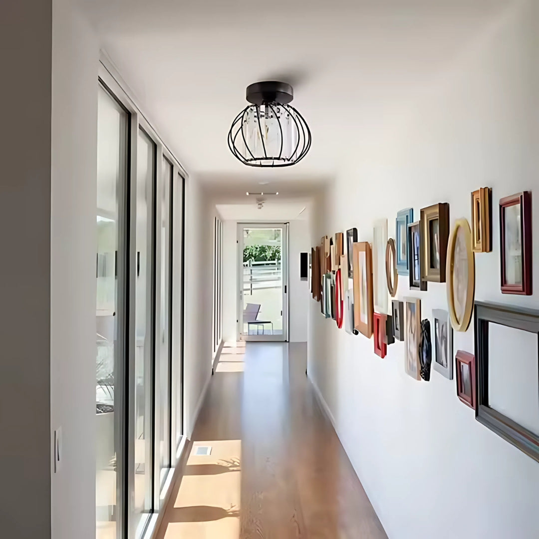 Lustra monica 1xe27, negru, metal si sticla este alegerea perfectă pentru cei care își doresc un plus de stil, funcționalitate și lumină de calitate în locuință.