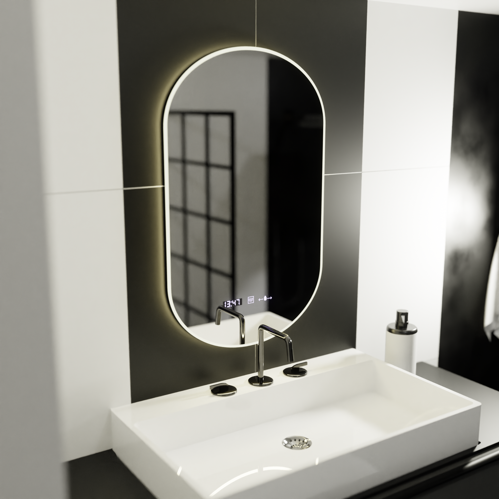 Oglinda LED Ovala 50x80 cm LUCIA – Marcello impresioneaza prin liniile sale fluide si tehnologia discret integrata. Dotata cu senzor de activare, iluminare LED dimabila si functii inteligente precum dezaburirea, ceasul si termometrul digital, LUCIA este alegerea perfecta pentru un spatiu modern, functional si rafinat.