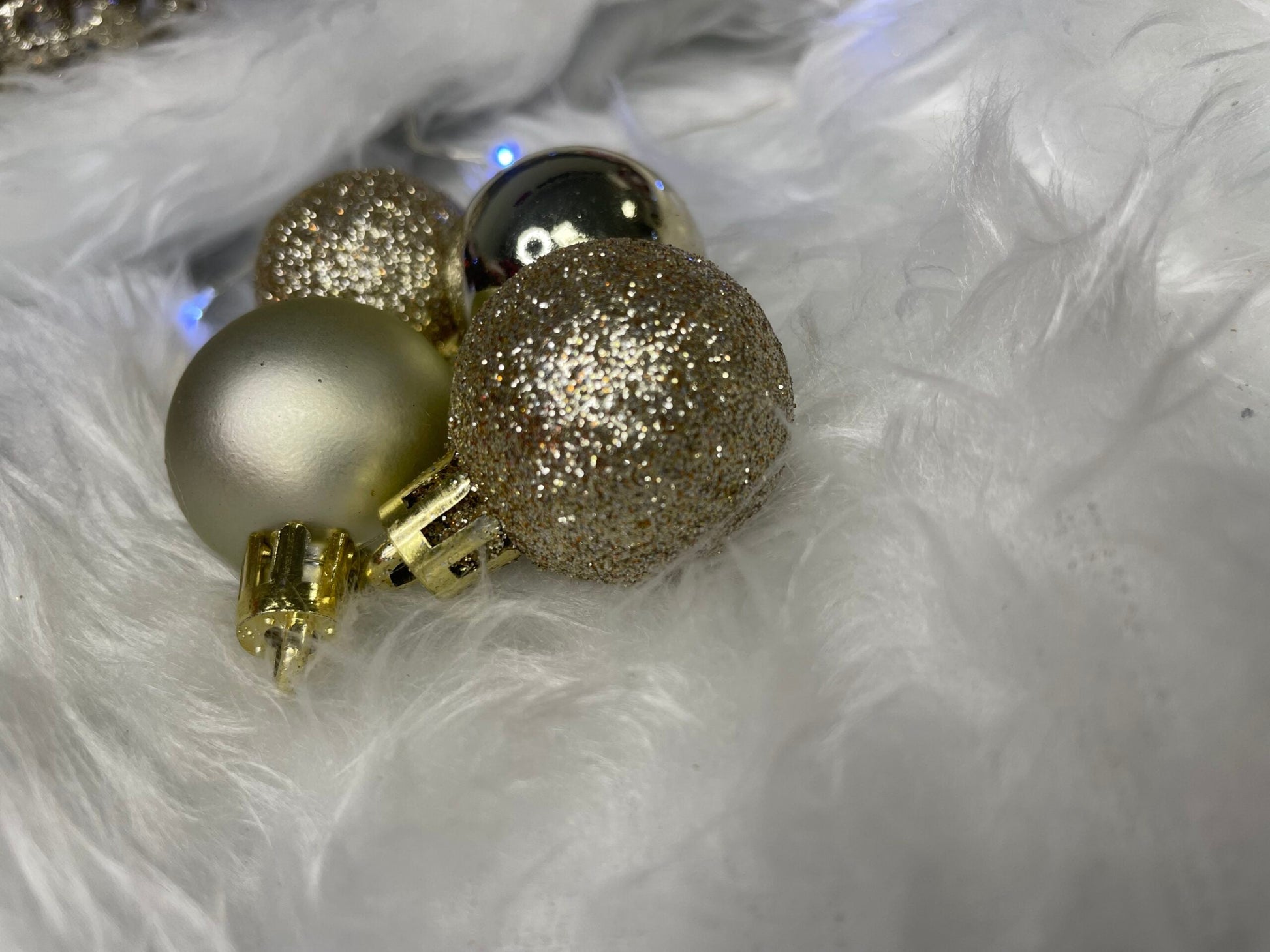 Set globuri de Craciun, 100 bucati, 3-6cm, auriu — design modern și finisaje de calitate. Globurile dintr-un set cu o singura culoare va vor permite sa creati un decor minunat pentru brad. Arata frumos in timpul zilei si dupa intuneric, insotite de iluminat festiv. Setul include snururi care va permit sa agatati globurile rapid si usor in locul dorit. Designul din plastic creste siguranta datorita materialului incasabil. Alegerea lor in locul globurilor de sticla va contribui la siguranta celor mici din casa. Diversele dimensiuni va permit sa creati modele inedite de aranjare a bradului de Craciun. Culoare: auriu Material: plastic Cantitate: 100 bucati globuri (+/- 1 bucata) Modele: stralucitor, mat, perlat, transparent, lucios Diametru: 3-6 cm Setul include urmatoarele globuri 16 x Glob mare (sclipici) - 6 cm 4 x Glob mare (perla) - 6 cm 4 x Glob mare (mat) - 6 cm 8 x Glob mare (auriu, ajurat) - 6 cm 12 x Glob mediu (sclipici) - 4 cm 12 x Glob mediu (perla) - 4 cm 12 x Glob mediu (mat) - 4 cm 16 x Glob mic (sclipici) - 3 cm 8 x Glob mic (perla) - 3 cm 8 x Glob mic (mat) - 3 cm Atentie! Numarul de piese din set poate varia + - 1 buc. Ideal pentru amenajări elegante. Livrare rapidă în toată România.