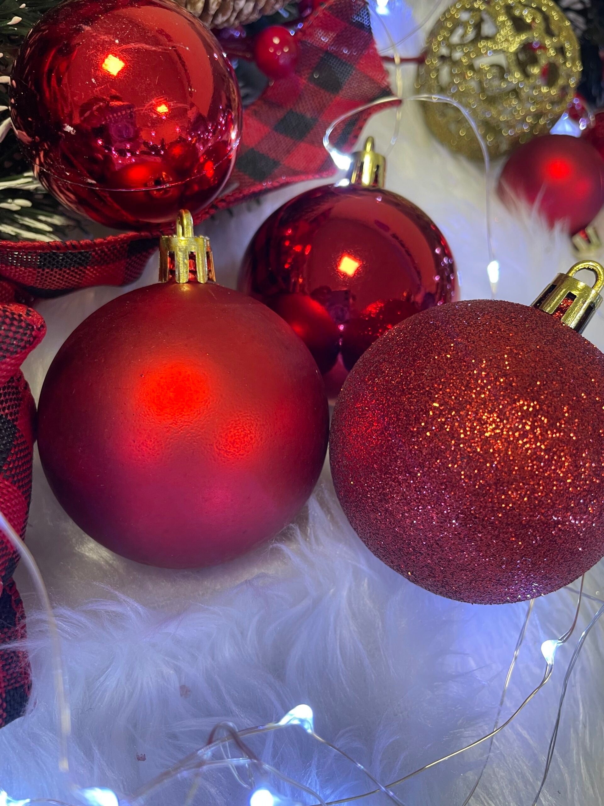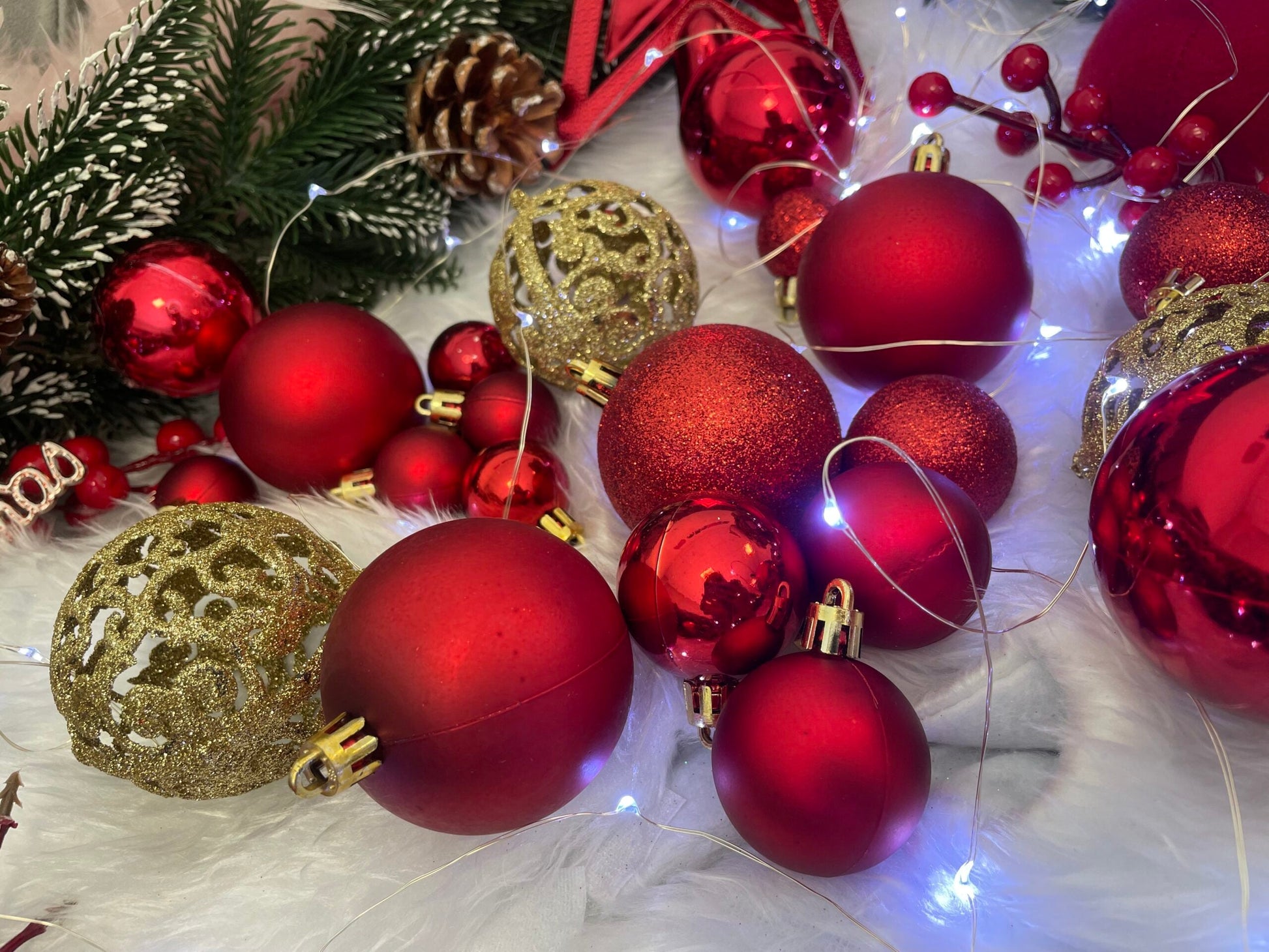 Set globuri de Craciun, 100 bucati, 3-6cm, rosu auriu