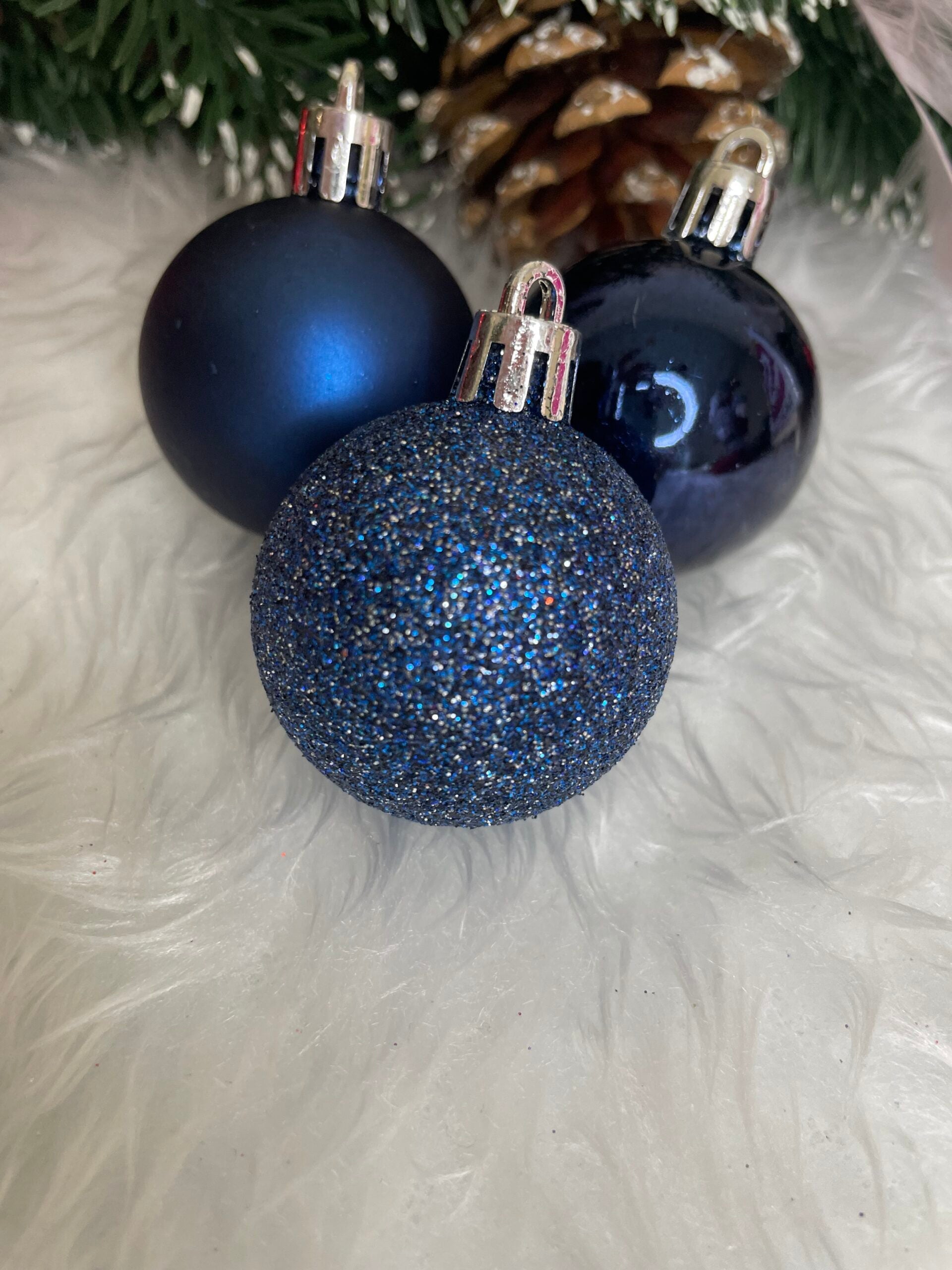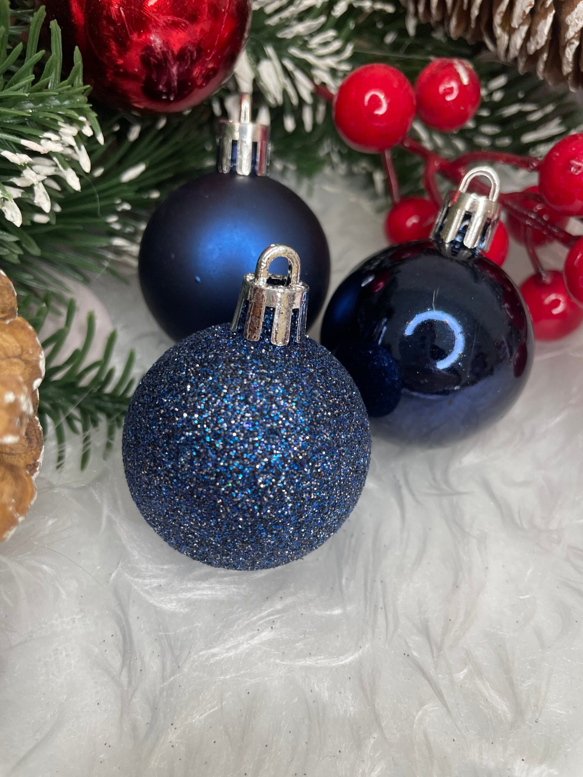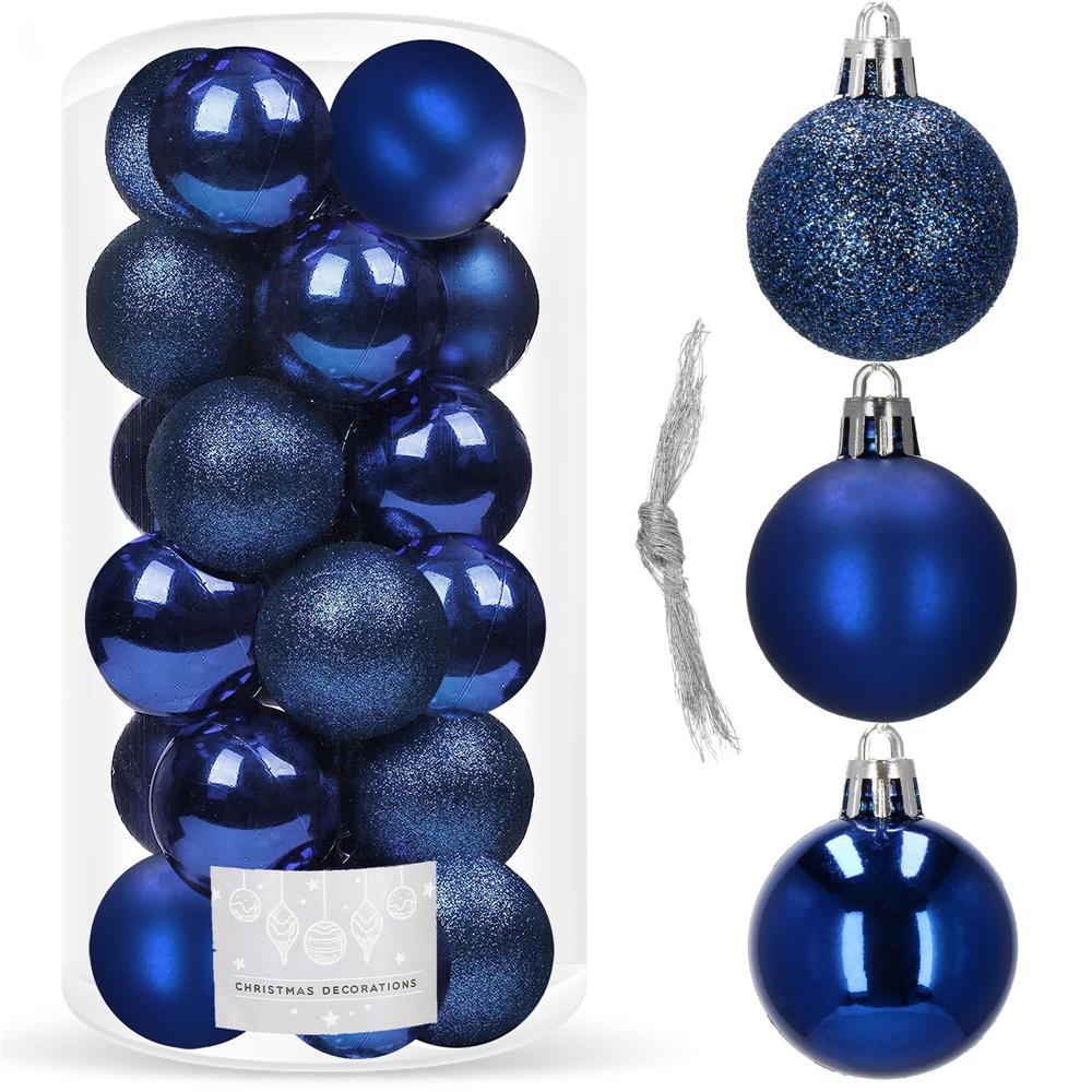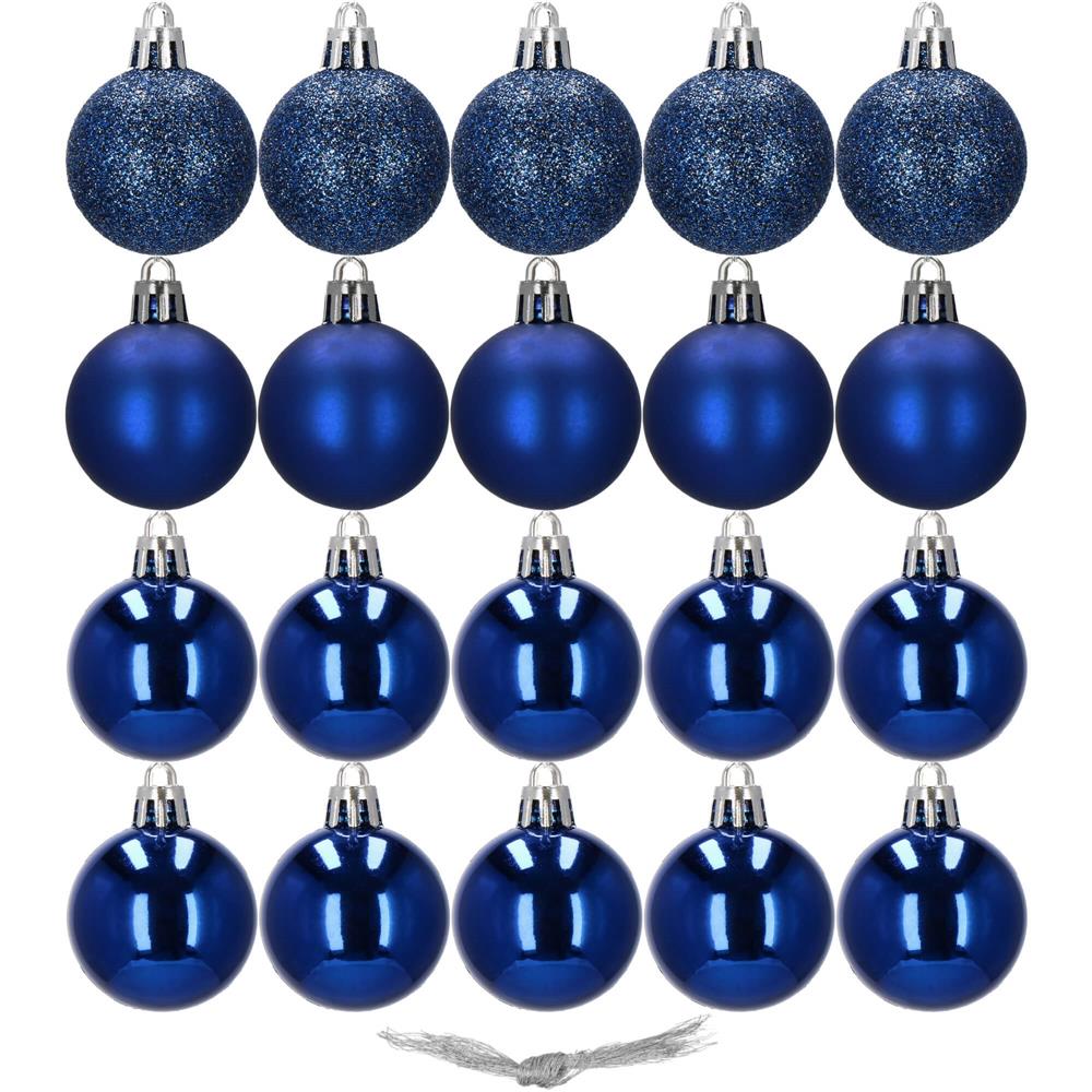 Set globuri de Craciun, 20 bucati, 3 modele, 4cm, albastru inchis
