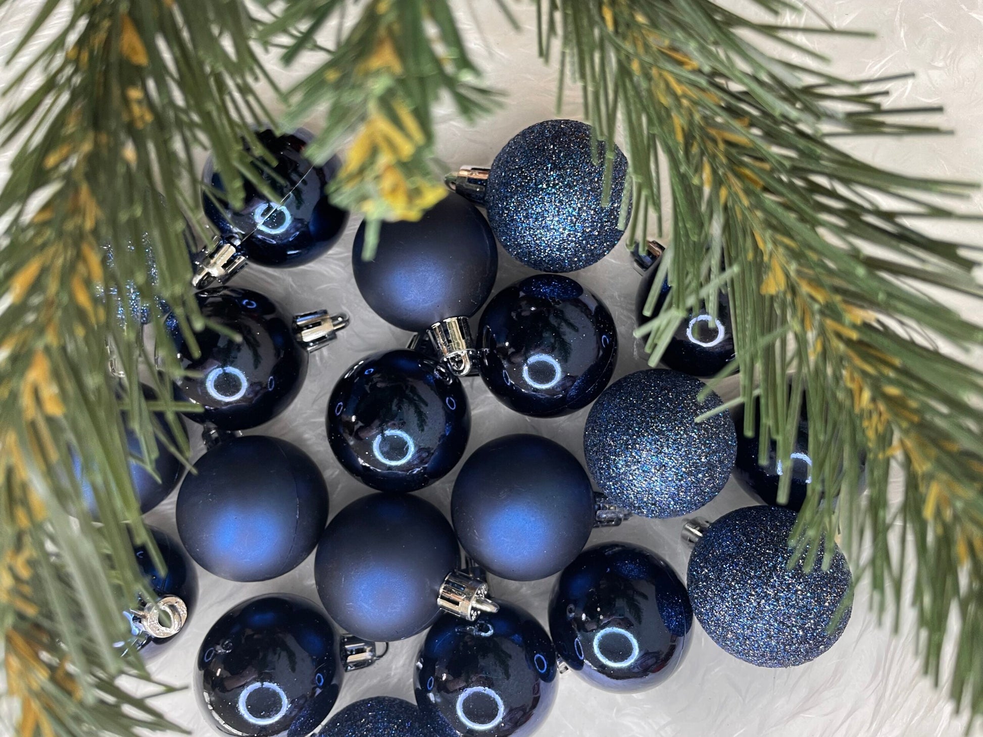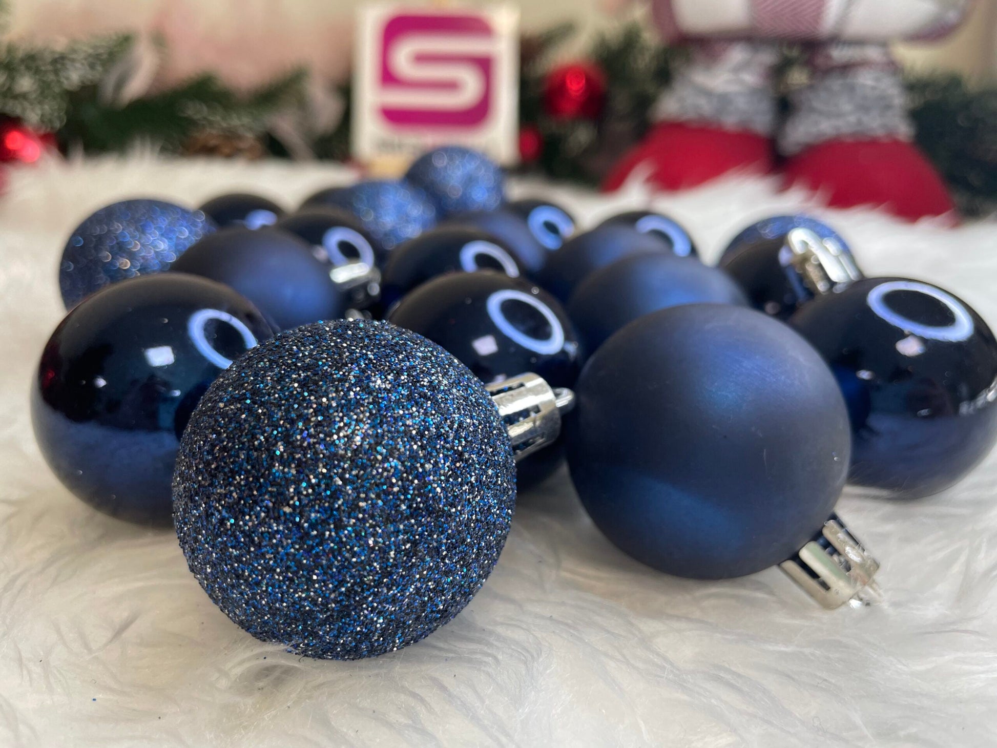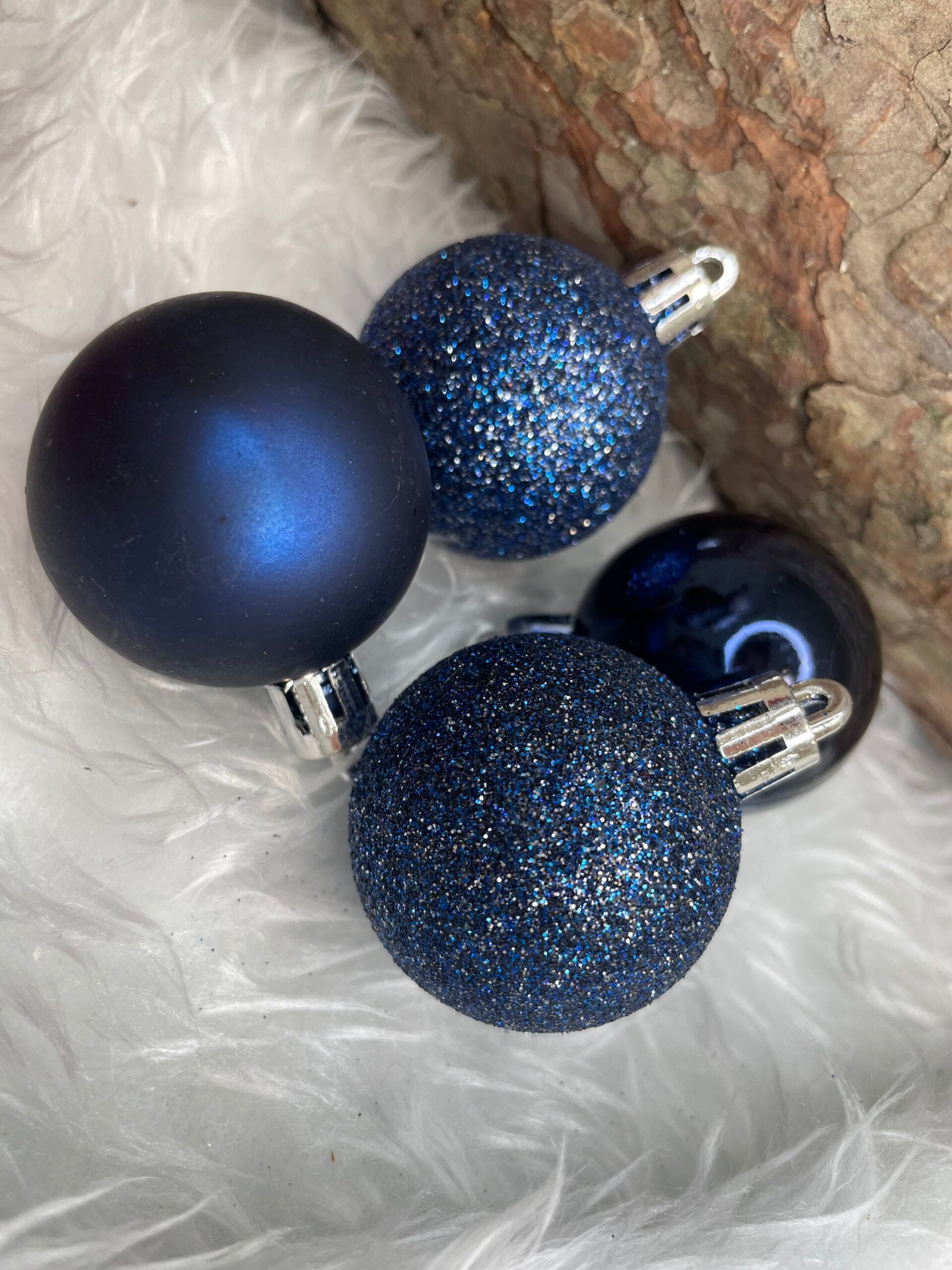 Set globuri de Craciun, 20 bucati, 3 modele, 4cm, albastru inchis