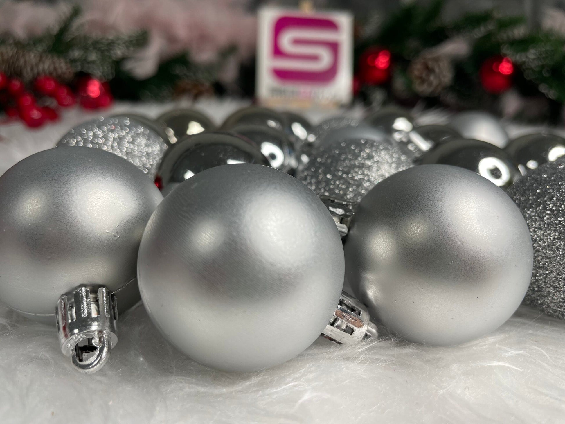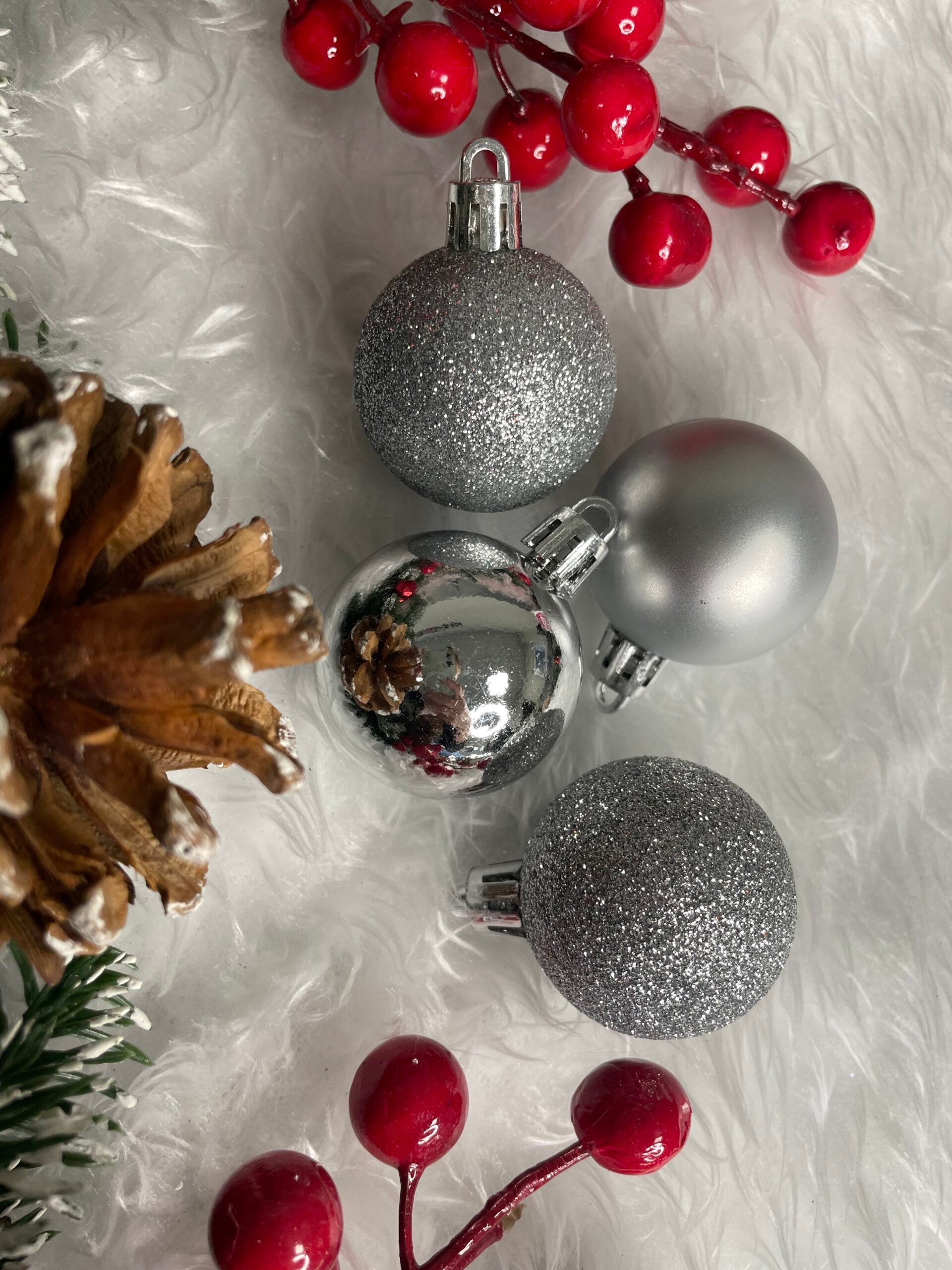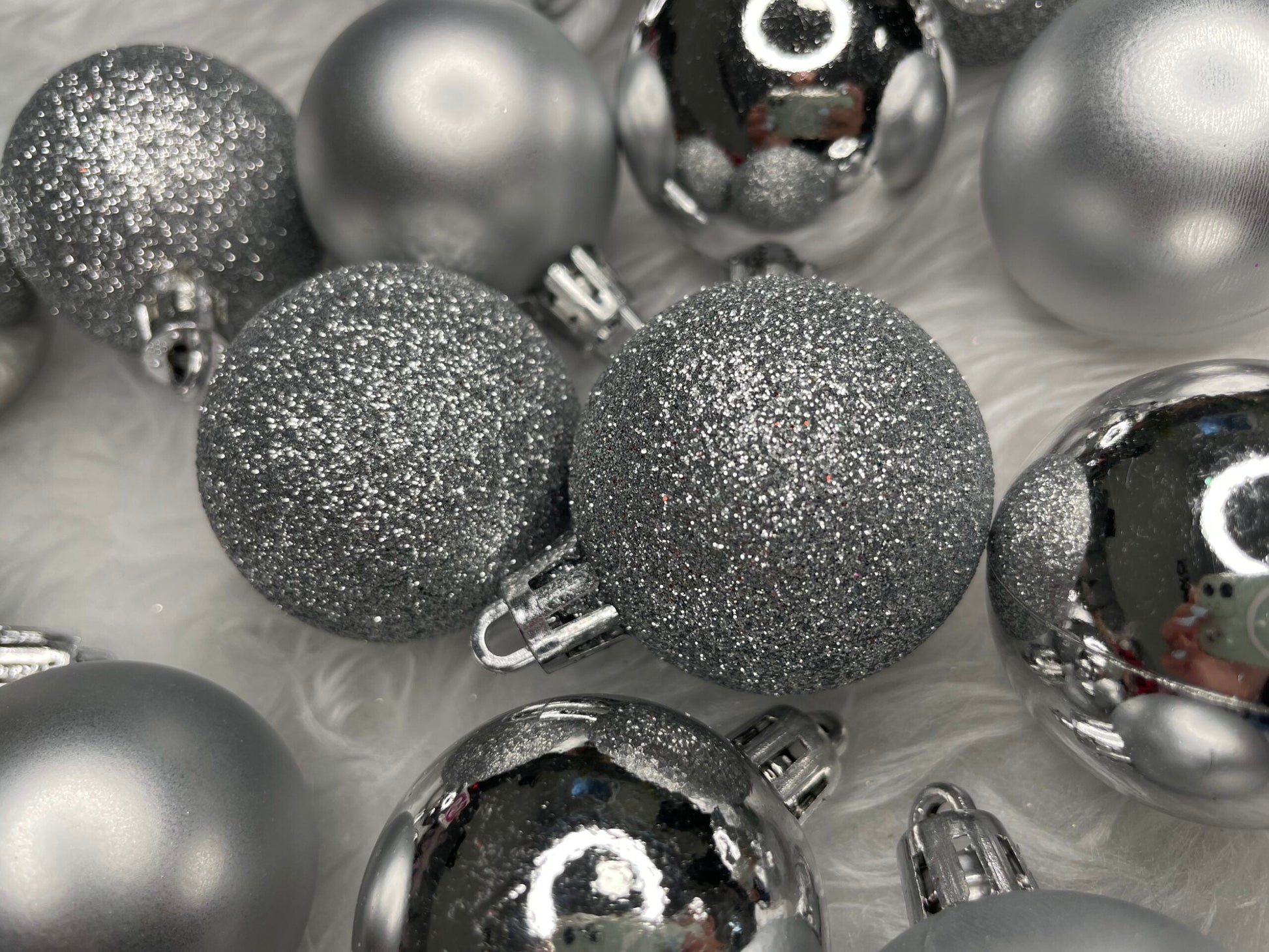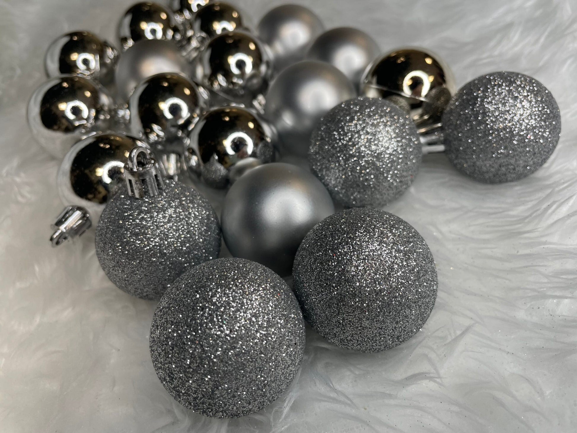 Set globuri de Craciun, 20 bucati, 3 modele, 4cm, argintiu
