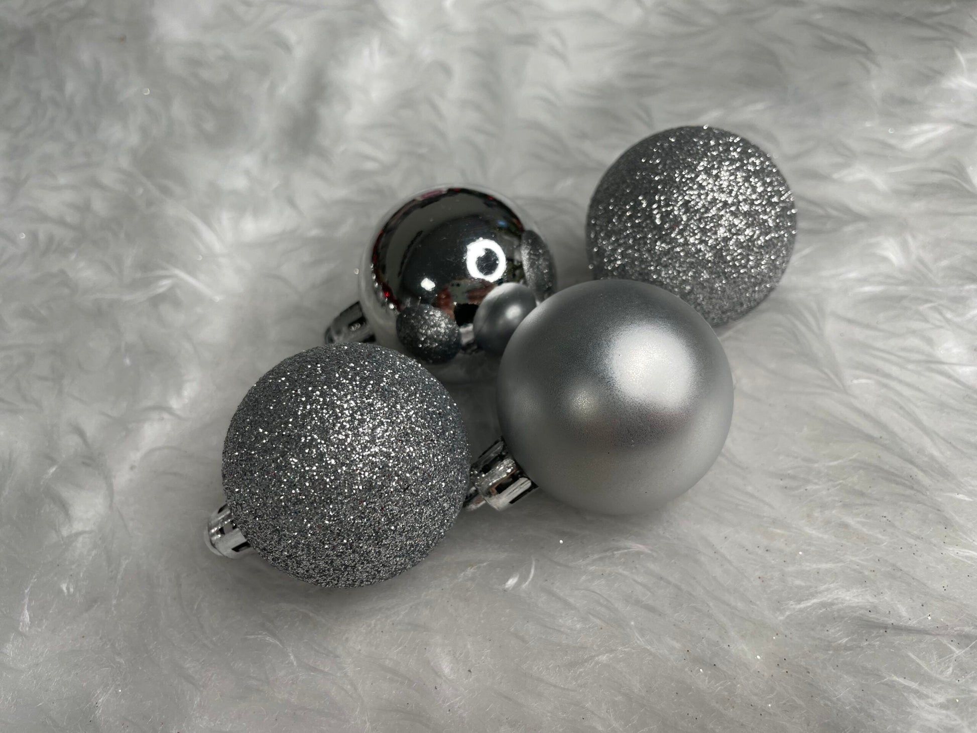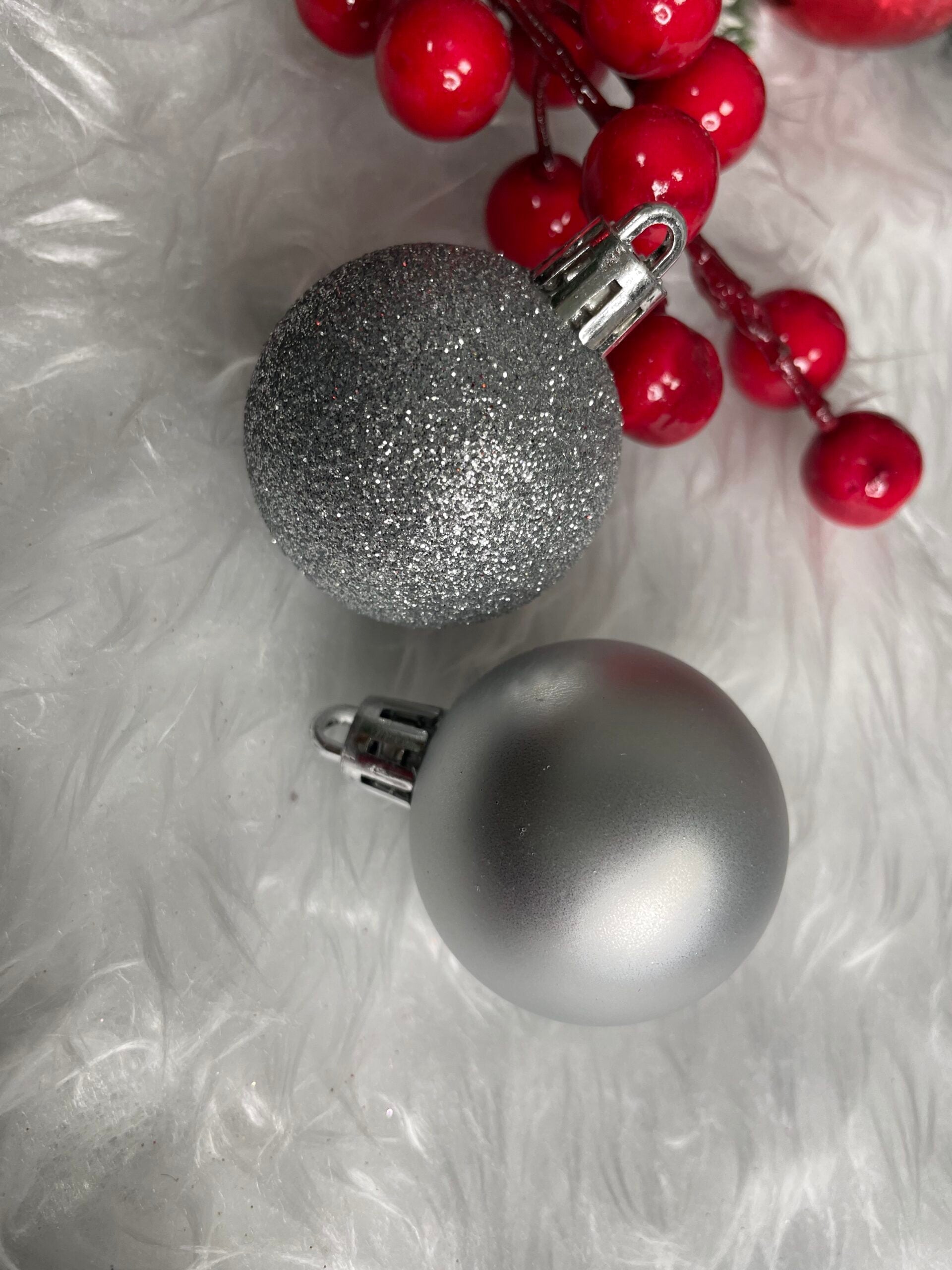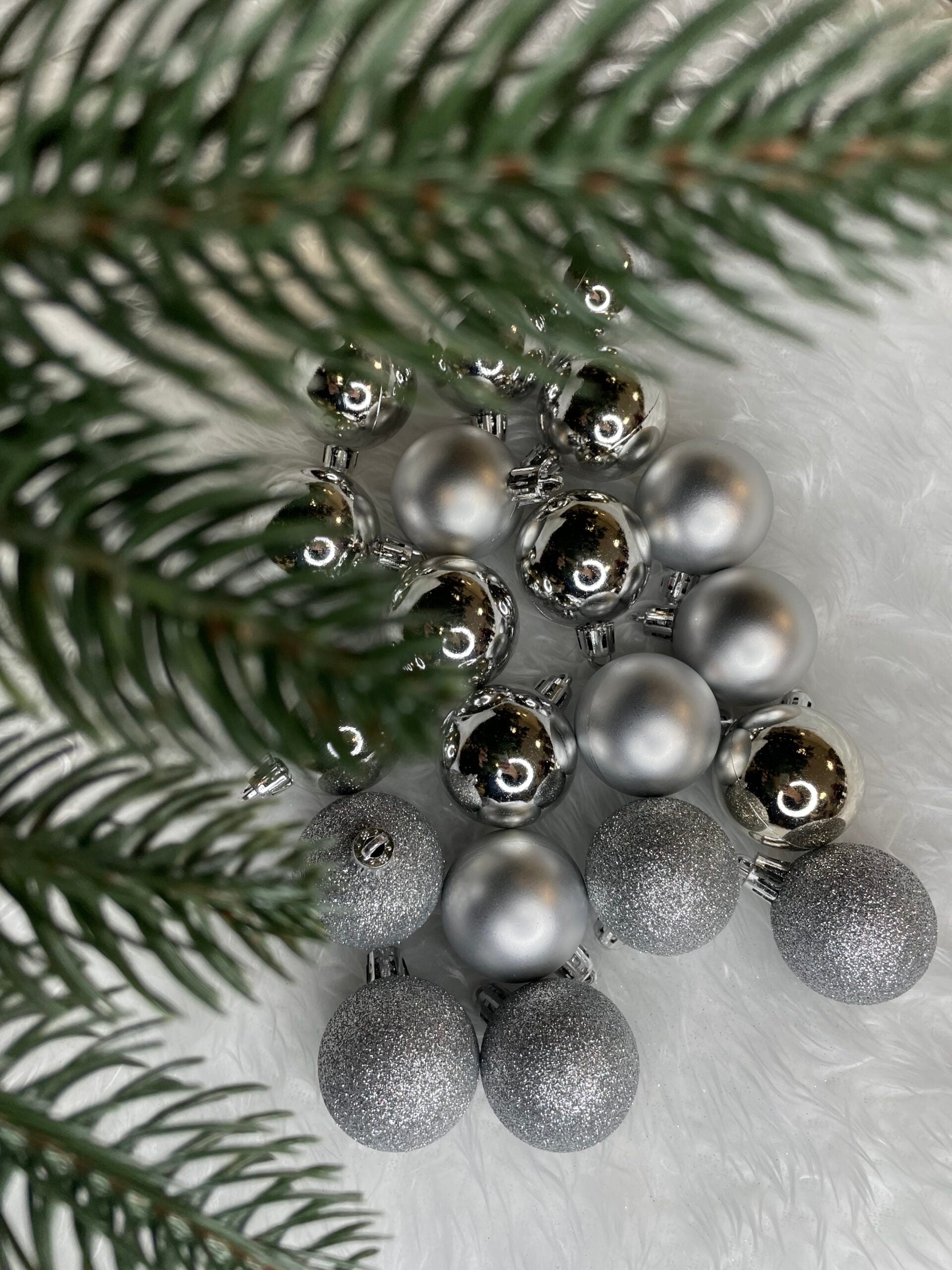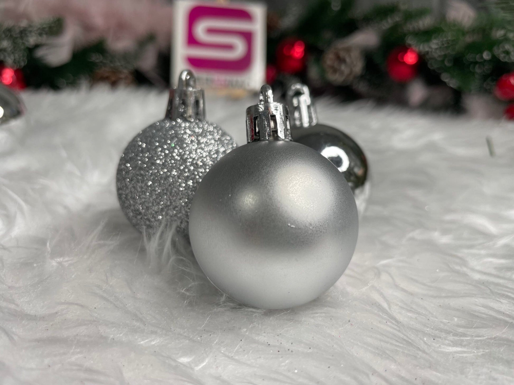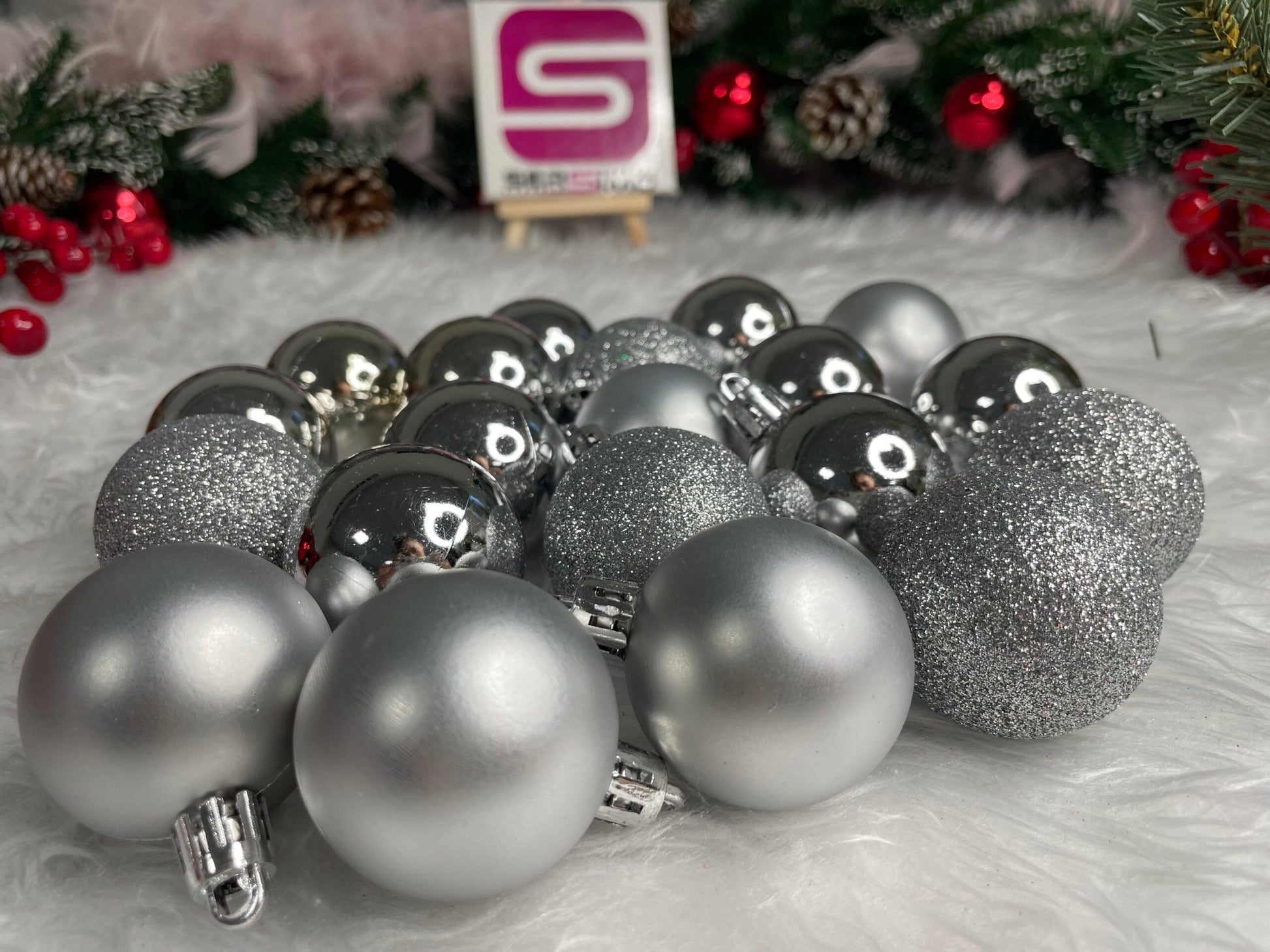 Set globuri de Craciun, 20 bucati, 3 modele, 4cm, argintiu