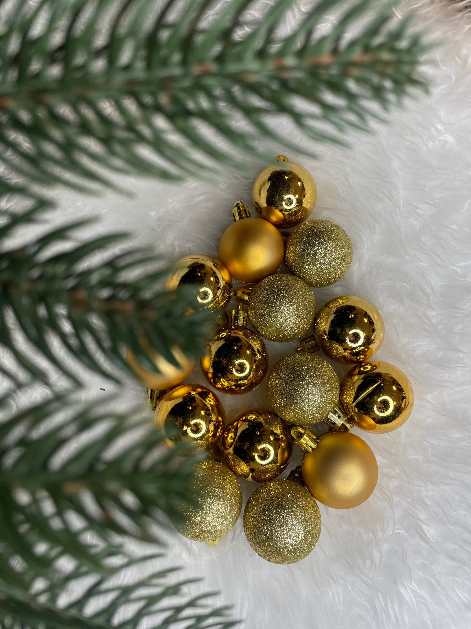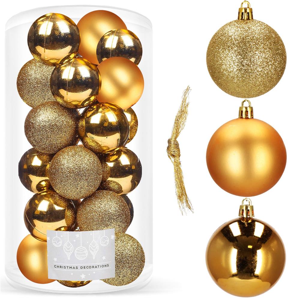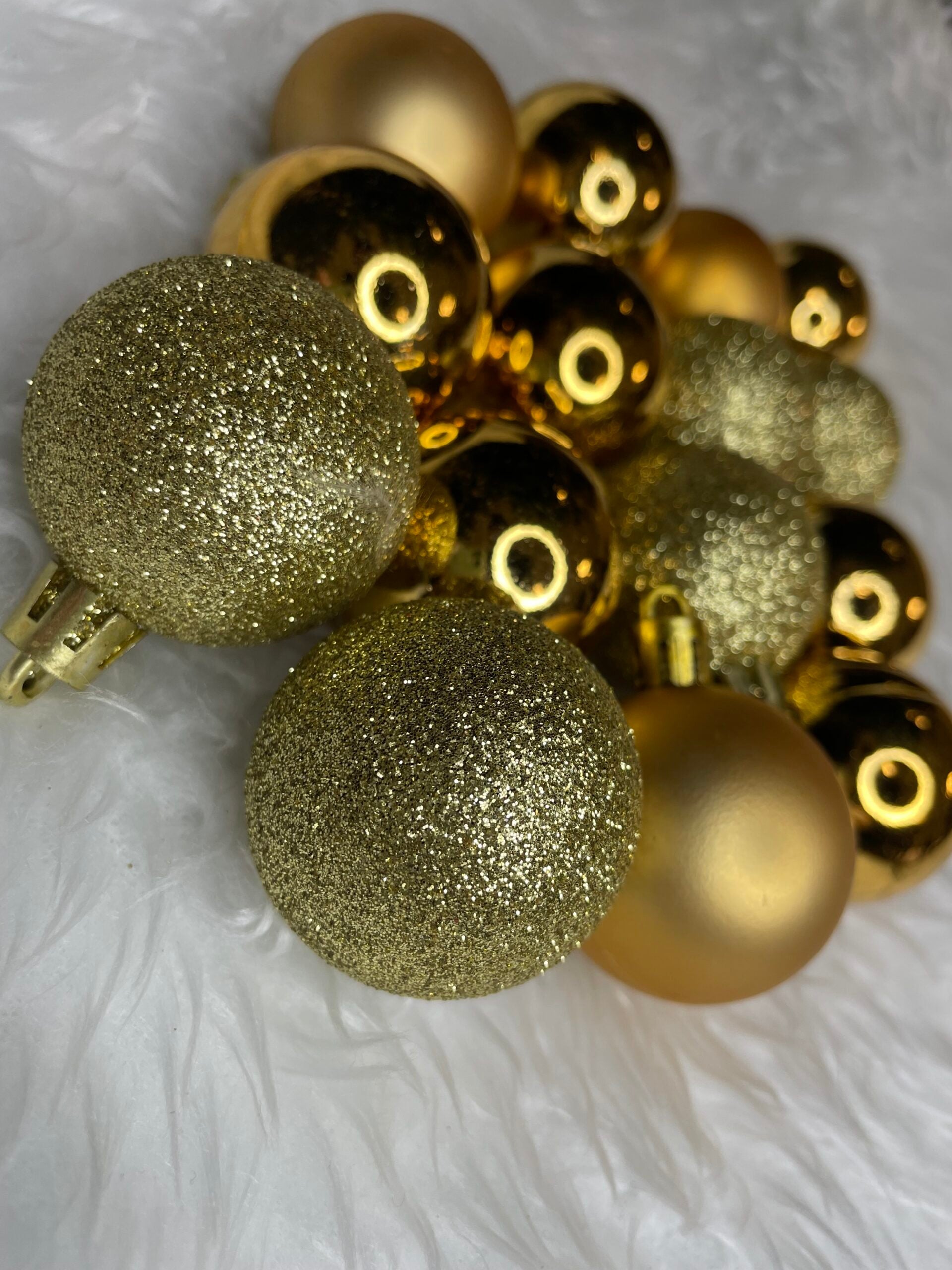 Set globuri de Craciun, 20 bucati, 3 modele, 4cm, auriu
