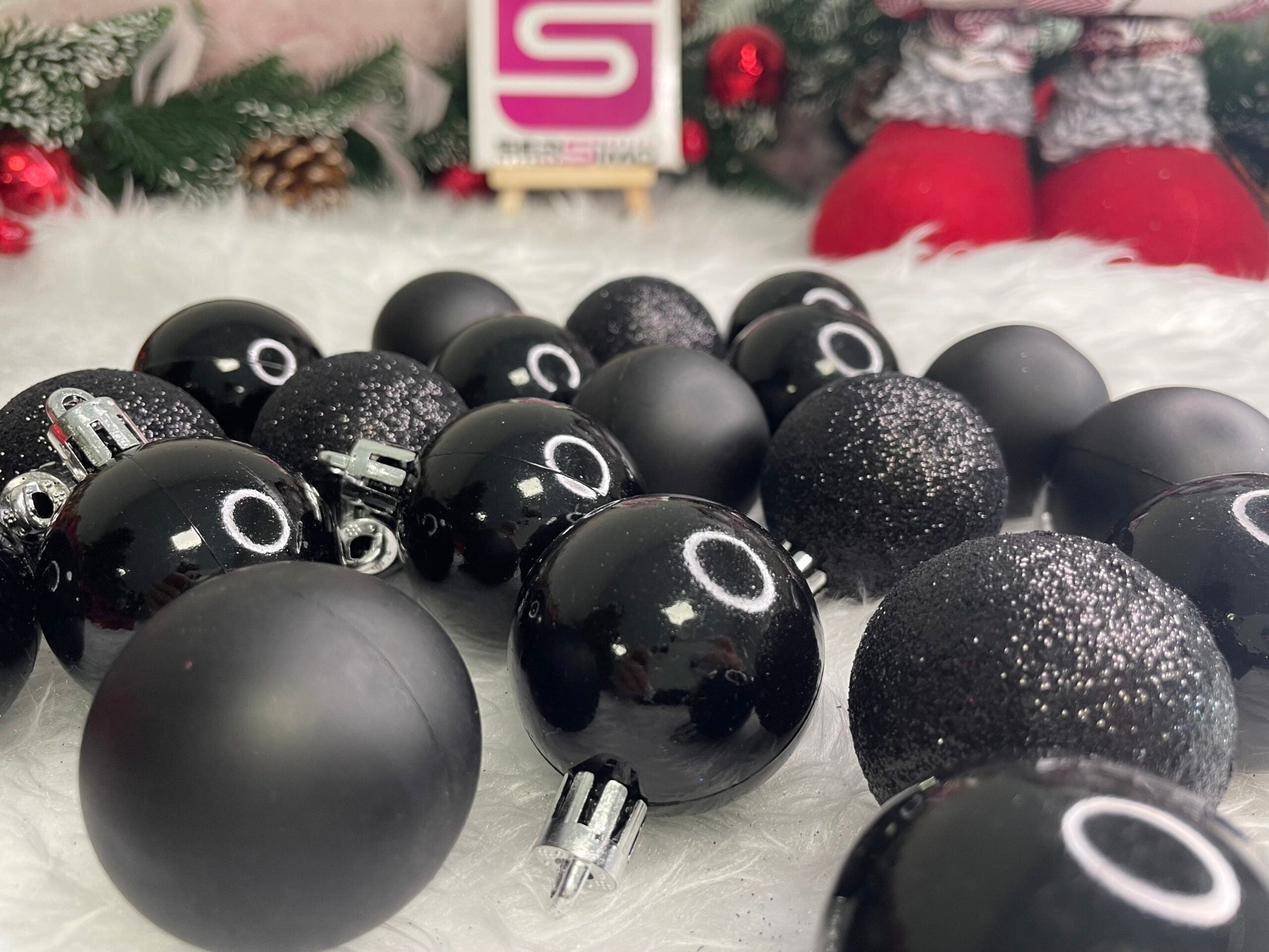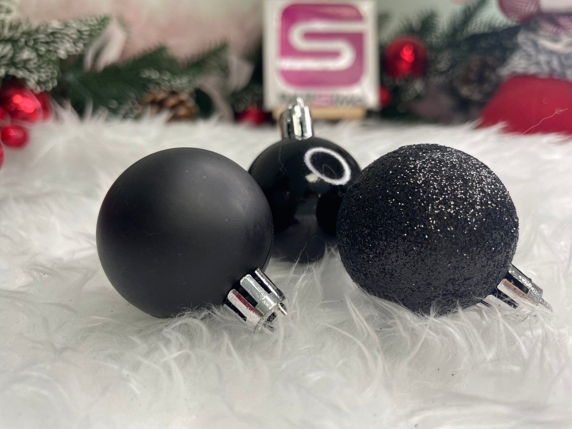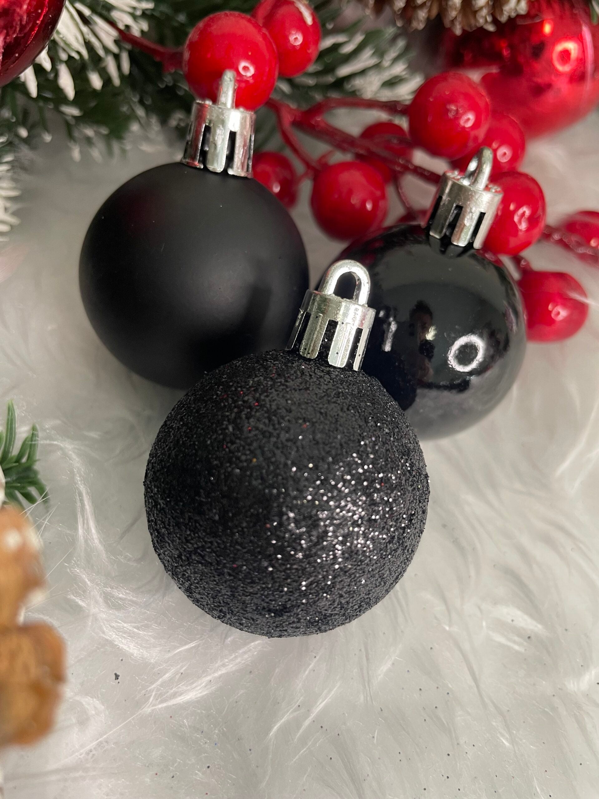 Set globuri de Craciun, 20 bucati, 3 modele, 4cm, negru