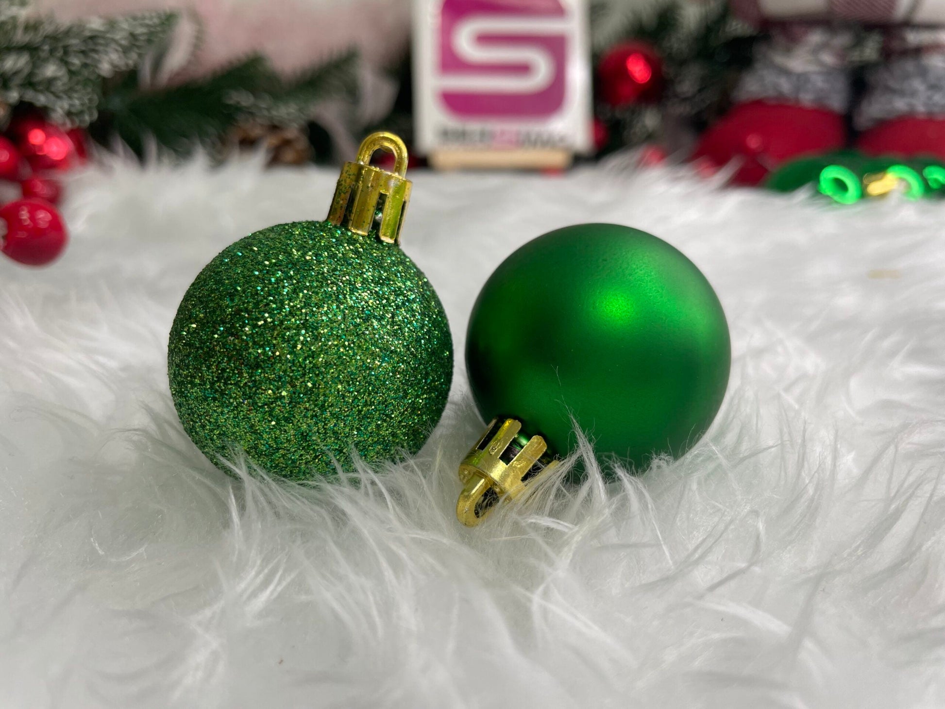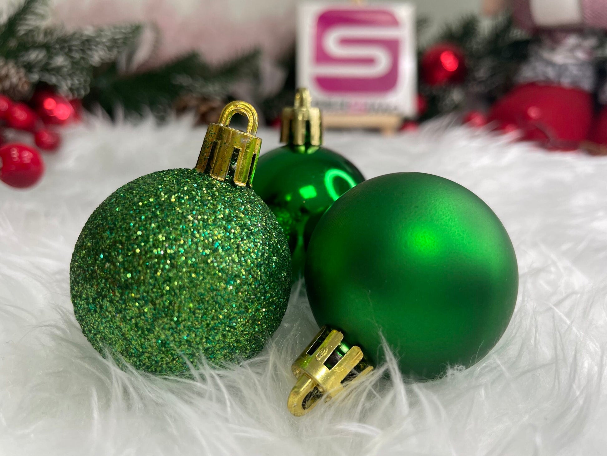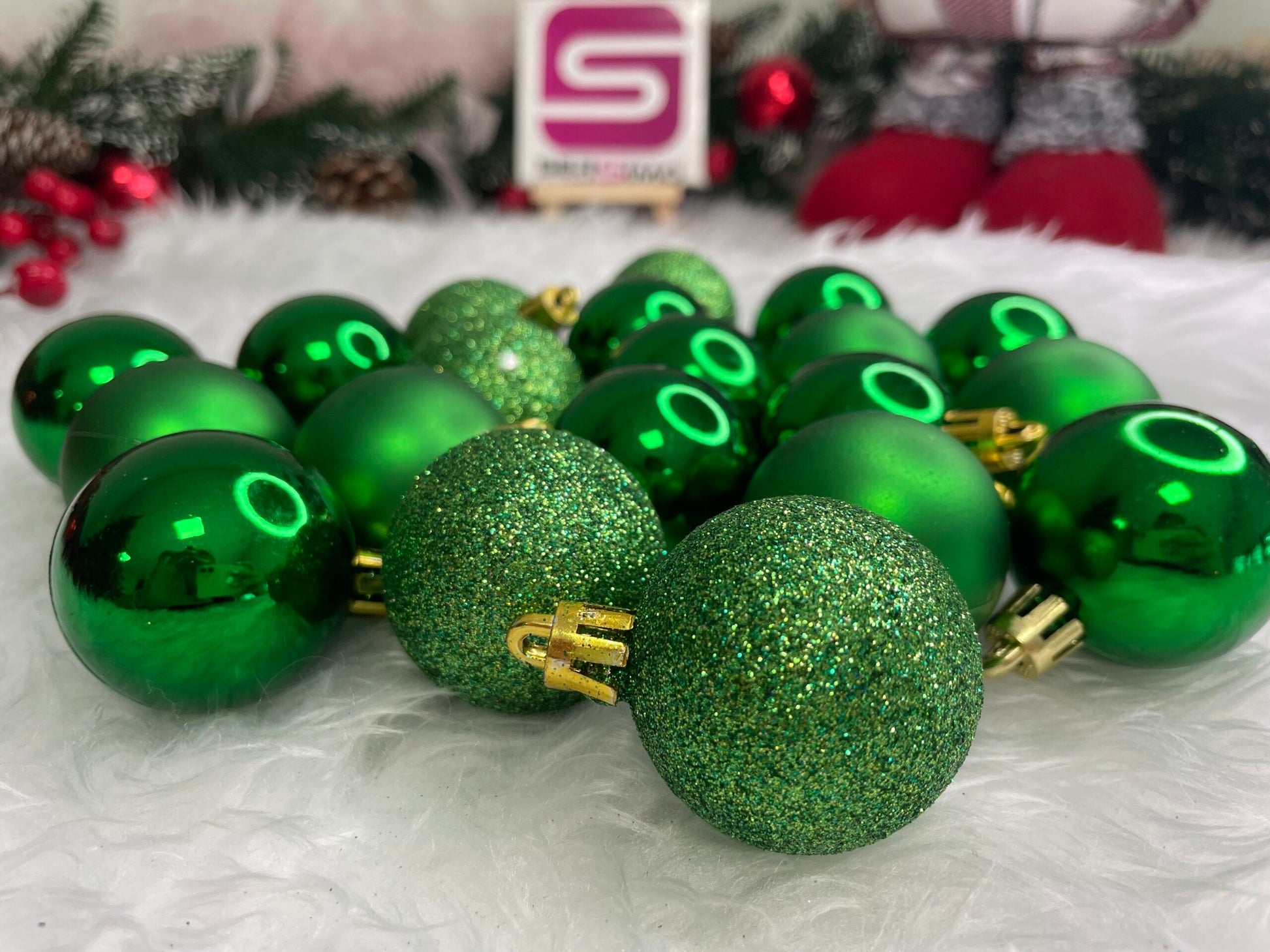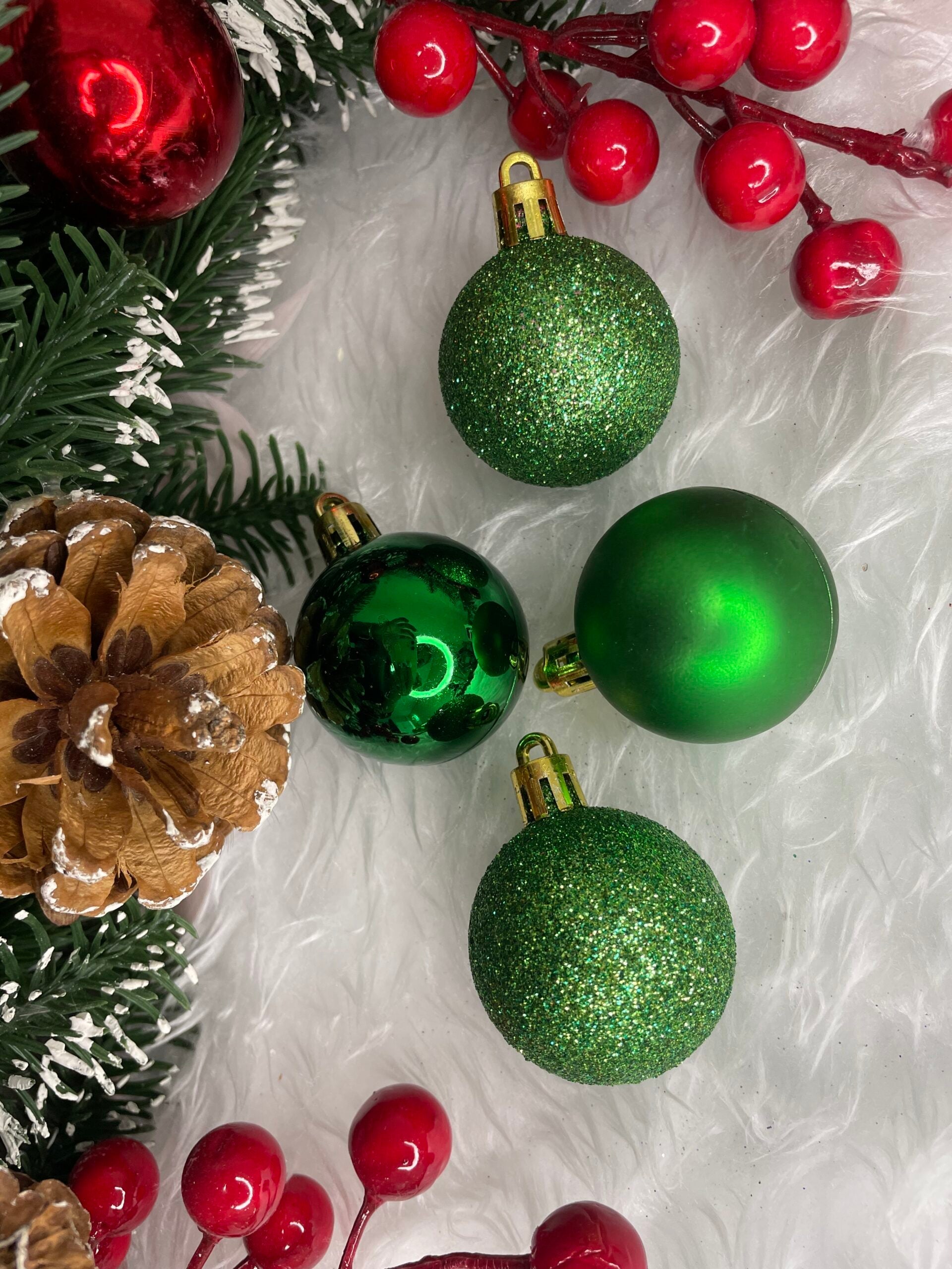 Set globuri de Craciun, 20 bucati, 3 modele, 4cm, verde