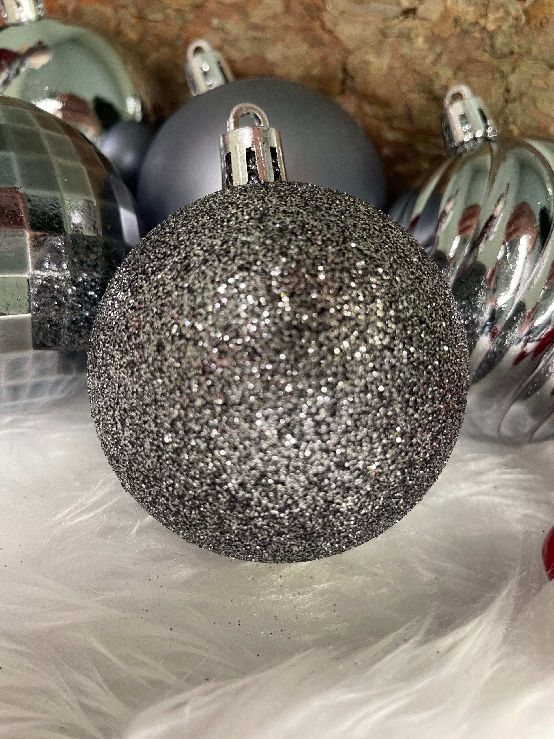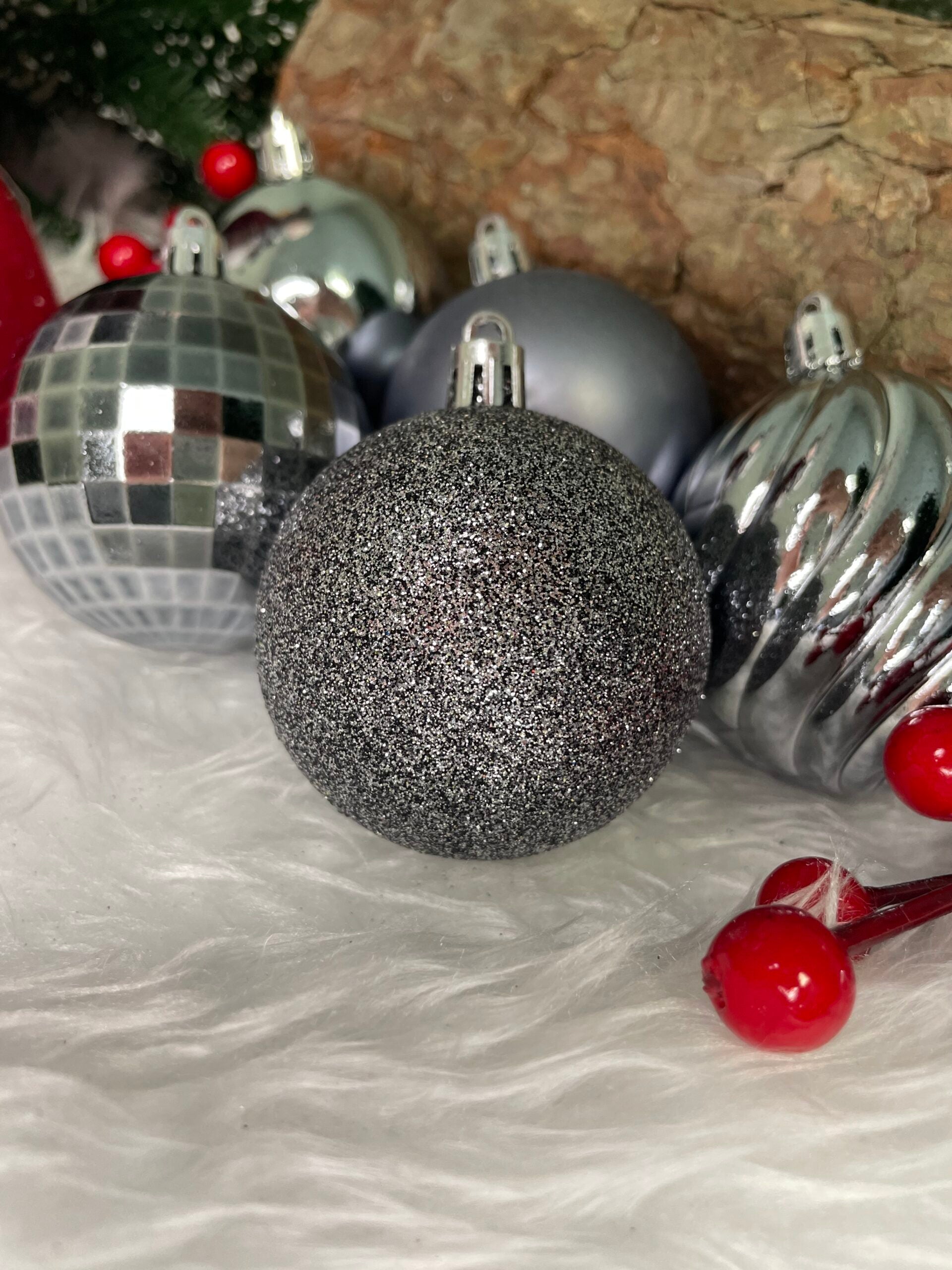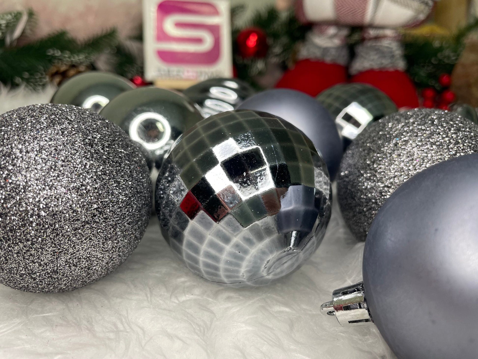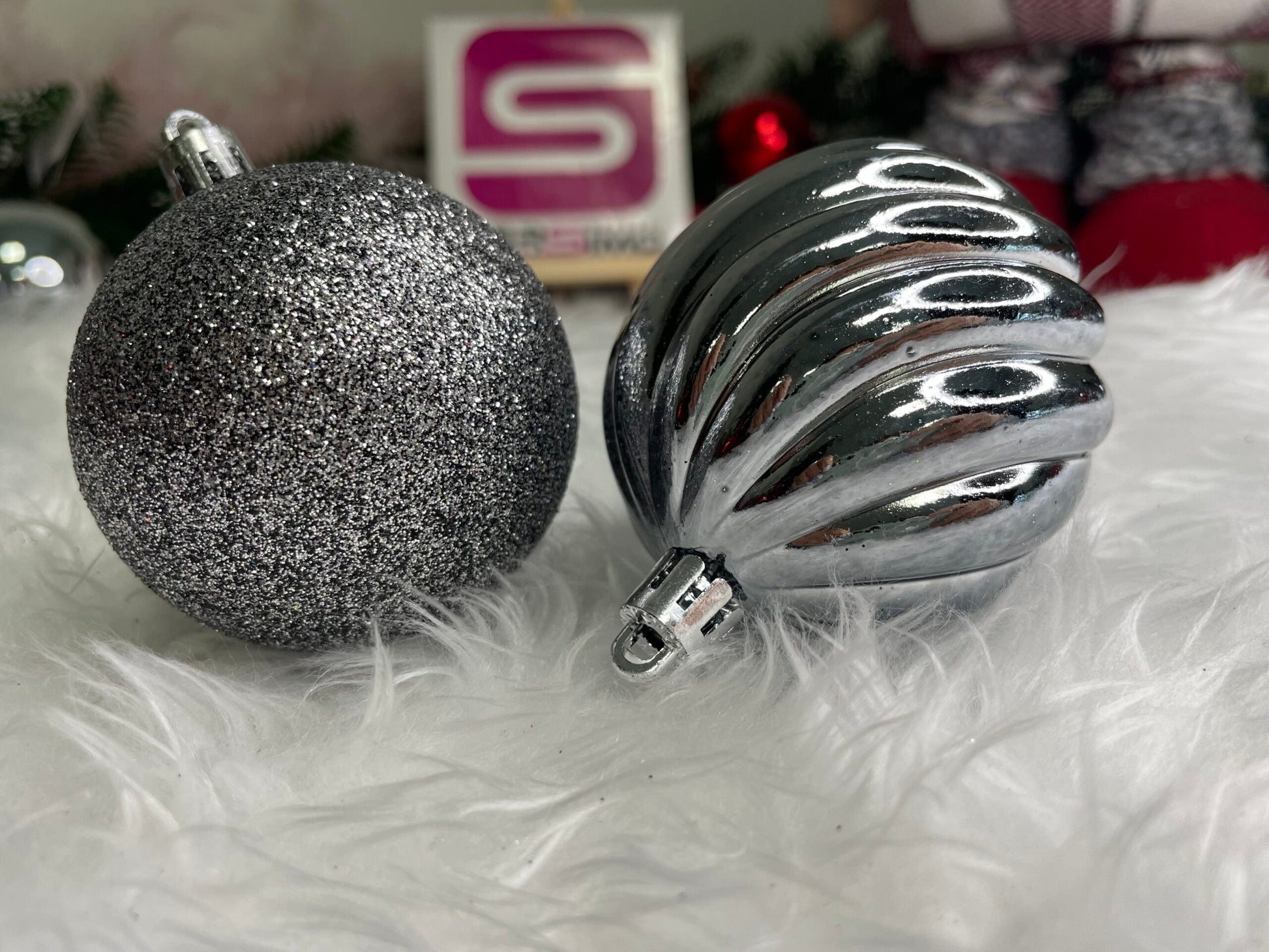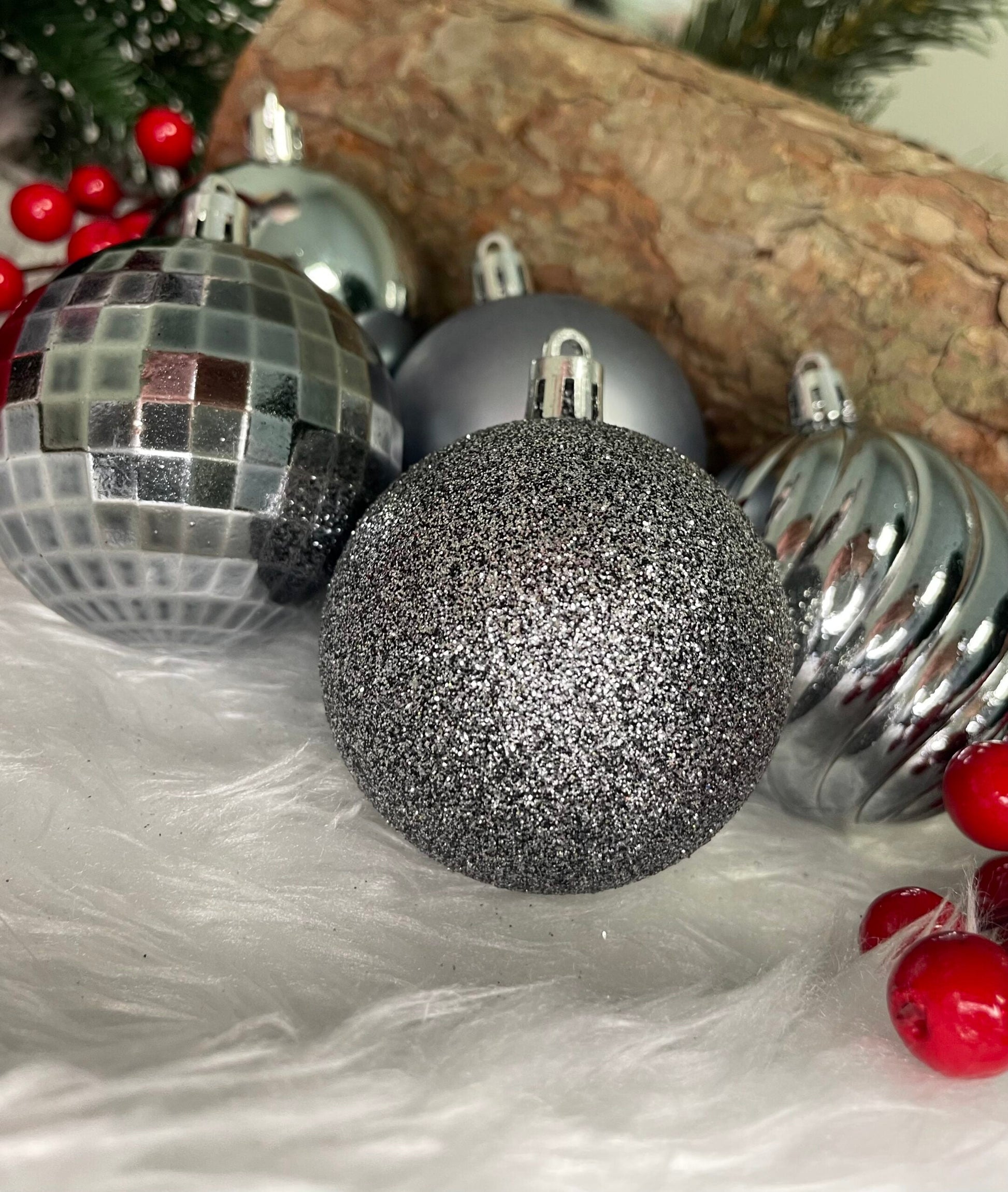 Set globuri de Craciun, 20 bucati, 5 modele, 6cm, argintiu