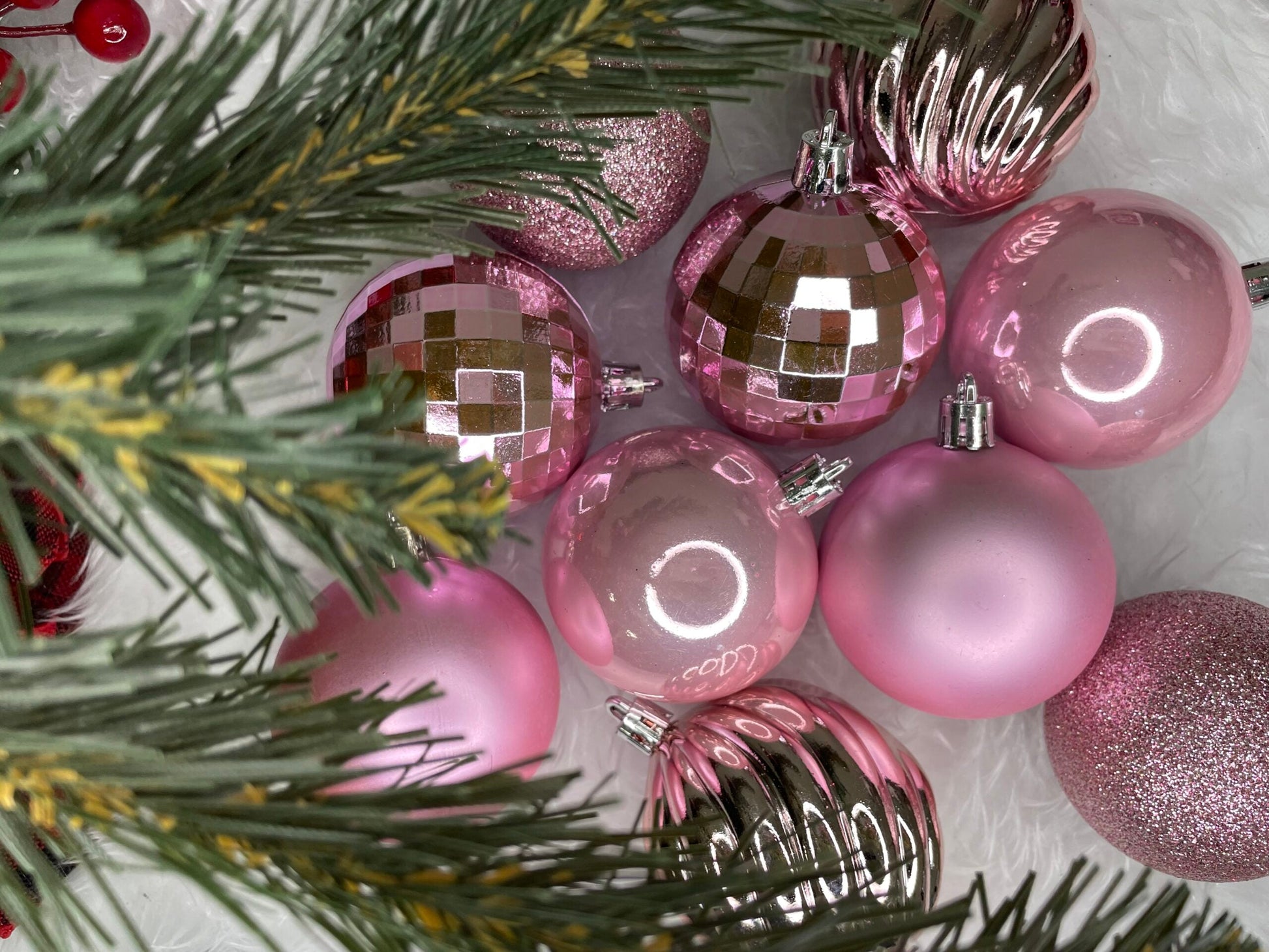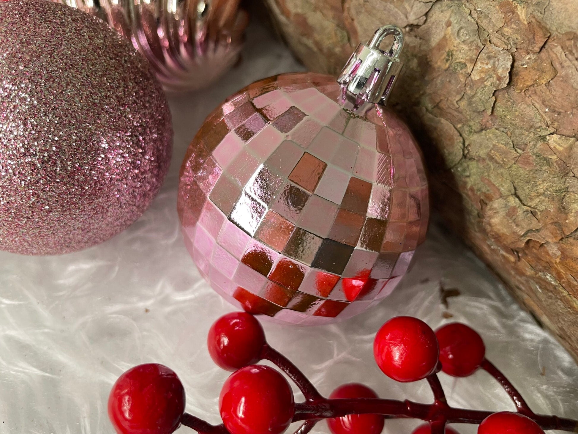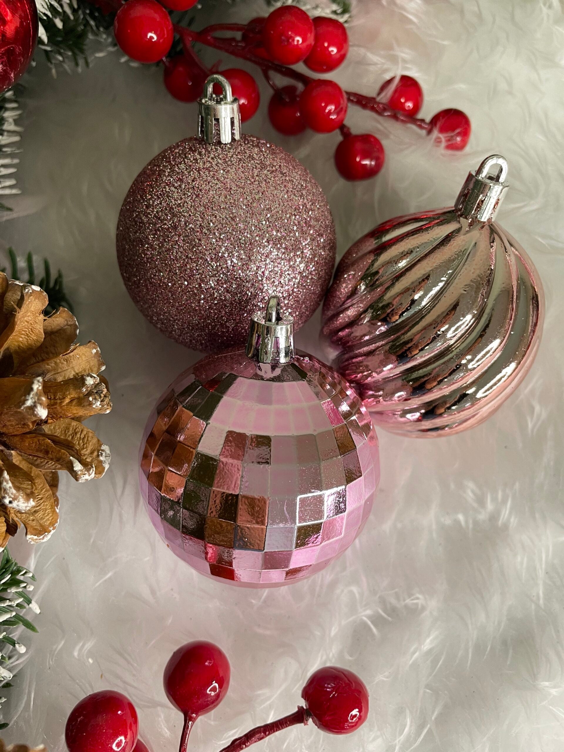 Set globuri de Craciun, 20 bucati, 5 modele, 6cm, roz