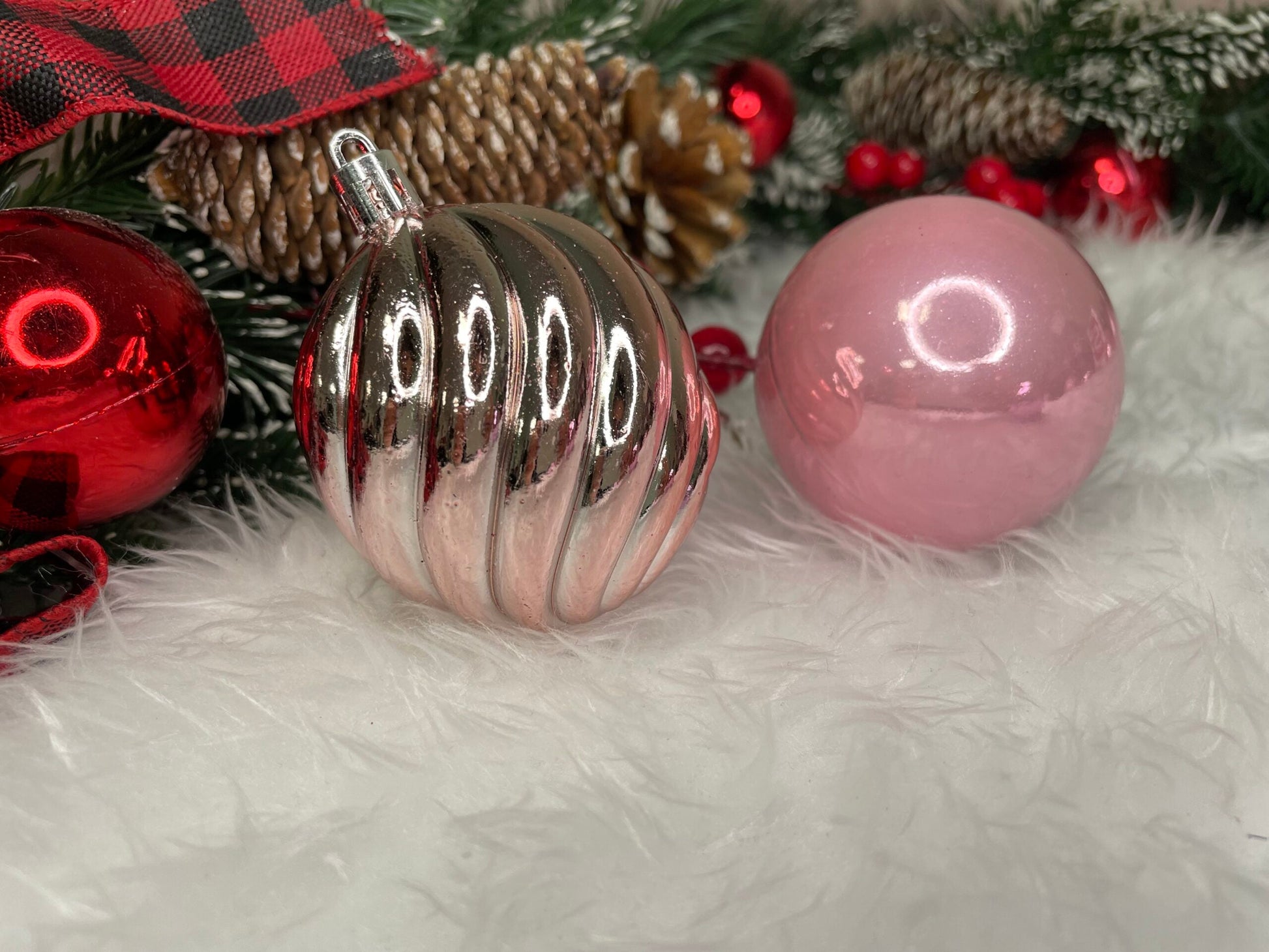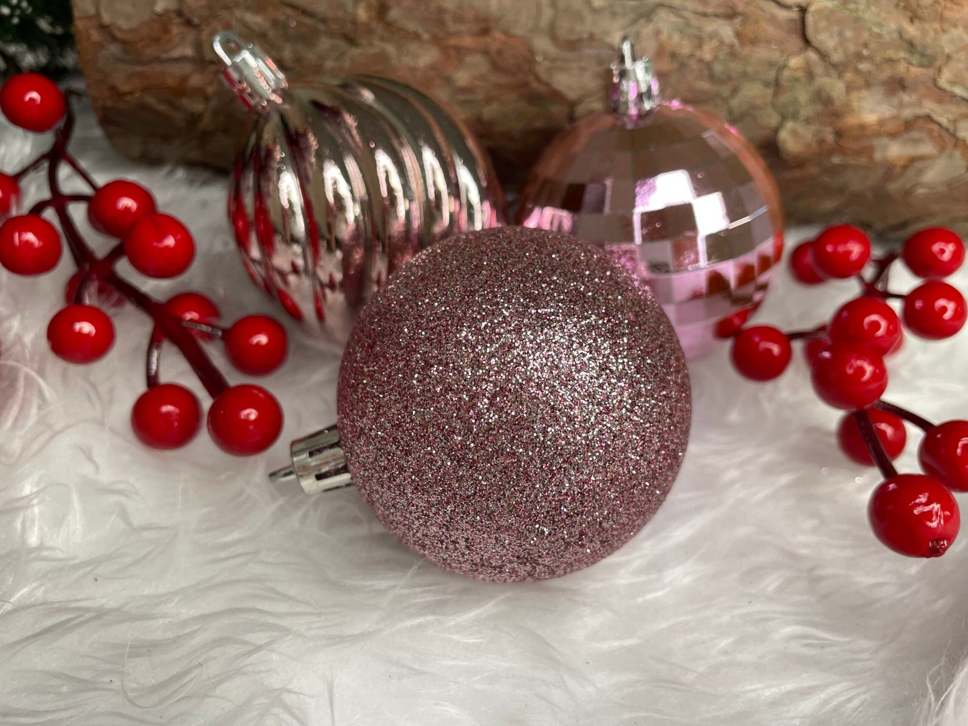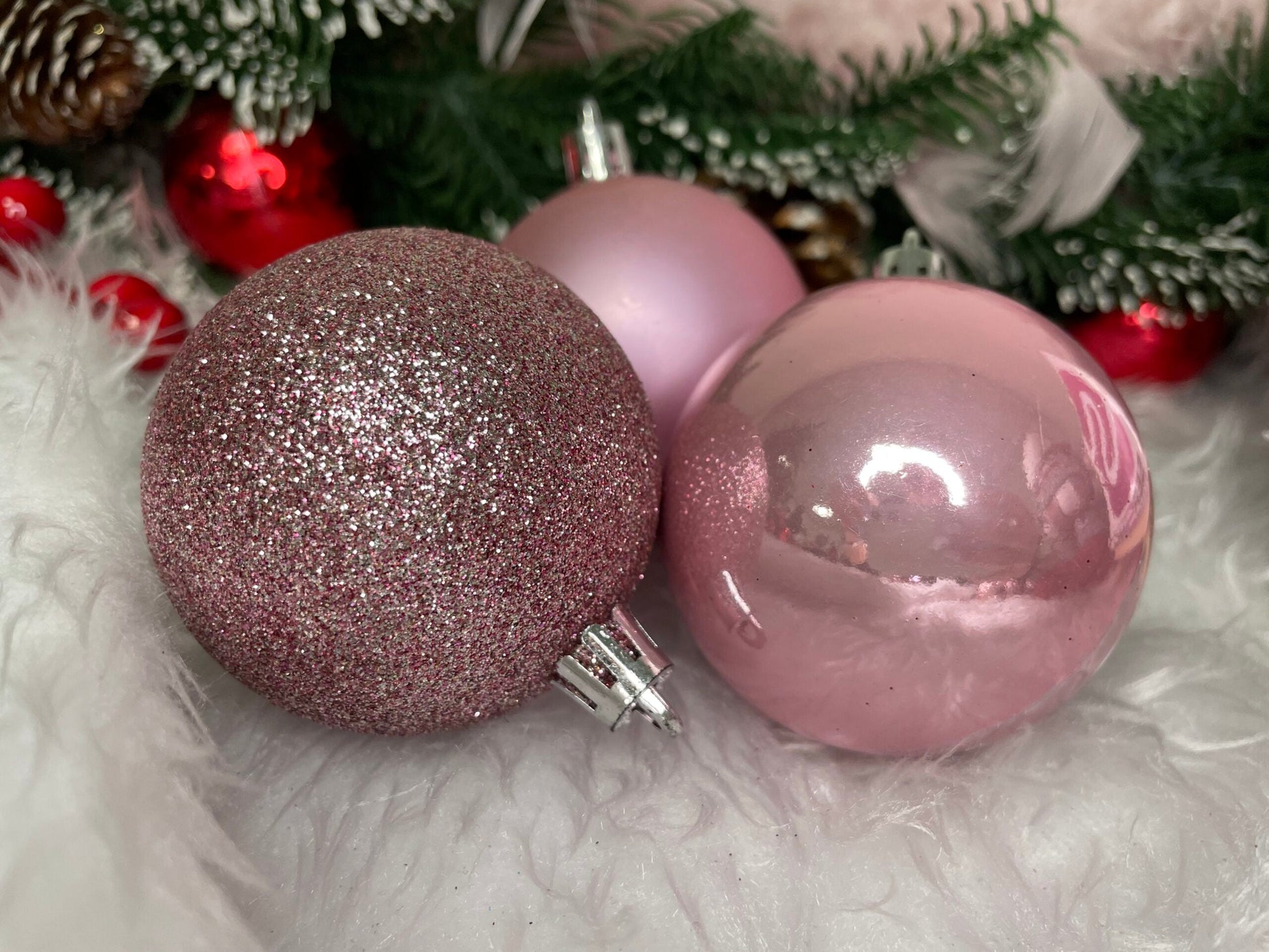Set globuri de Craciun, 20 bucati, 5 modele, 6cm, roz