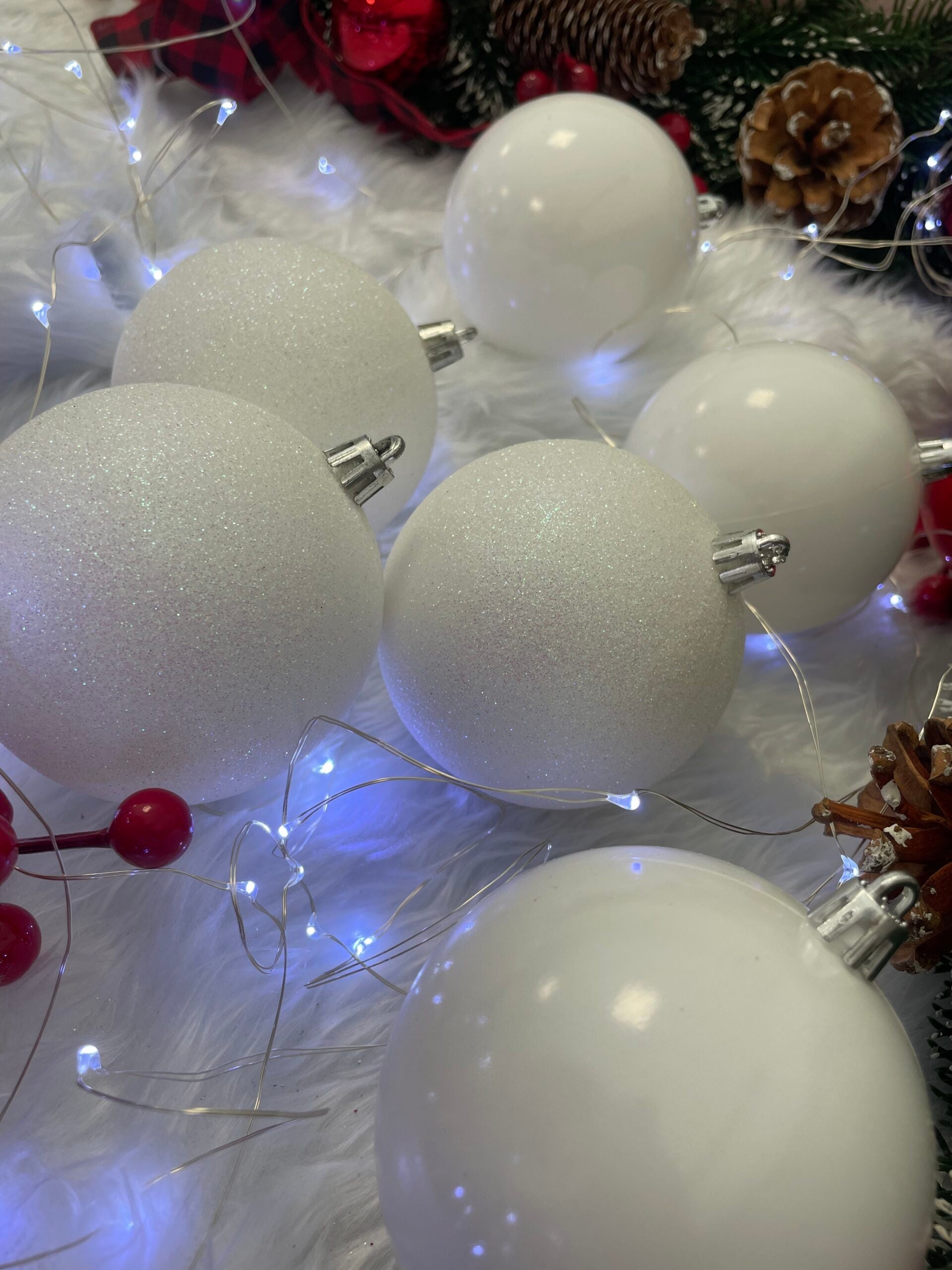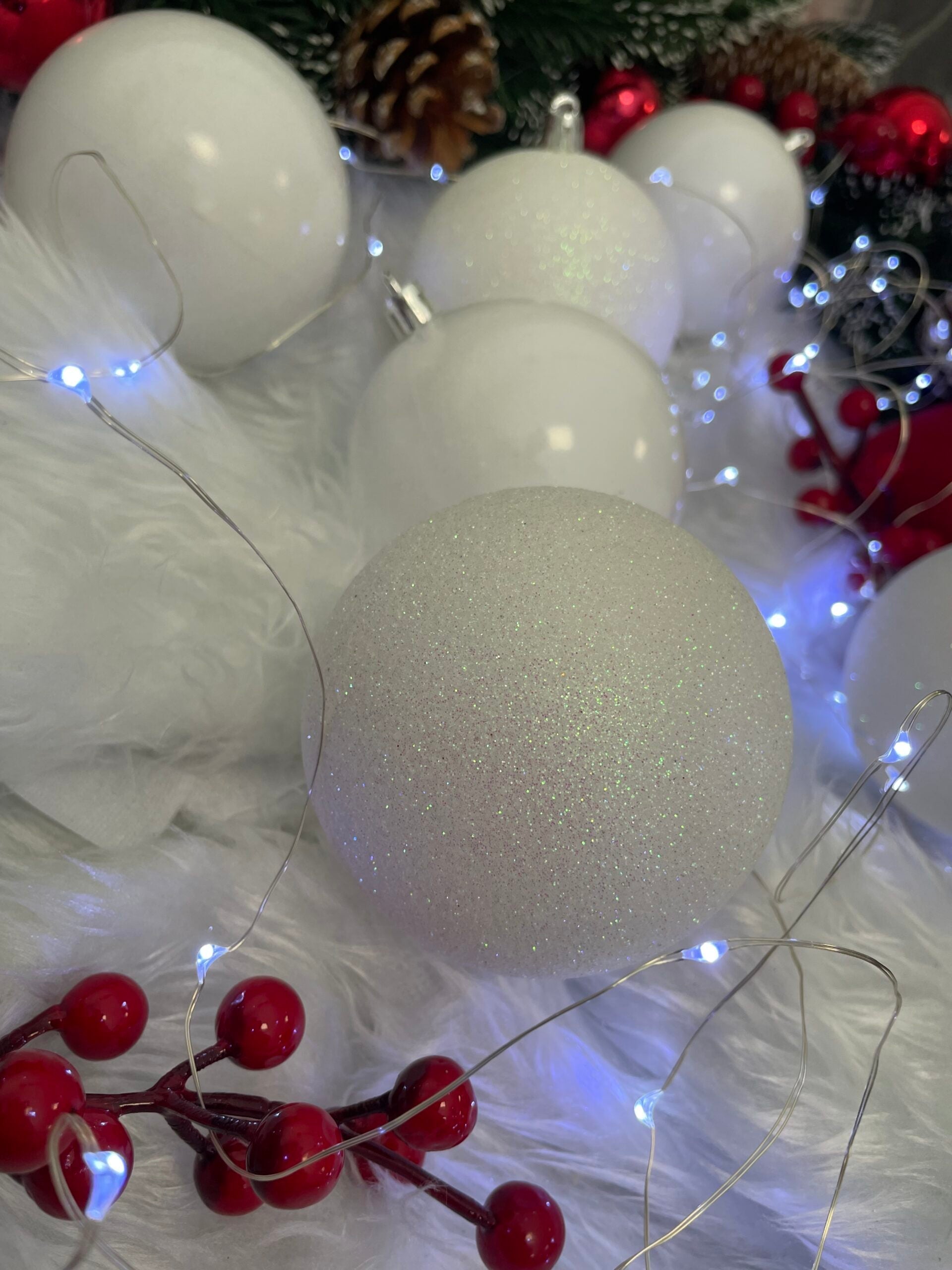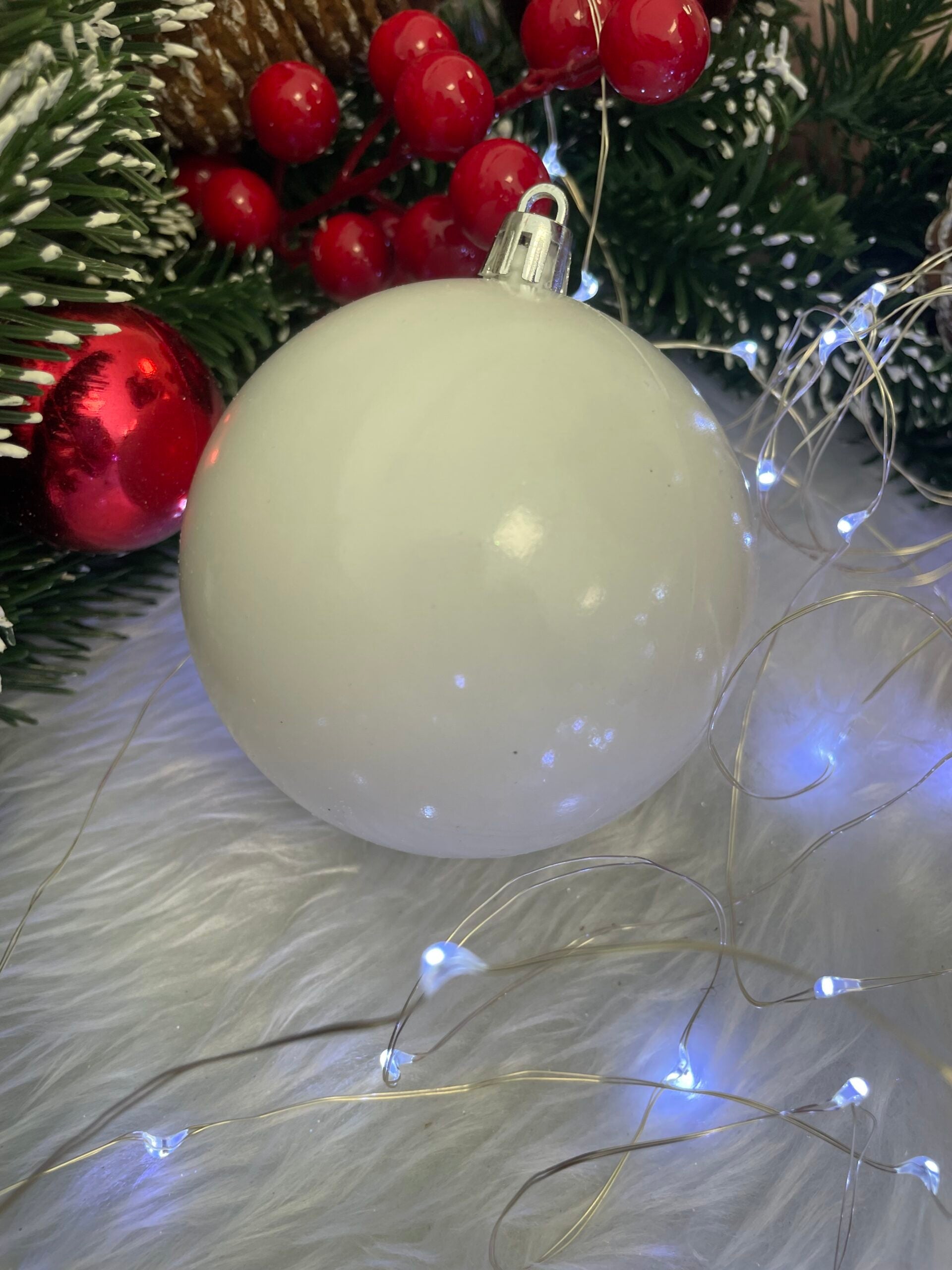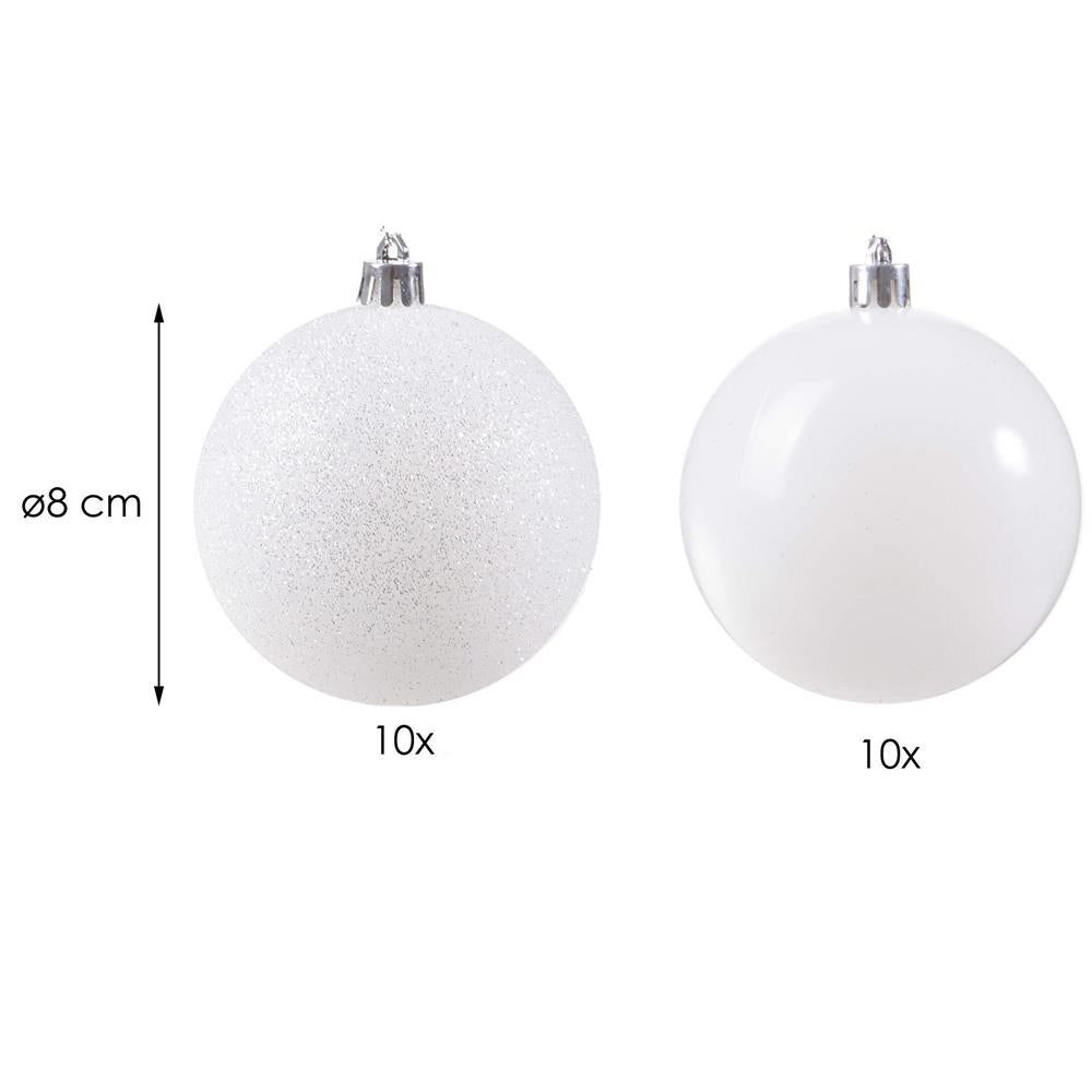 Set globuri de Craciun, 20 bucati, 8cm, alb perlat