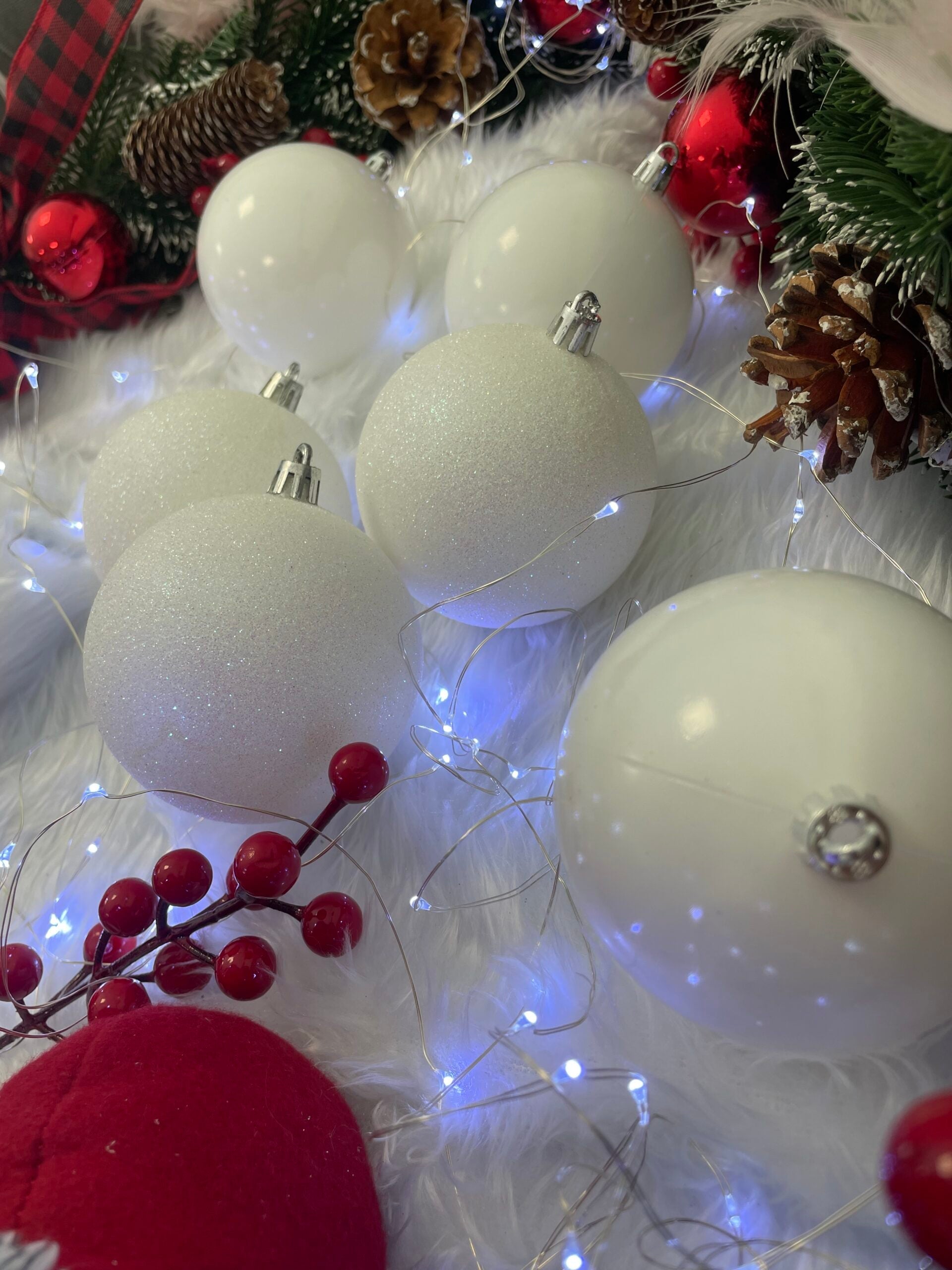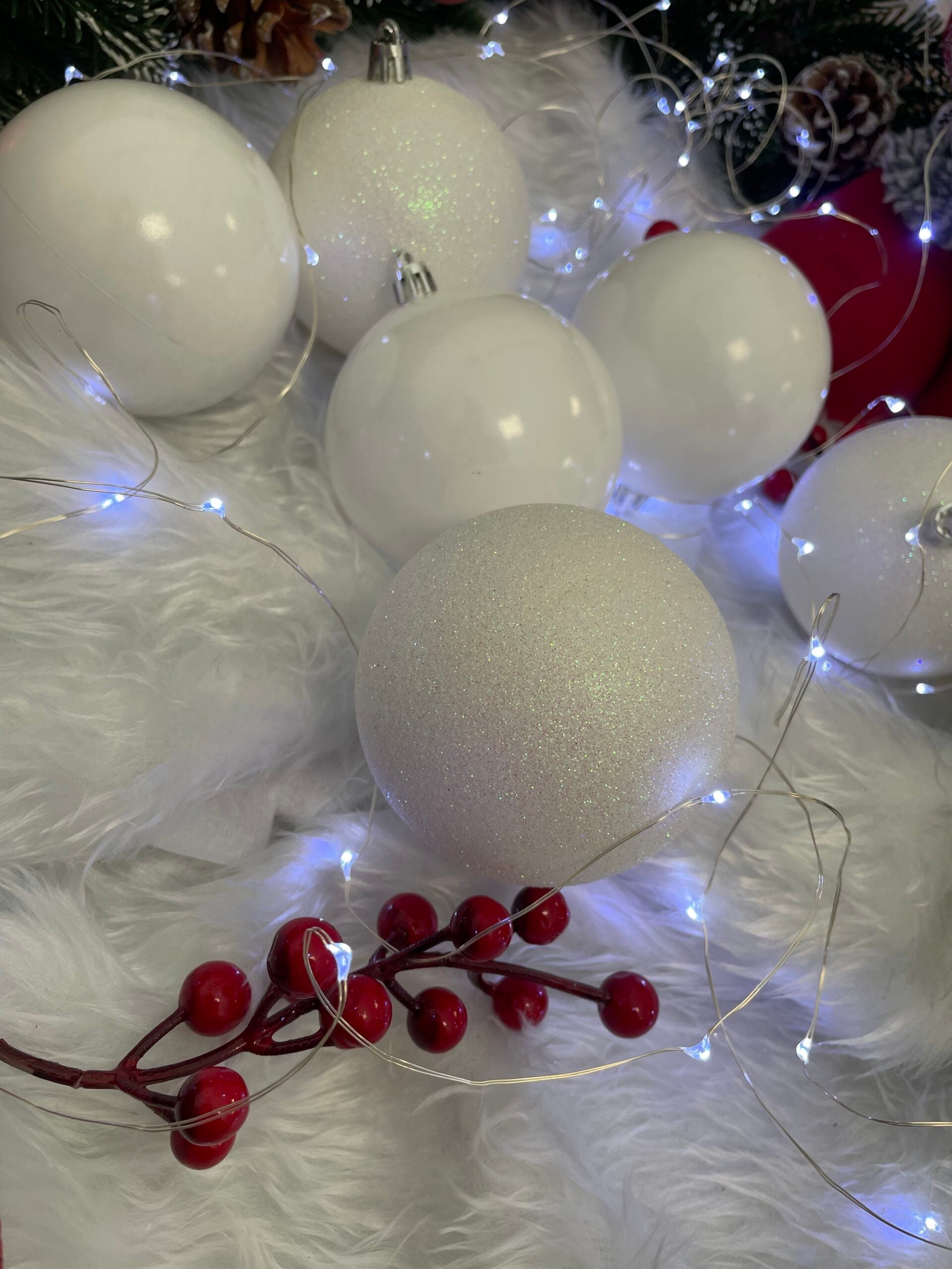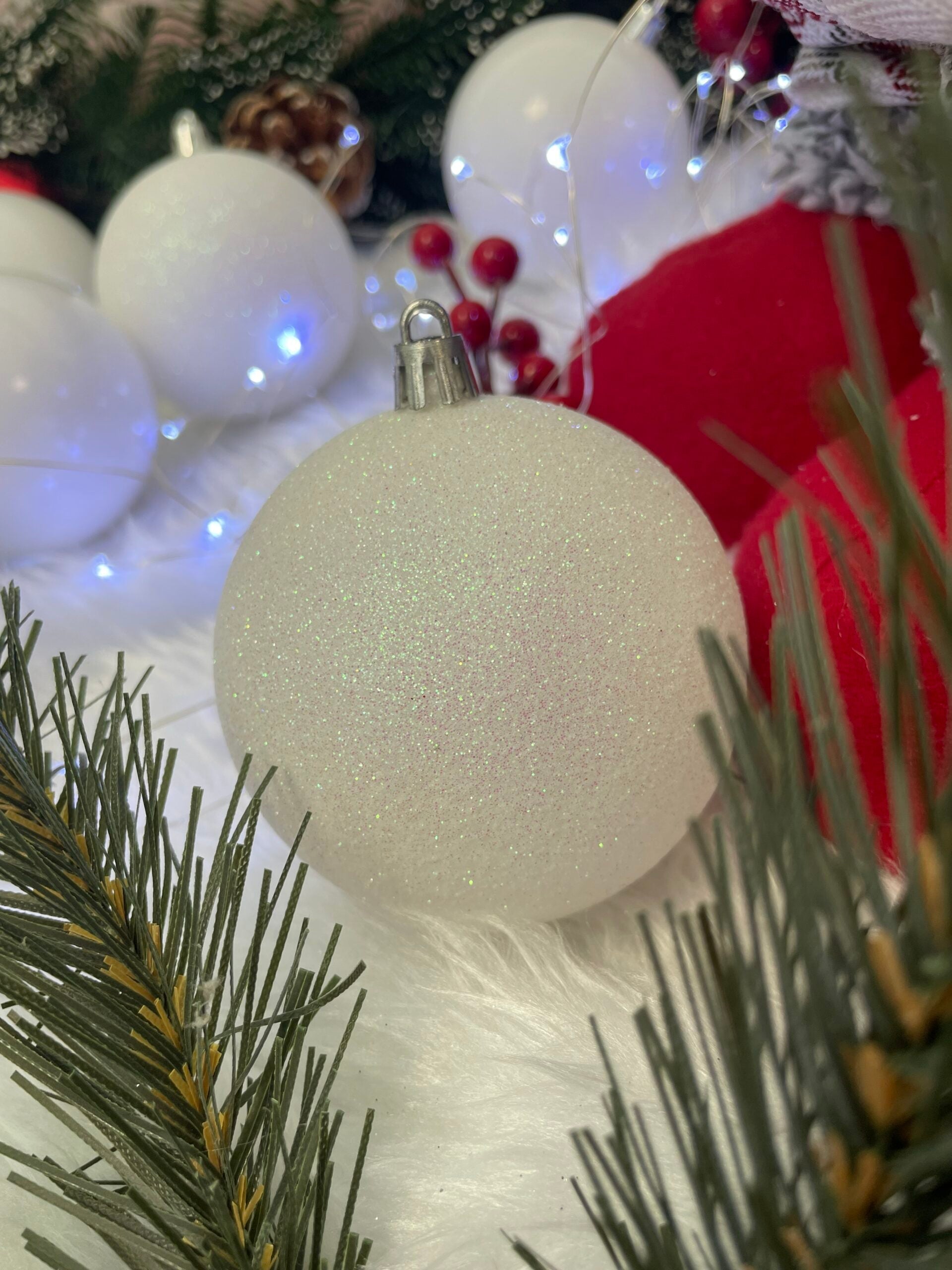 Set globuri de Craciun, 20 bucati, 8cm, alb perlat