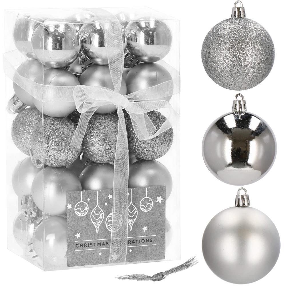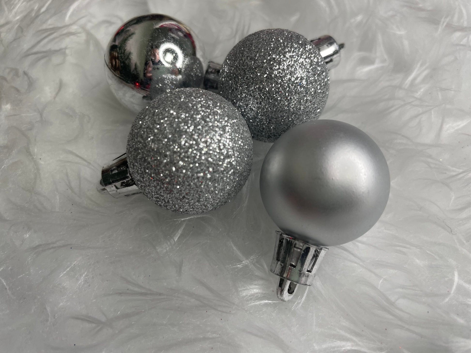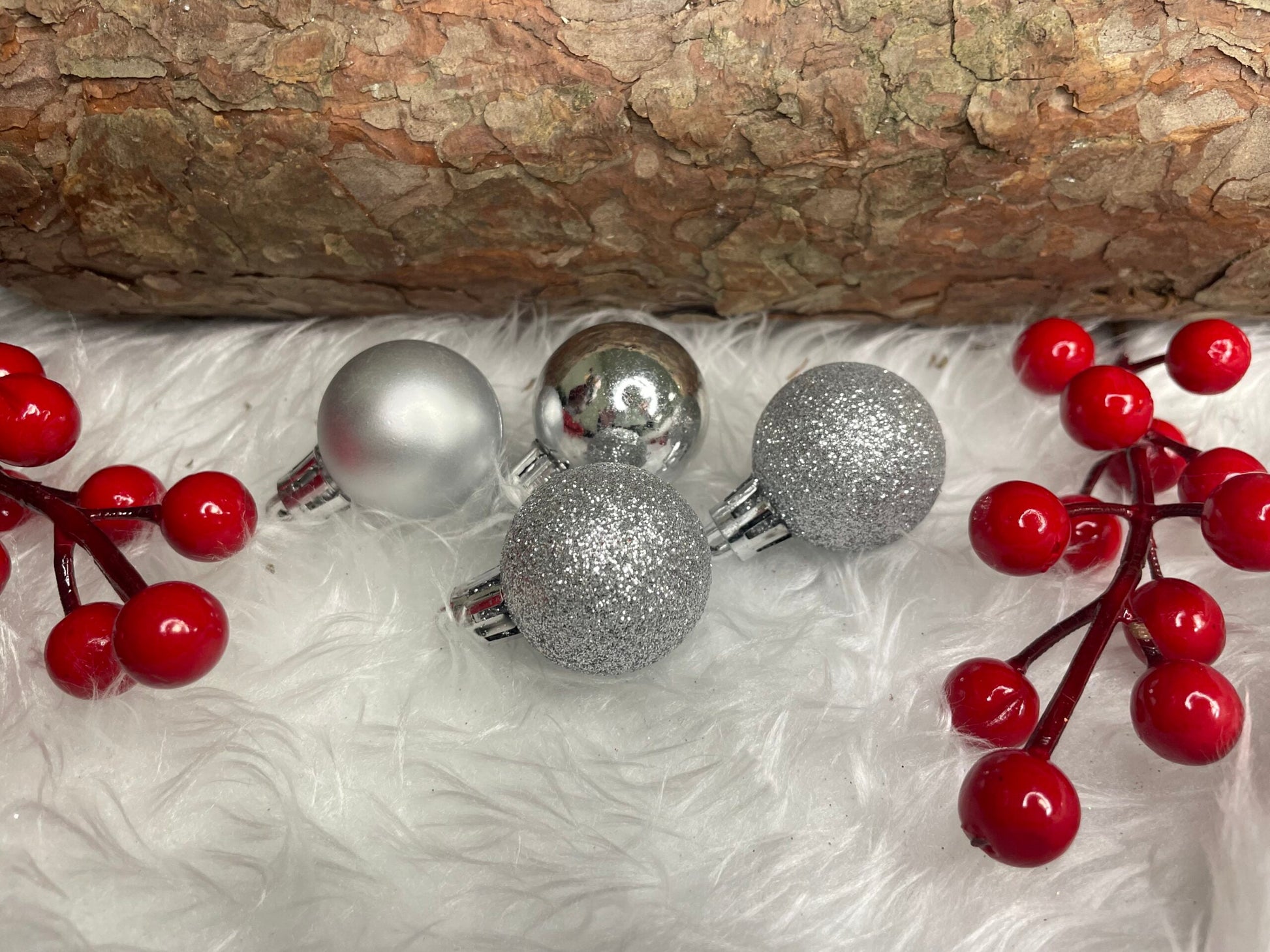 Set globuri de Craciun, 30 bucati, 3 modele, 3cm, argintiu