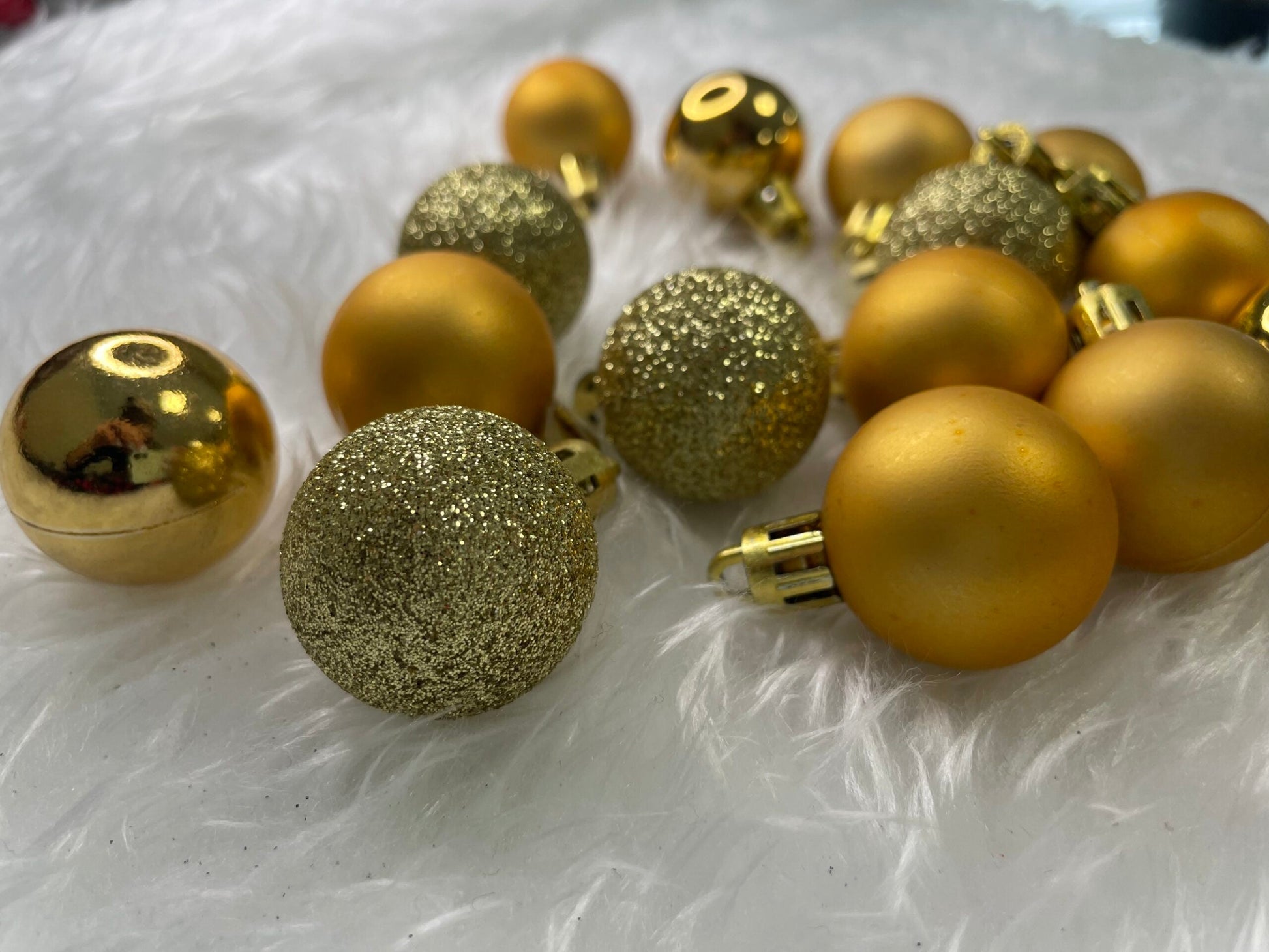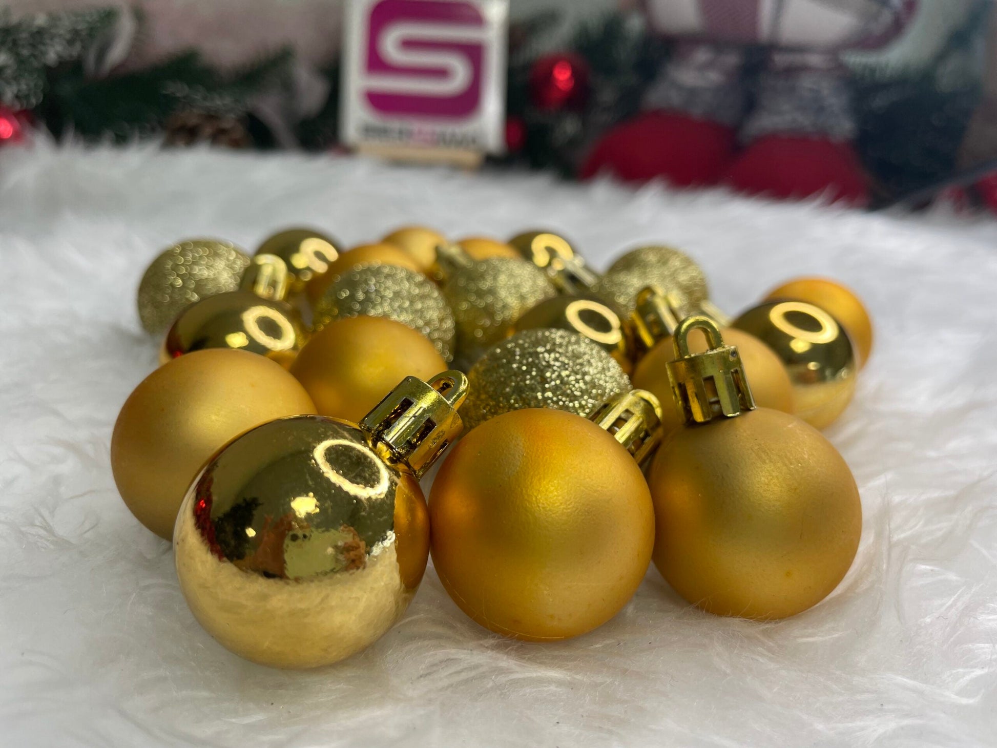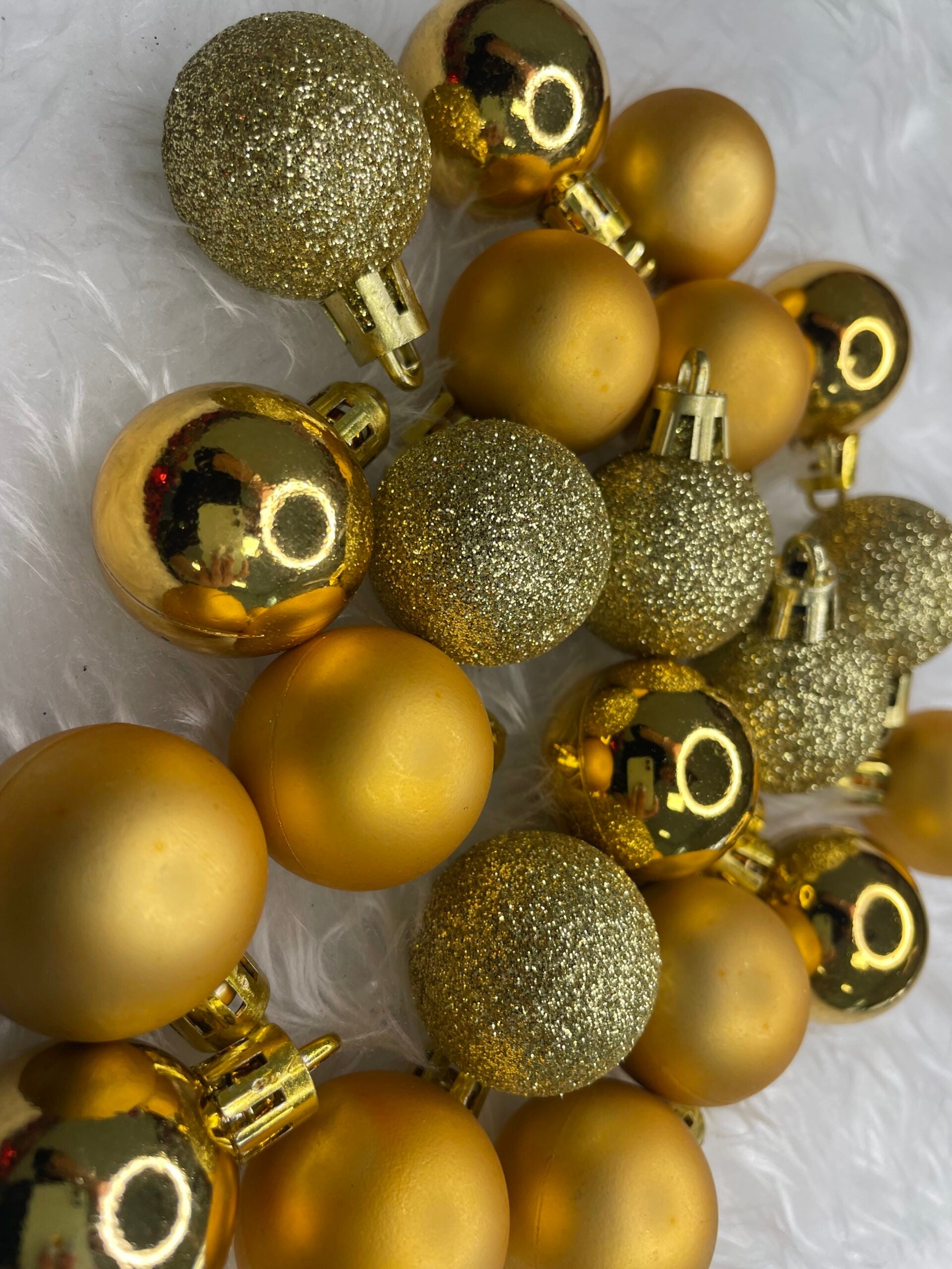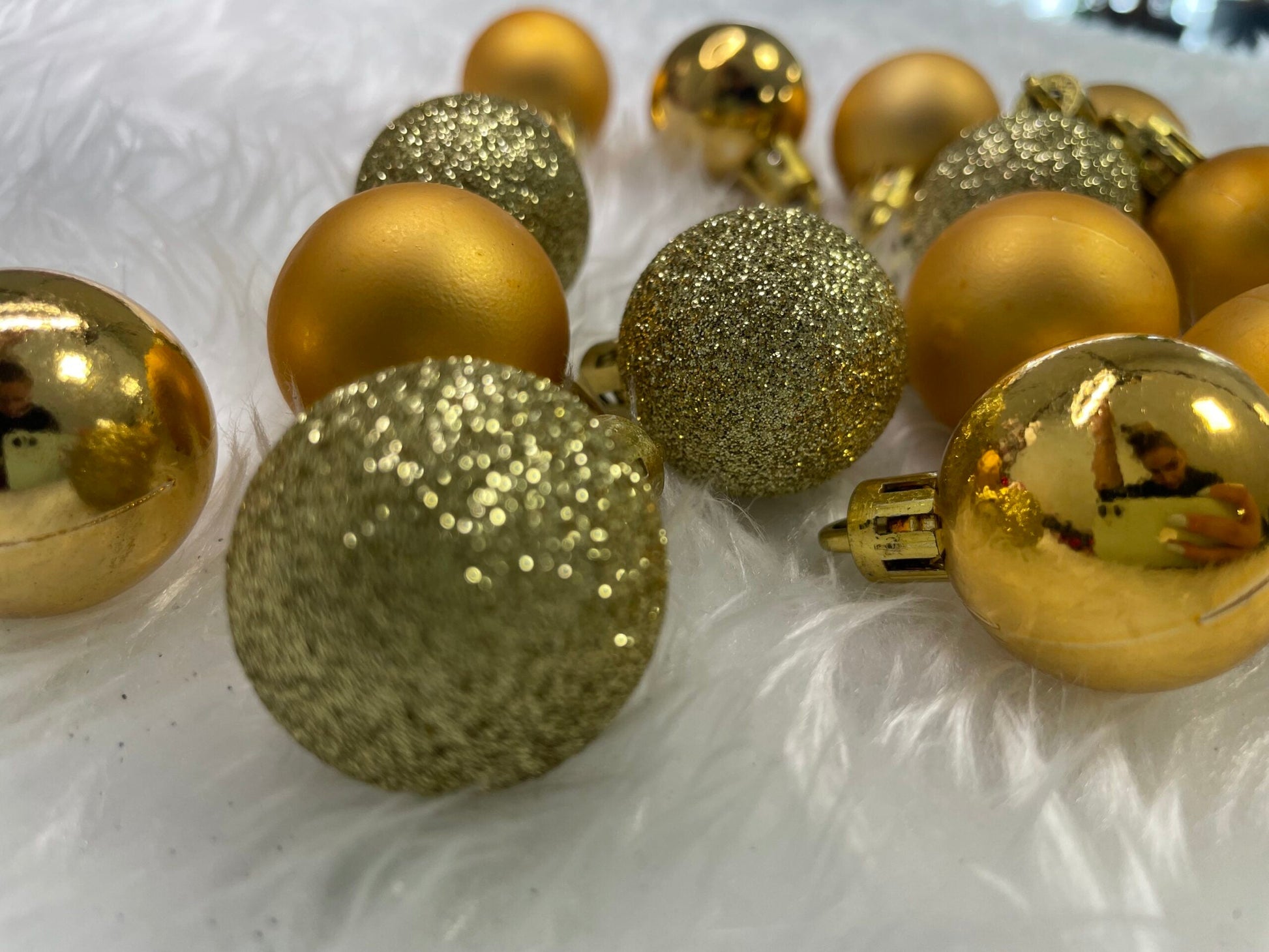 Set globuri de Craciun, 30 bucati, 3 modele, 3cm, auriu