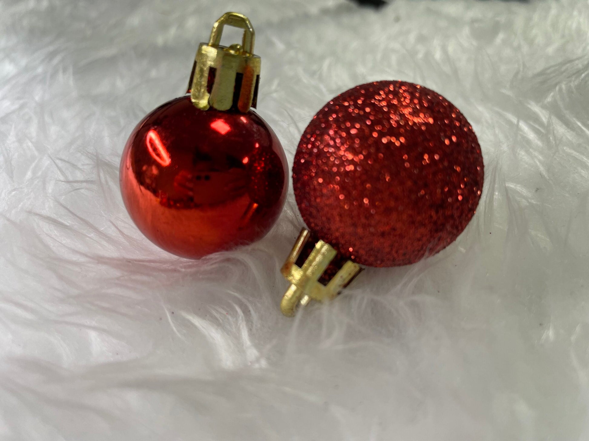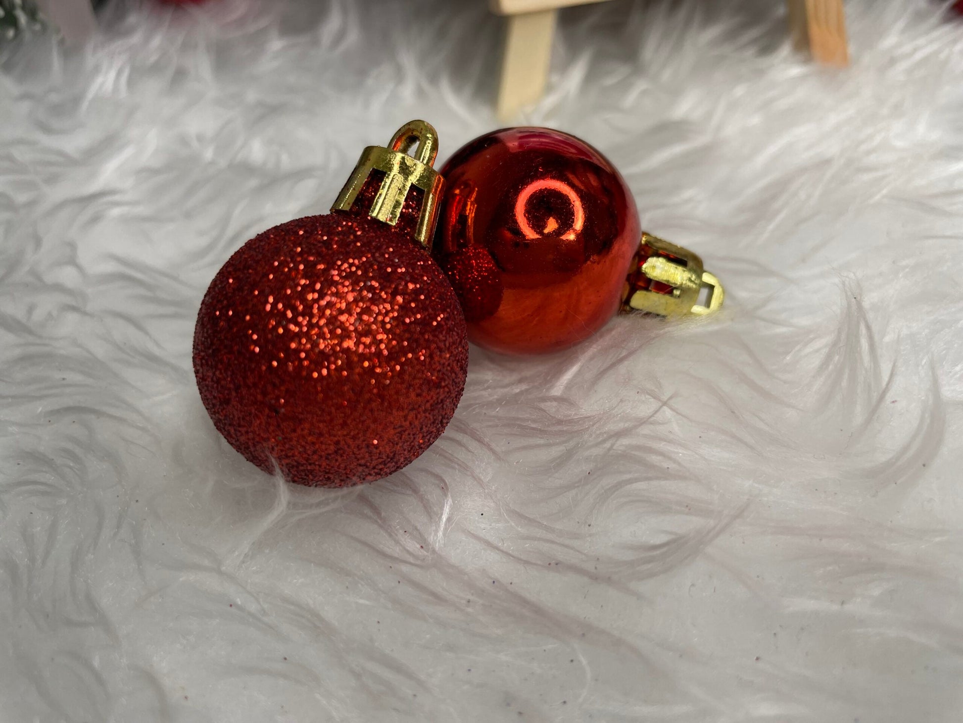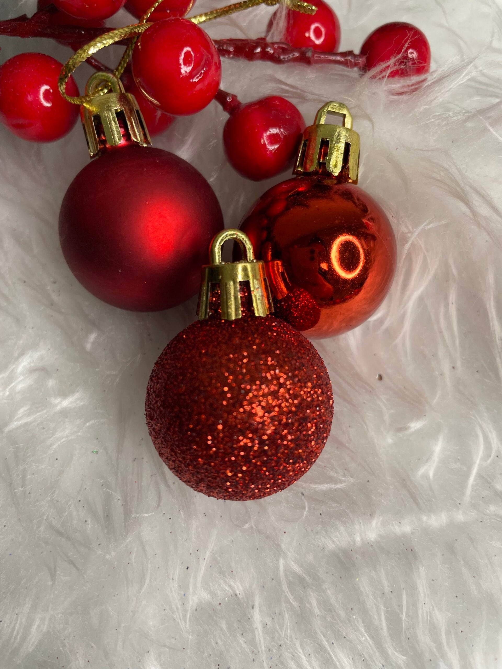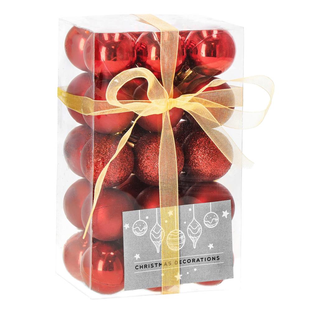 Set globuri de Craciun, 30 bucati, 3 modele, 3cm, rosu