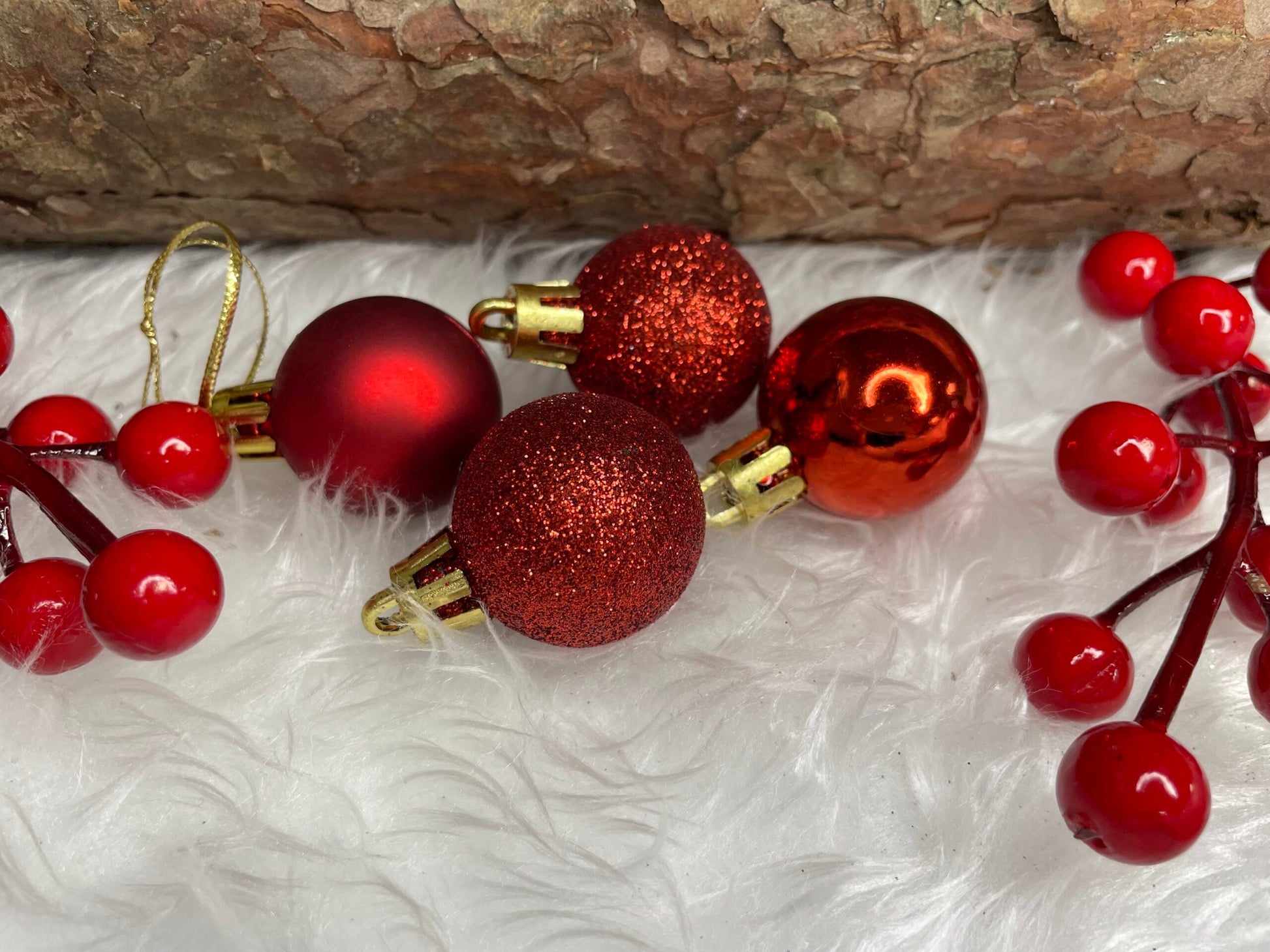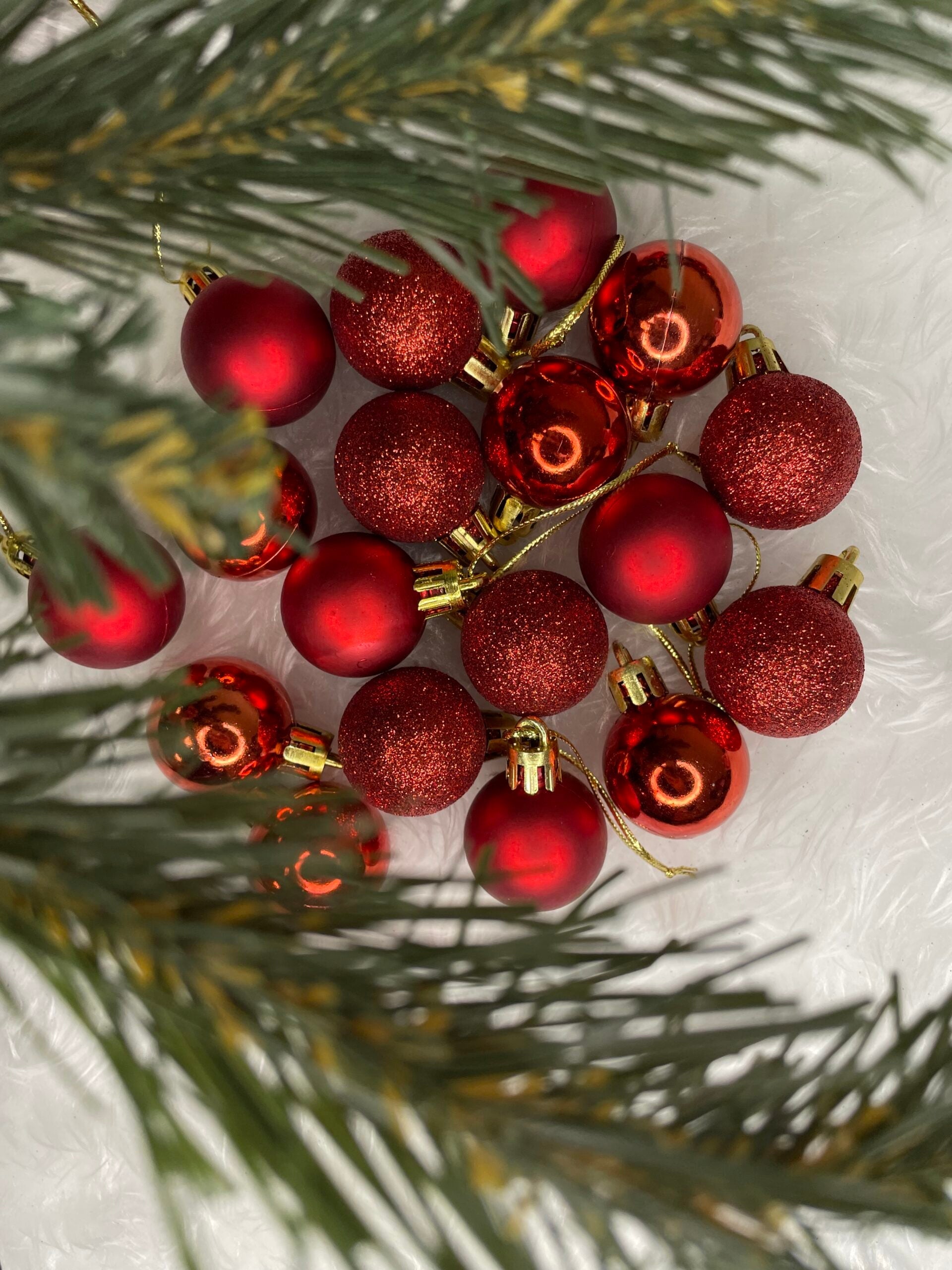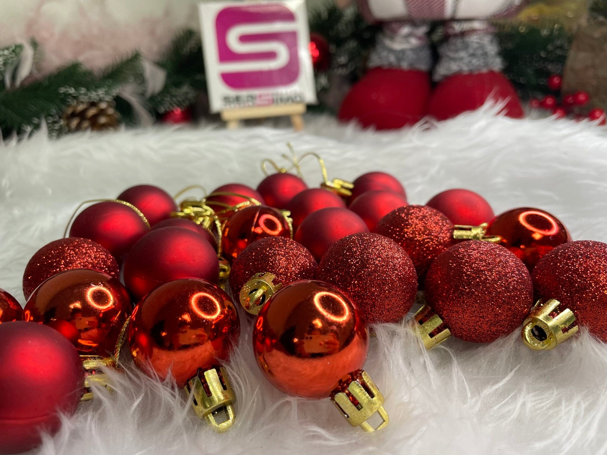 Set globuri de Craciun, 30 bucati, 3 modele, 3cm, rosu