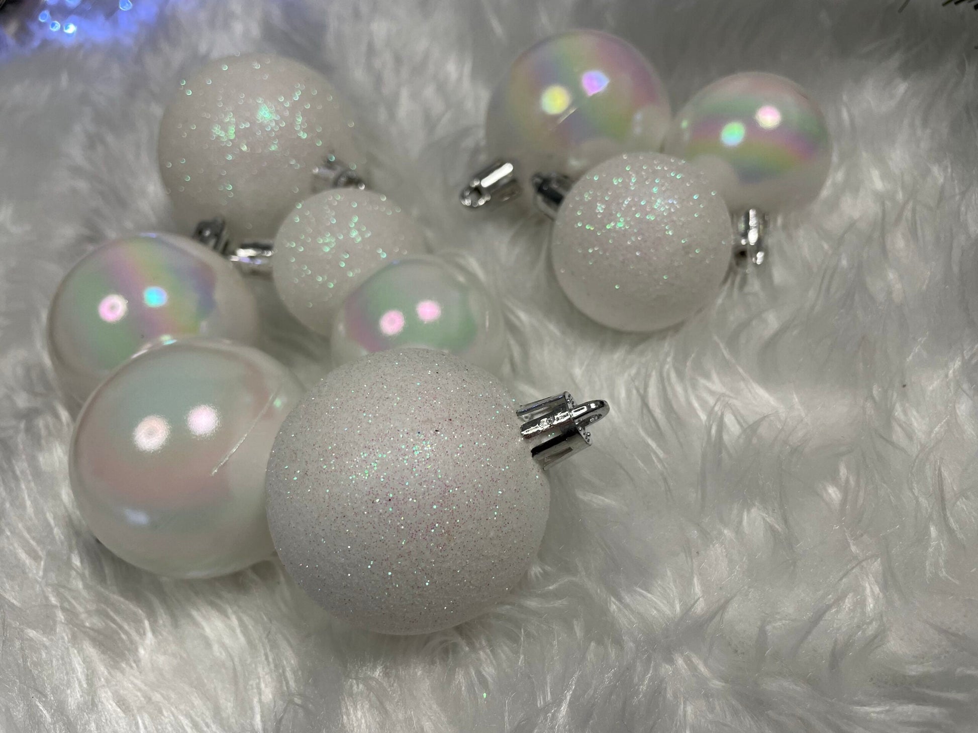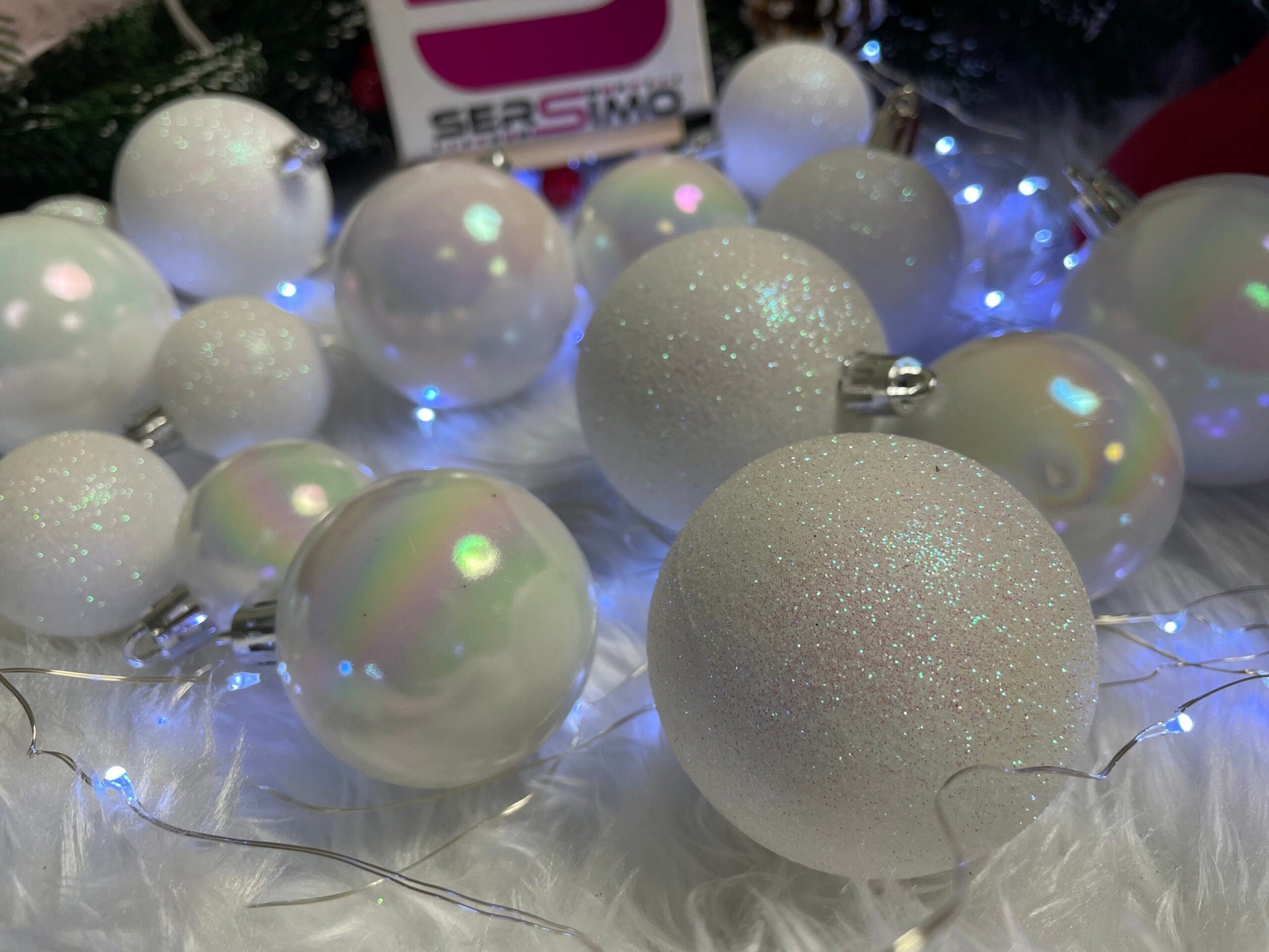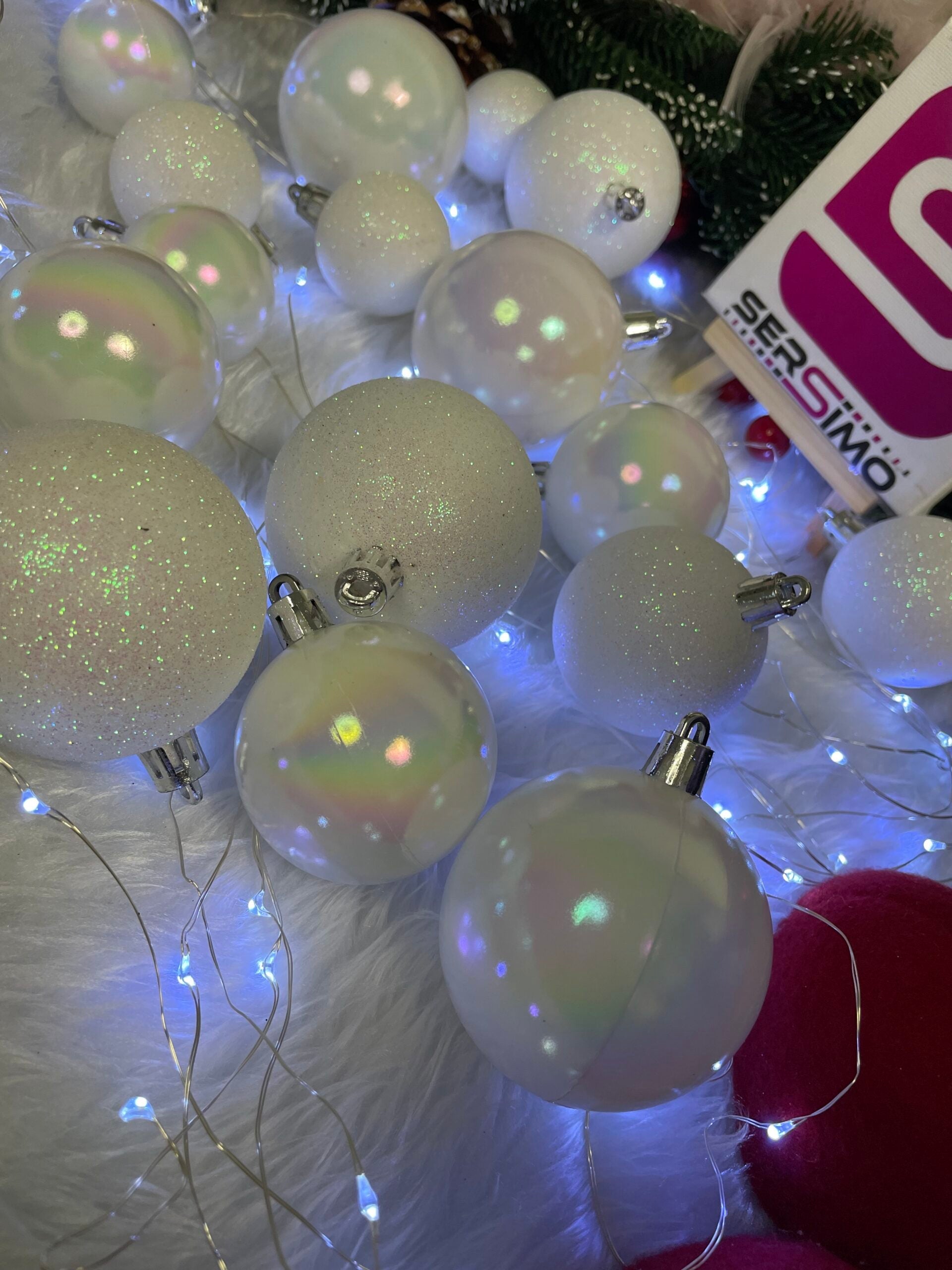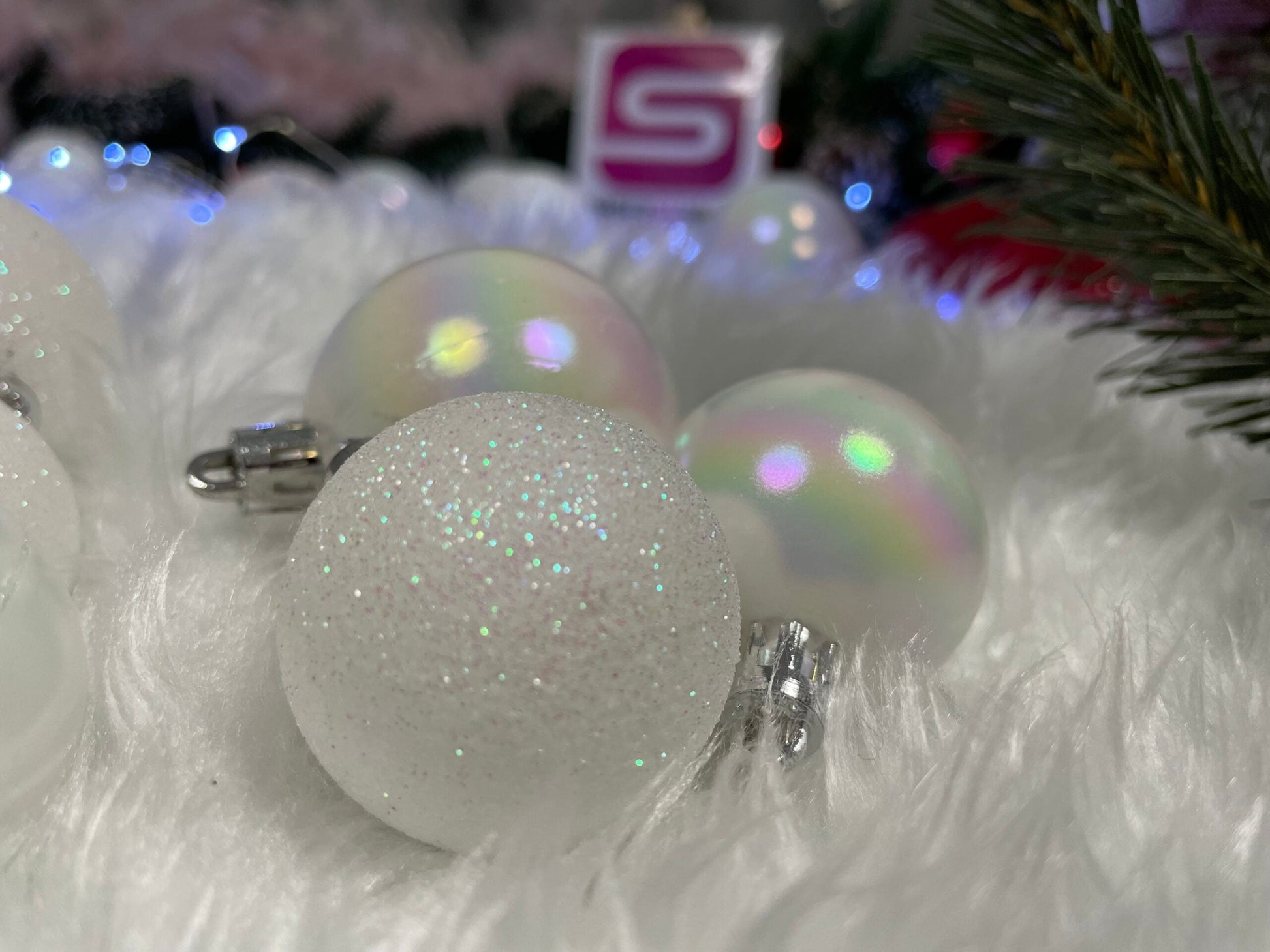 Set globuri de Craciun, 30 bucati, 3 modele, 4/5/6cm, alb