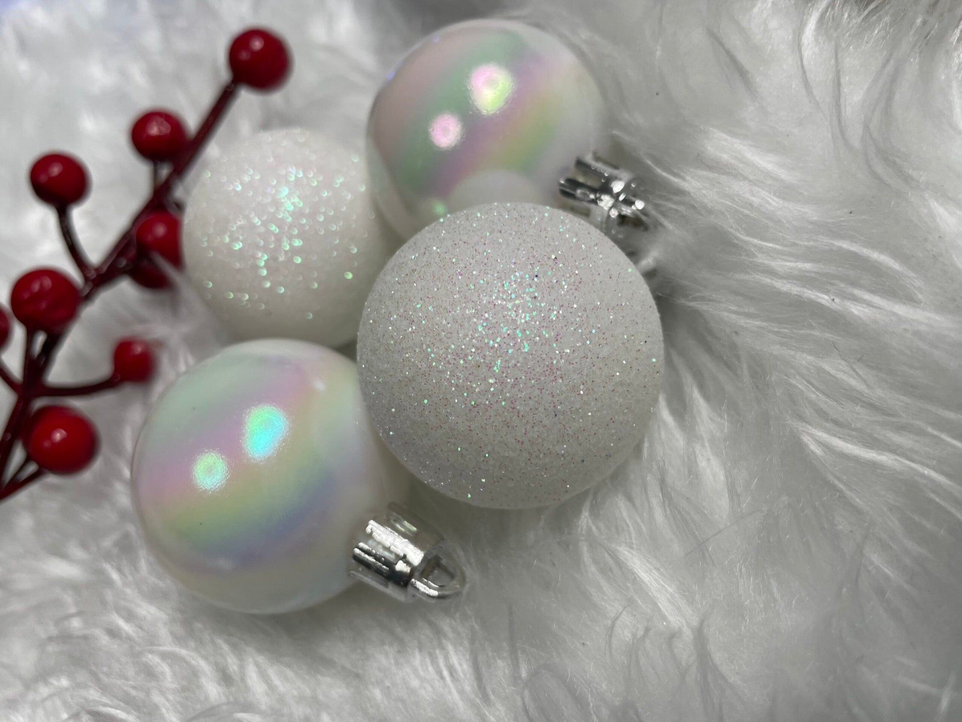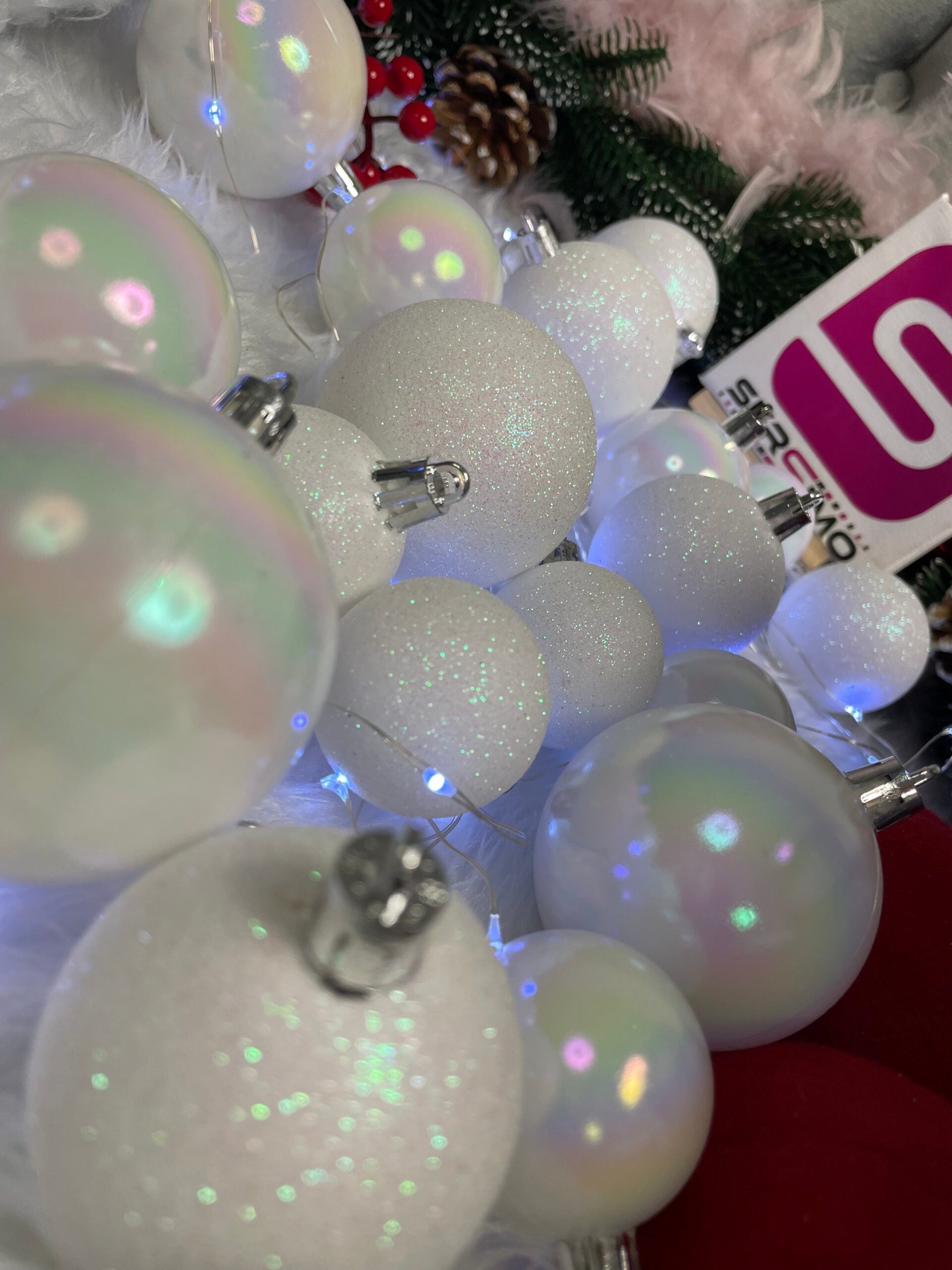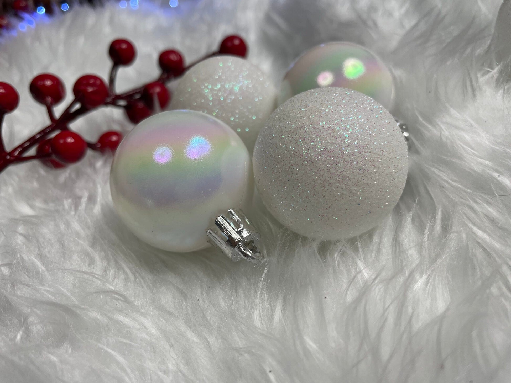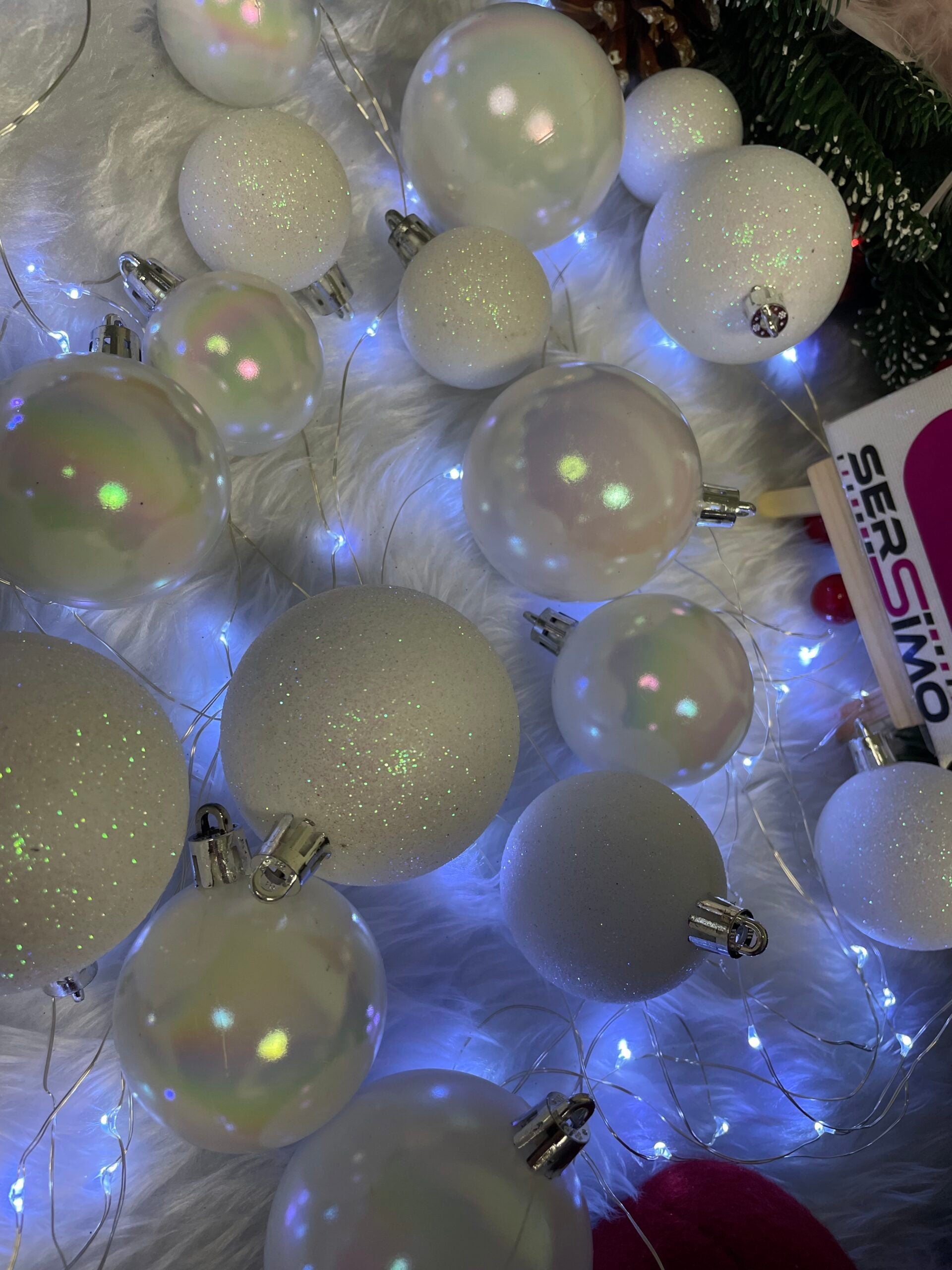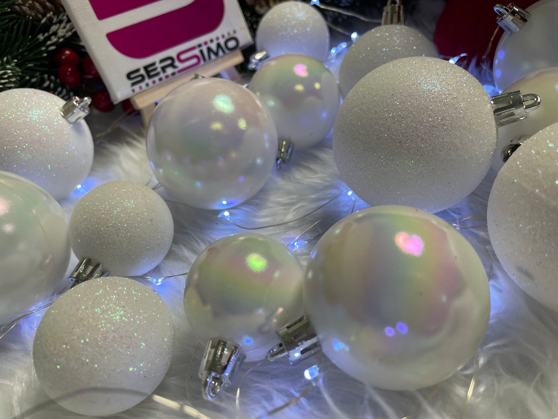 Set globuri de Craciun, 30 bucati, 3 modele, 4/5/6cm, alb