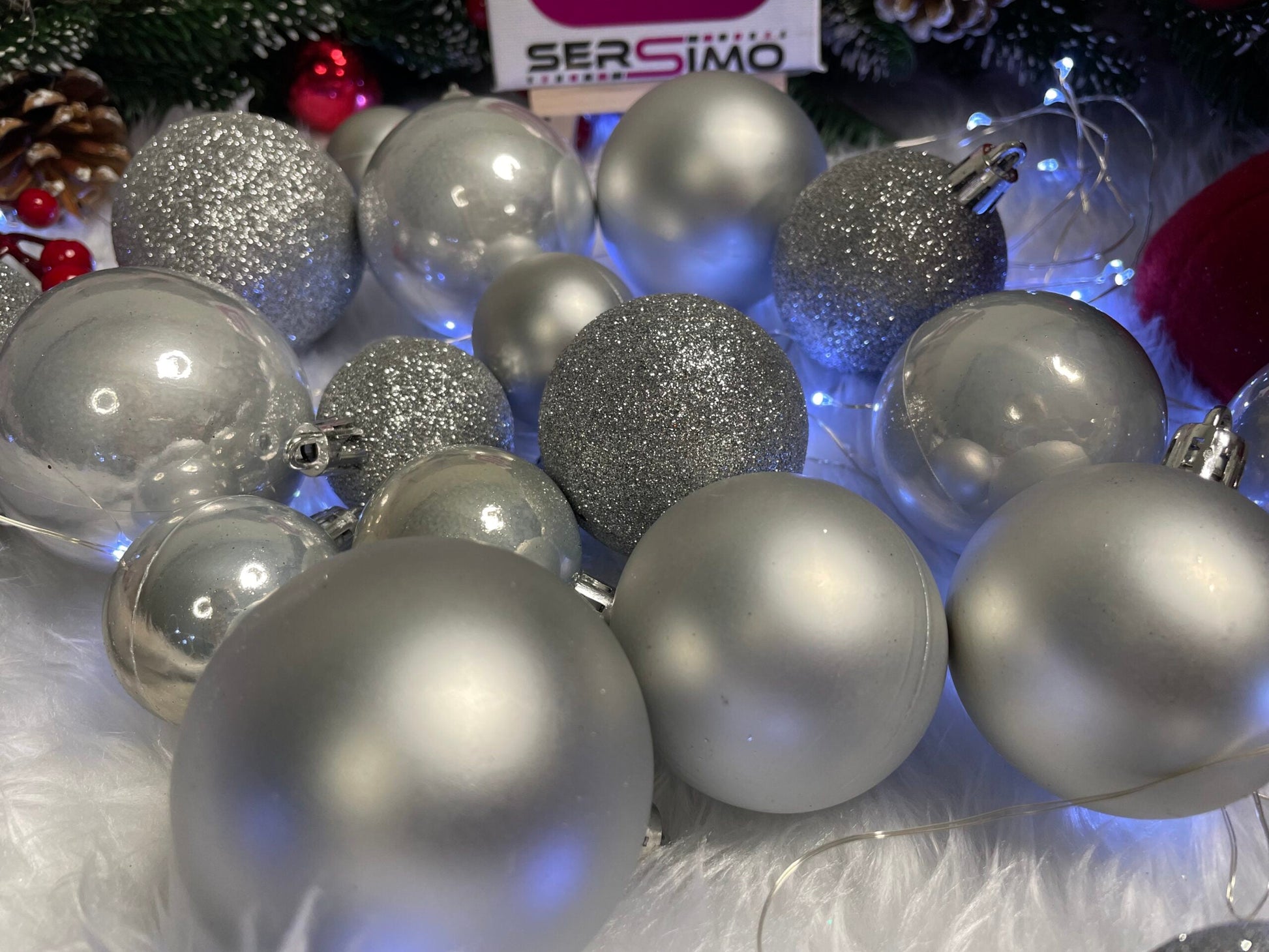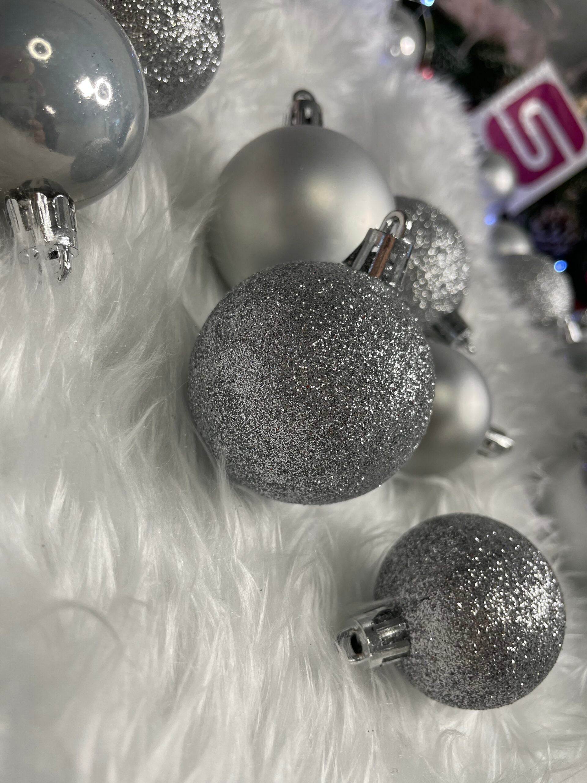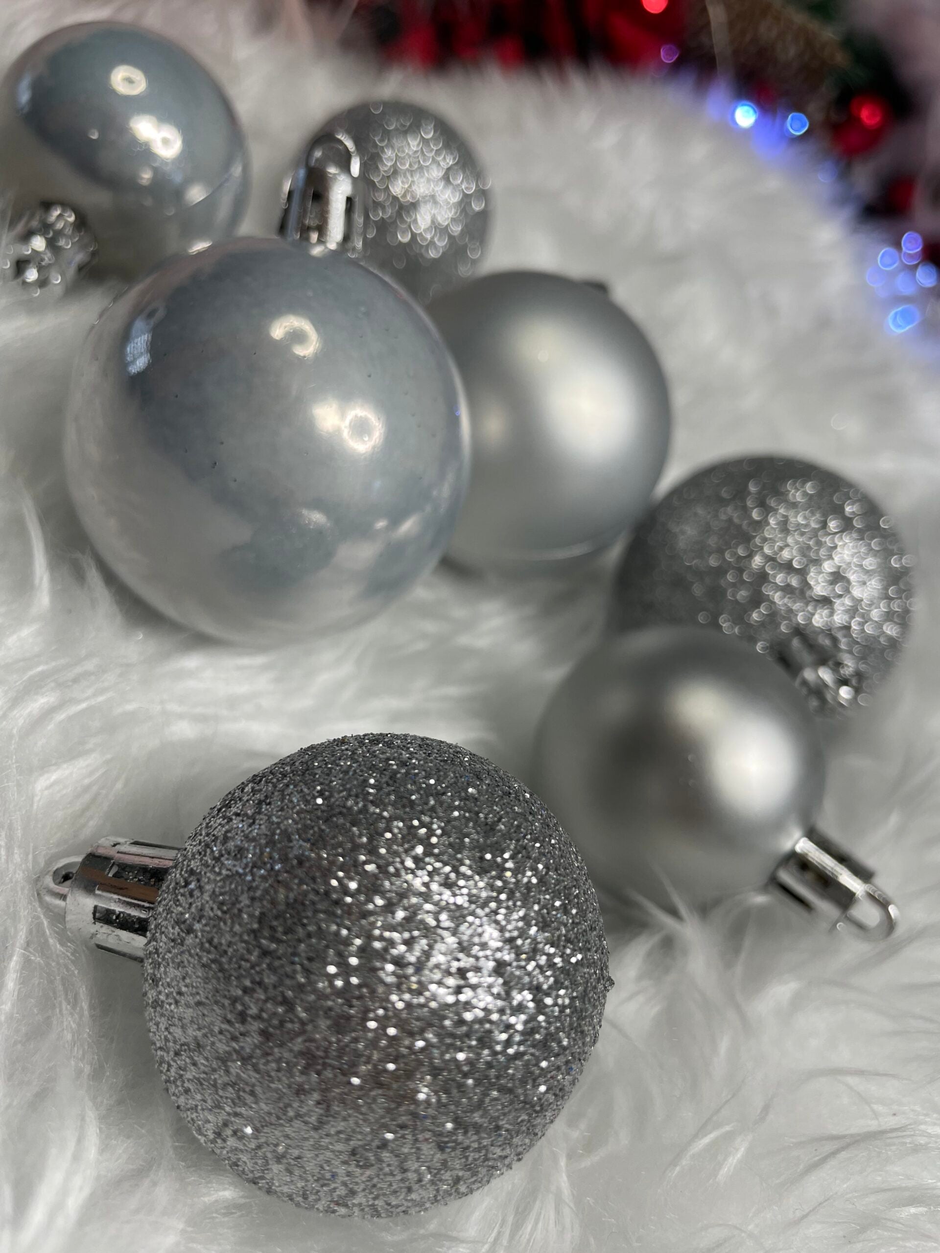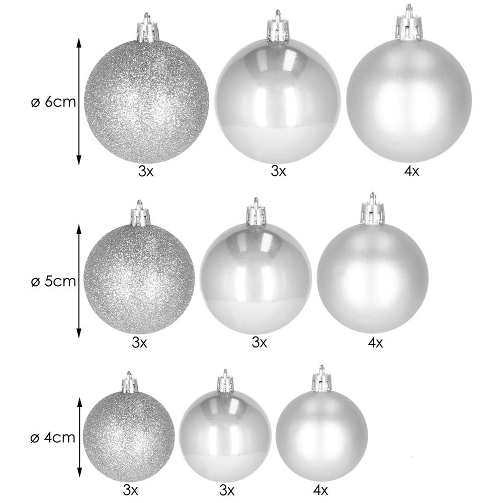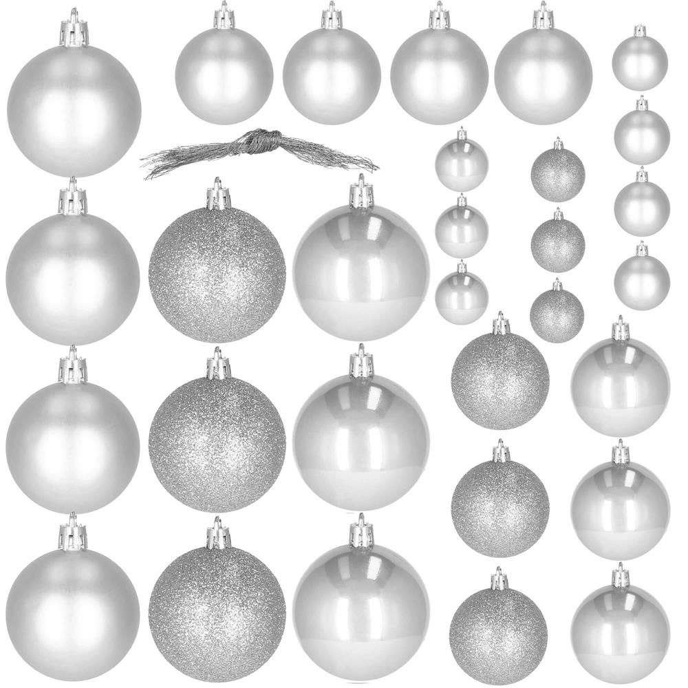 Set globuri de Craciun, 30 bucati, 3 modele, 4/5/6cm, argintiu
