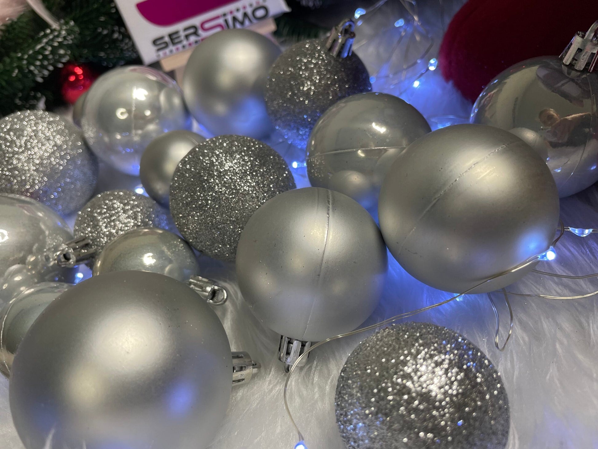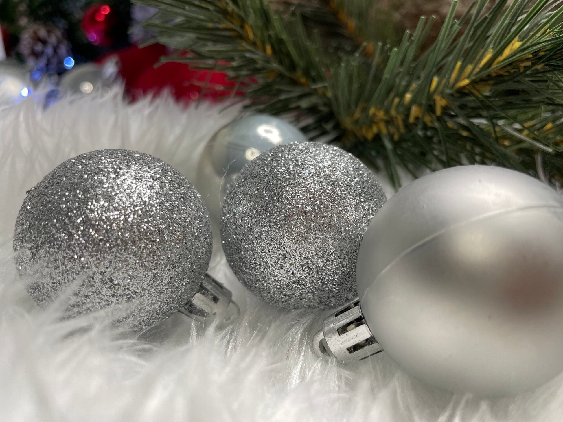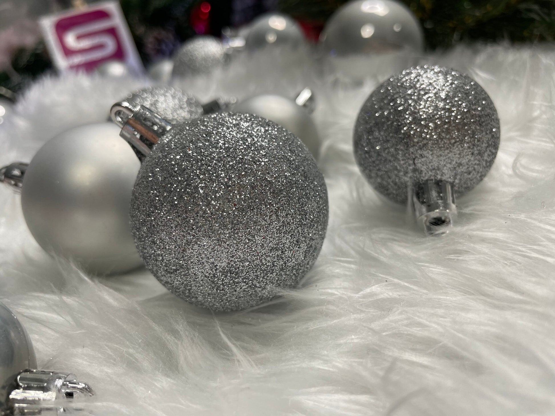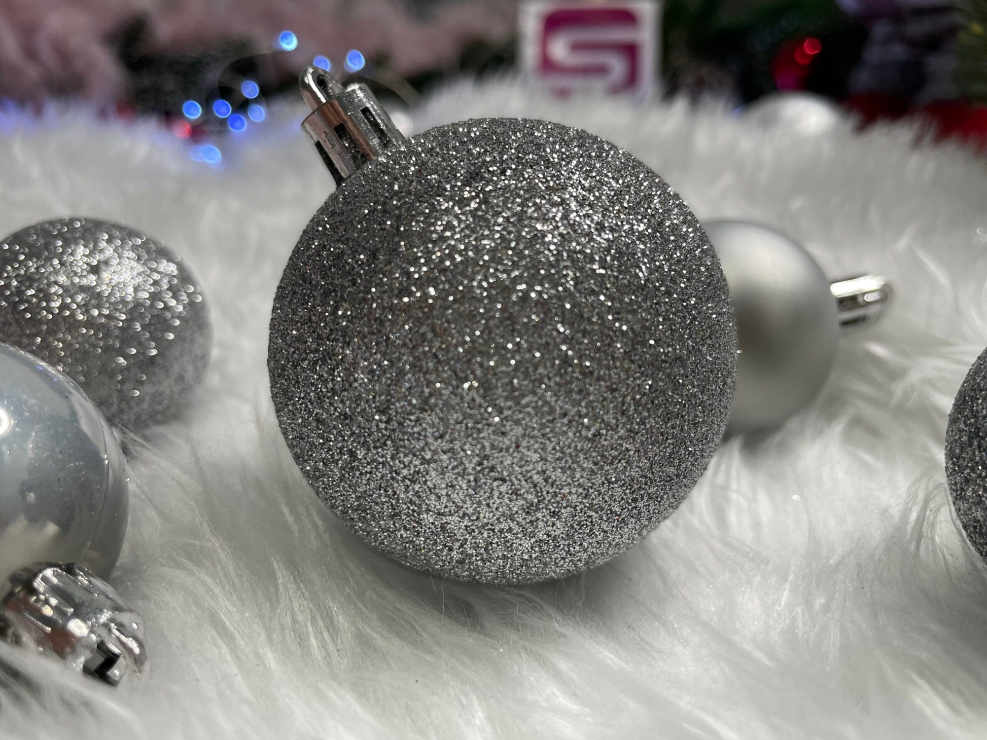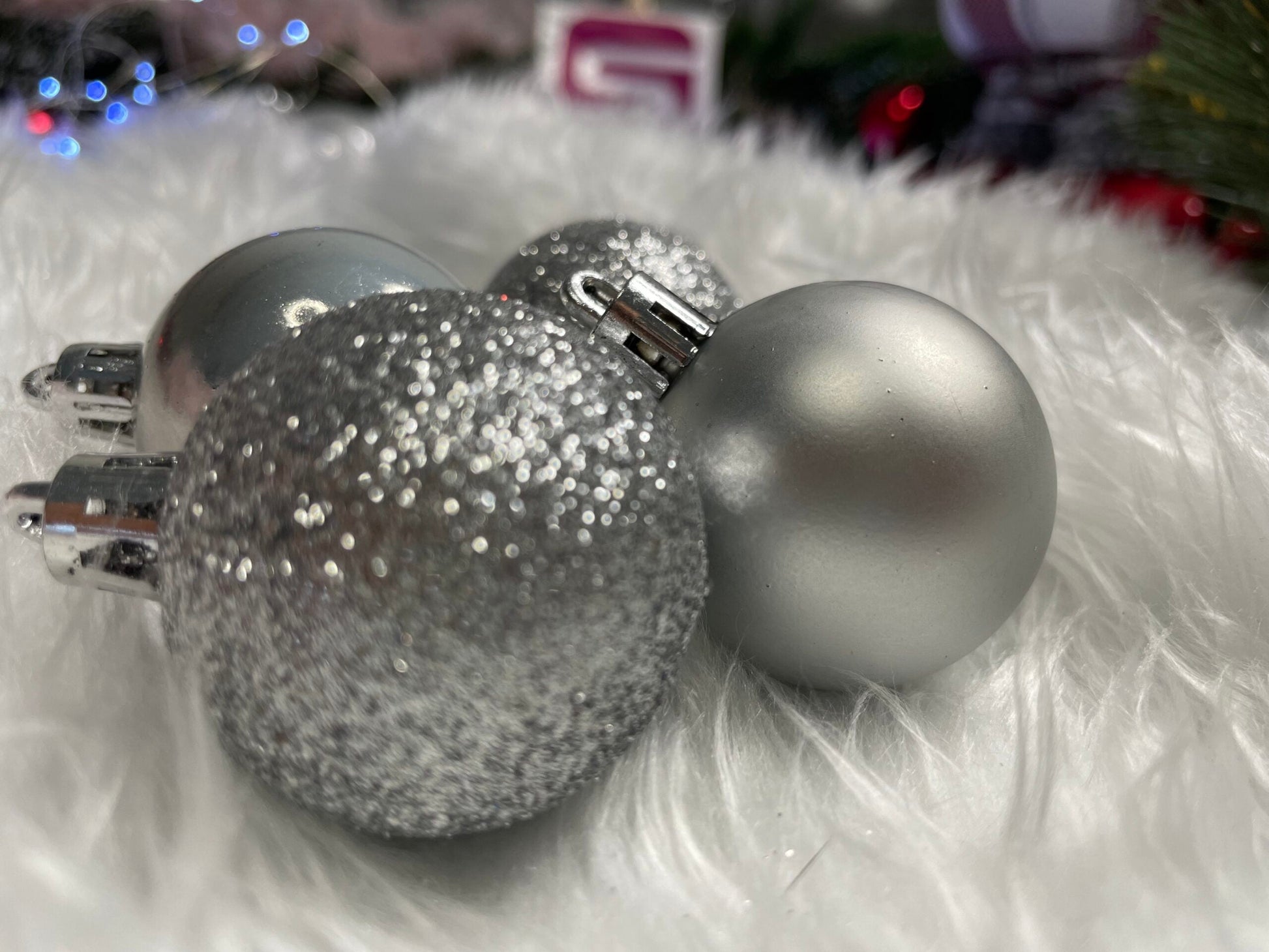 Set globuri de Craciun, 30 bucati, 3 modele, 4/5/6cm, argintiu