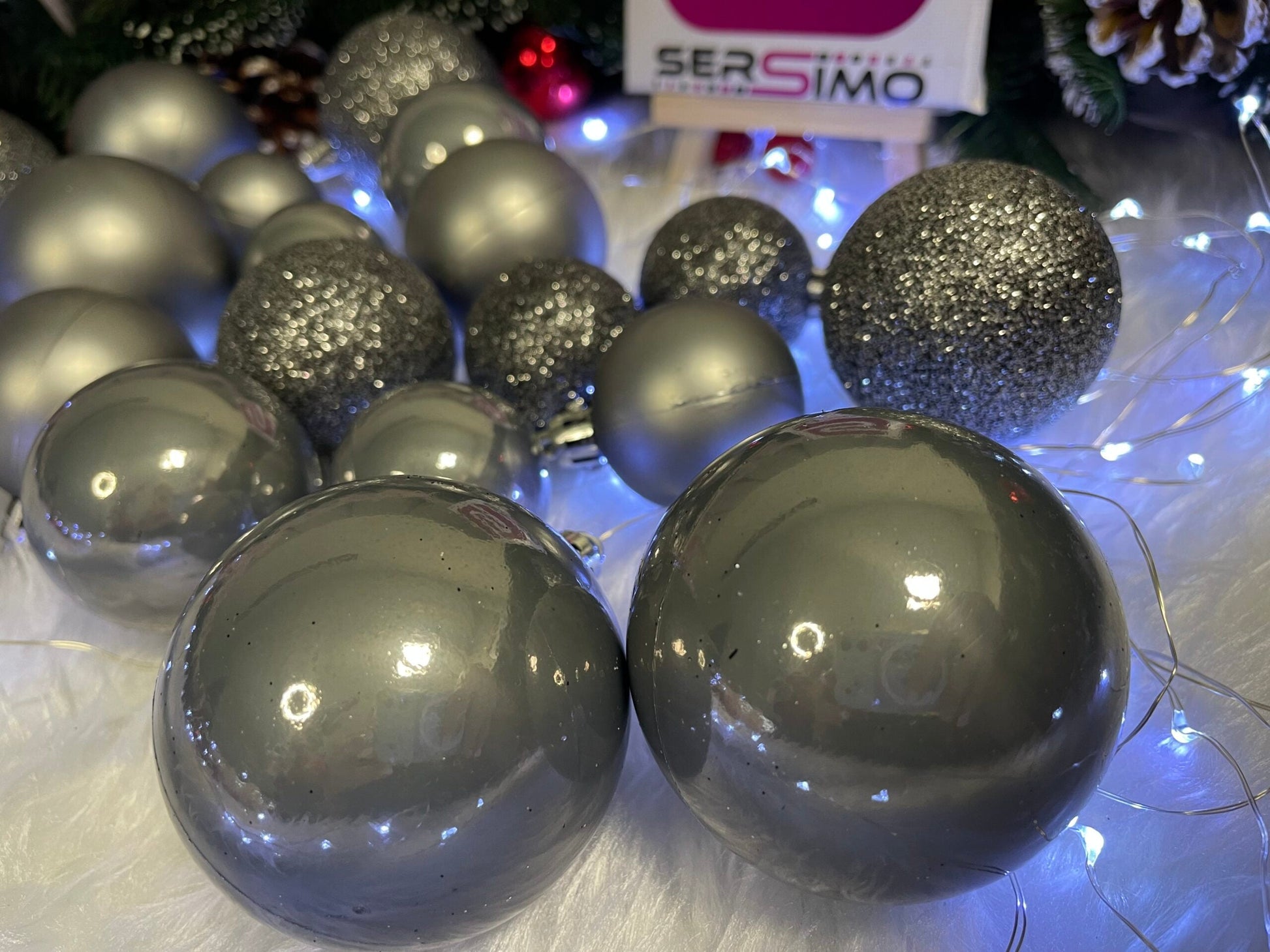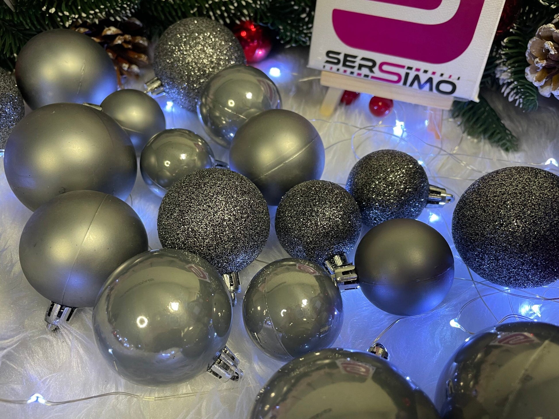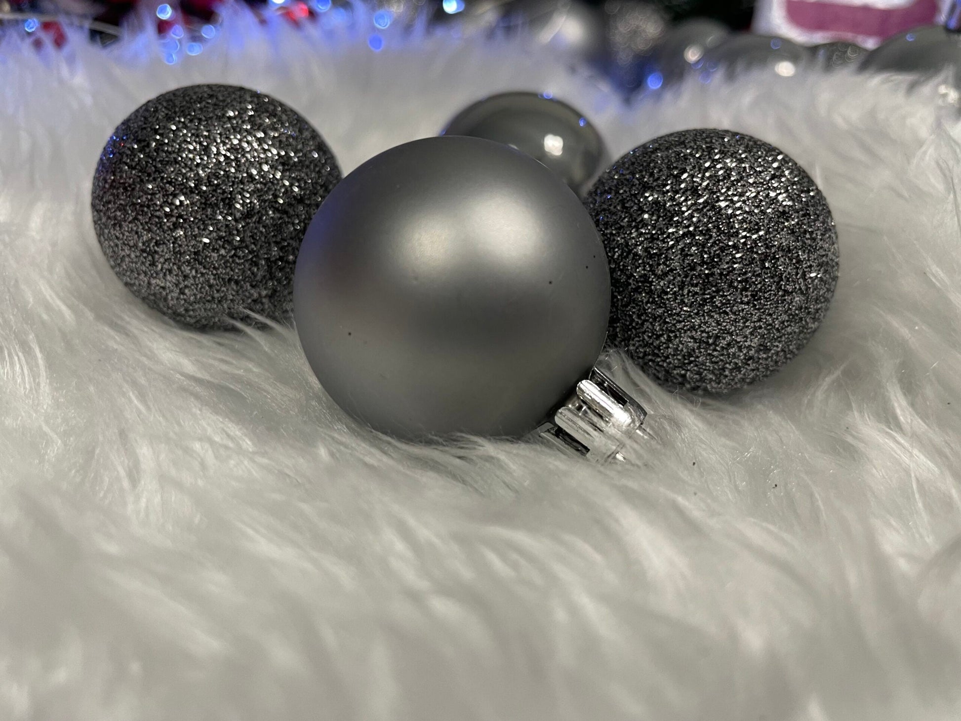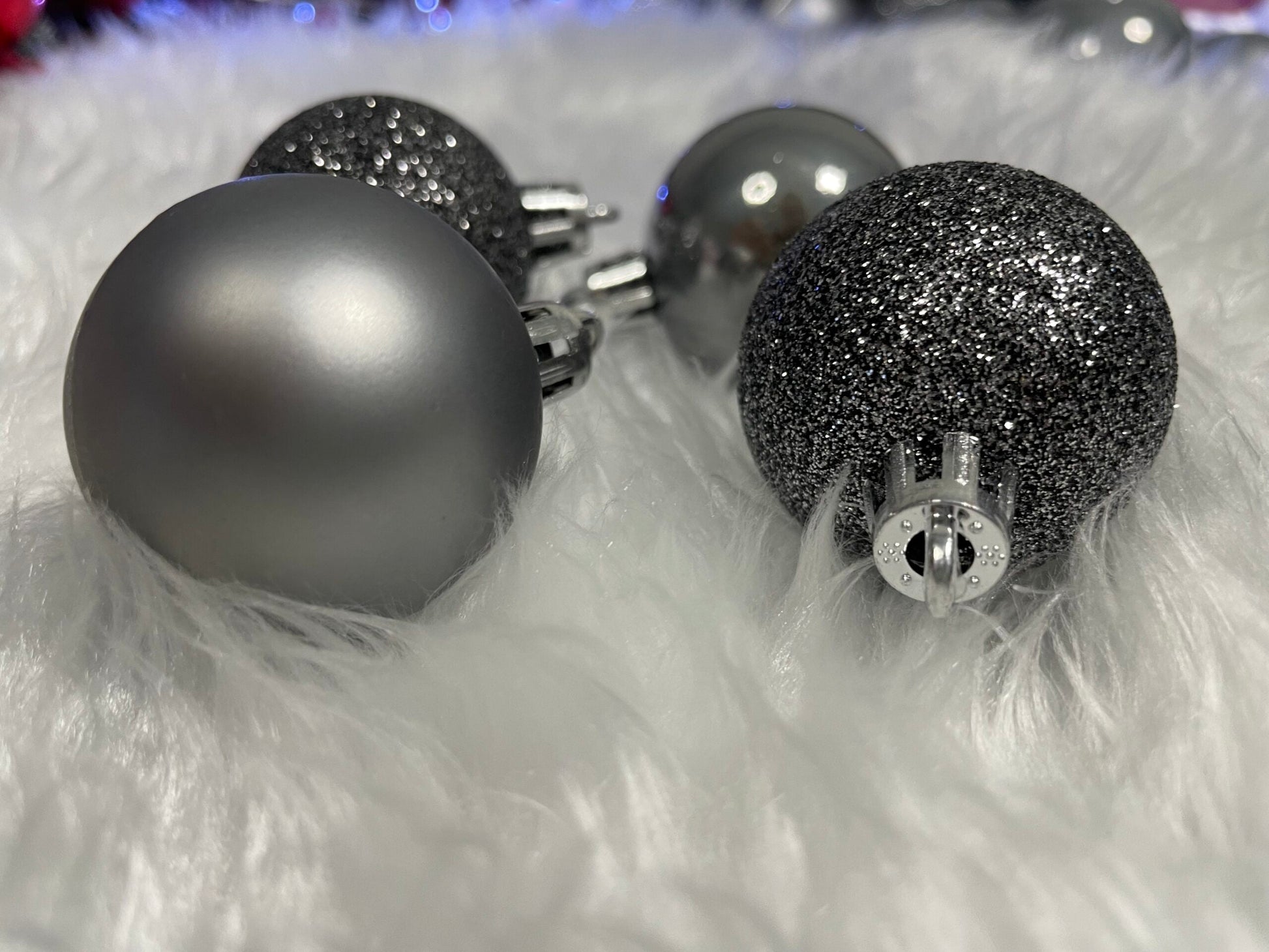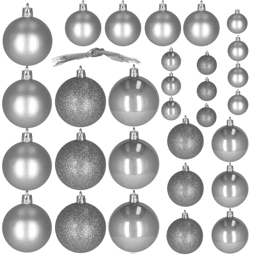 Set globuri de Craciun, 30 bucati, 3 modele, 4/5/6cm, gri argintiu